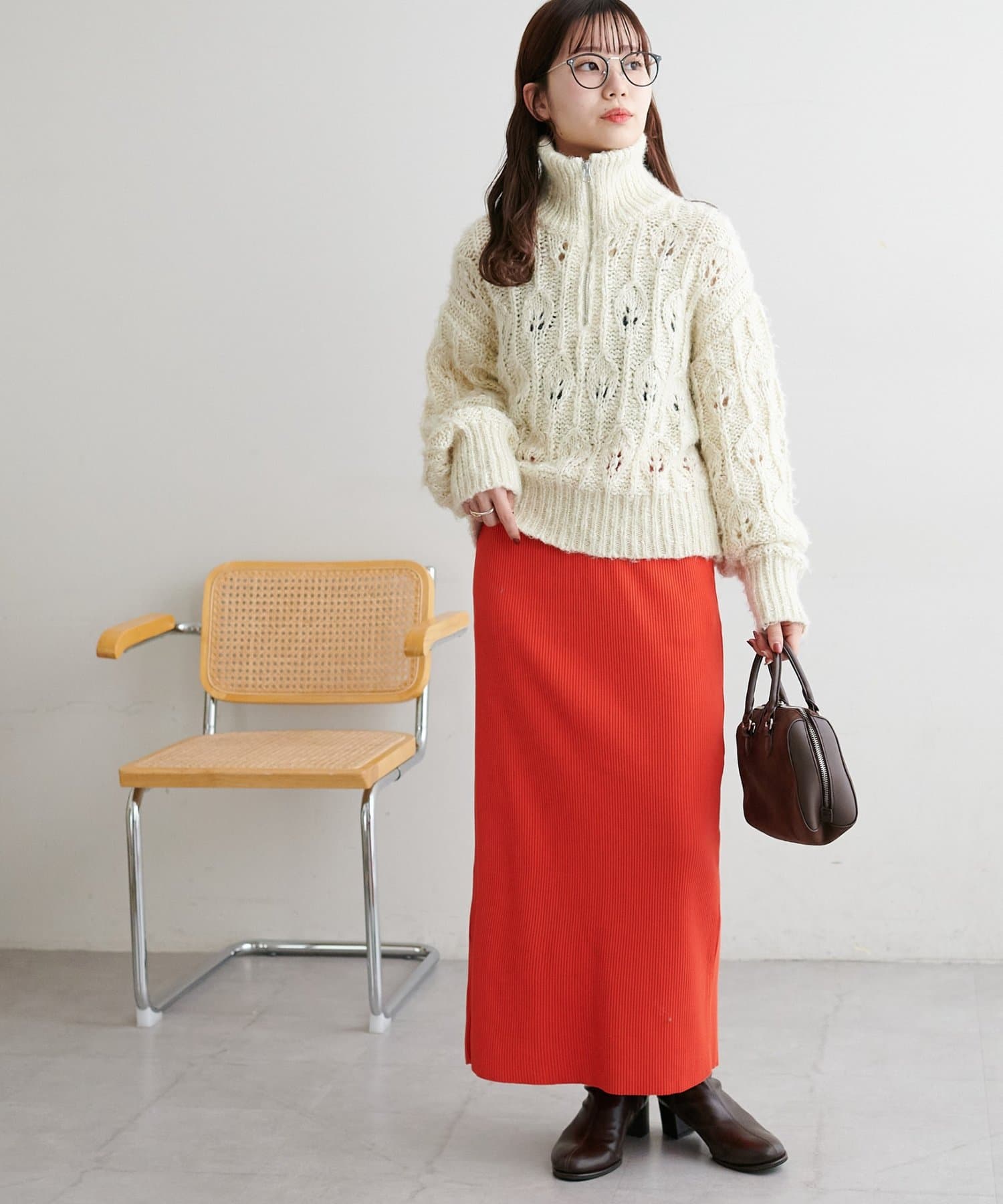 【年中頼れる/3~5サイズ展開/リピーター多数◎】リブカットナロースカート《WEB限定》