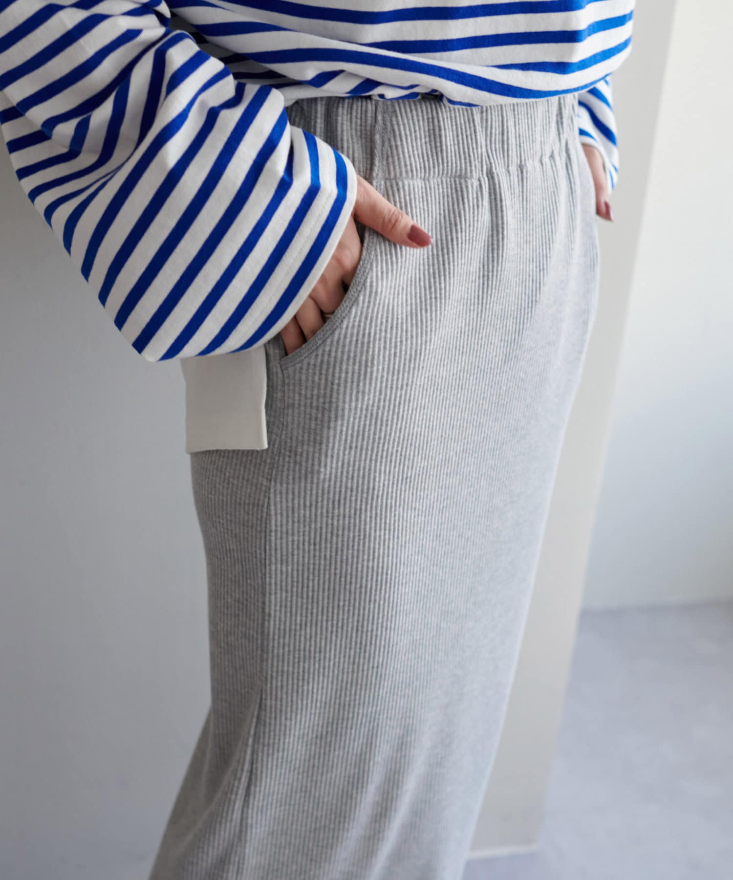 ・年間を通して使える柔らかなリブニット生地で、快適な穿き心地