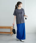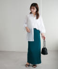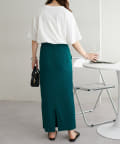 低身長さんはフルレングスで、高身長さんはミモレ丈で大人っぽく着用できるロング丈には、バックスリットをプラスすることで程よい抜け感と足捌きが良く仕上がりました。