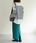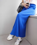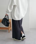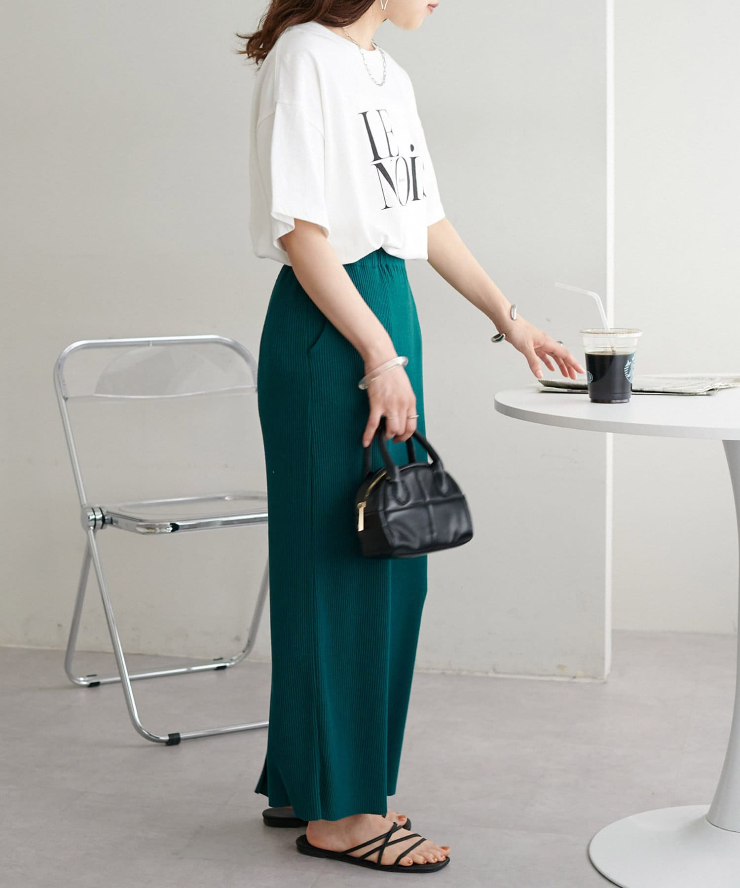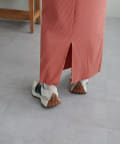 155cmスタッフ(Mサイズ着用):リブニット素材で柔らかく、本当に伸縮性が抜群です!◎ウエストの総ゴム仕様は着脱しやすく、足さばきもしやすいバックスリットも入っています◎