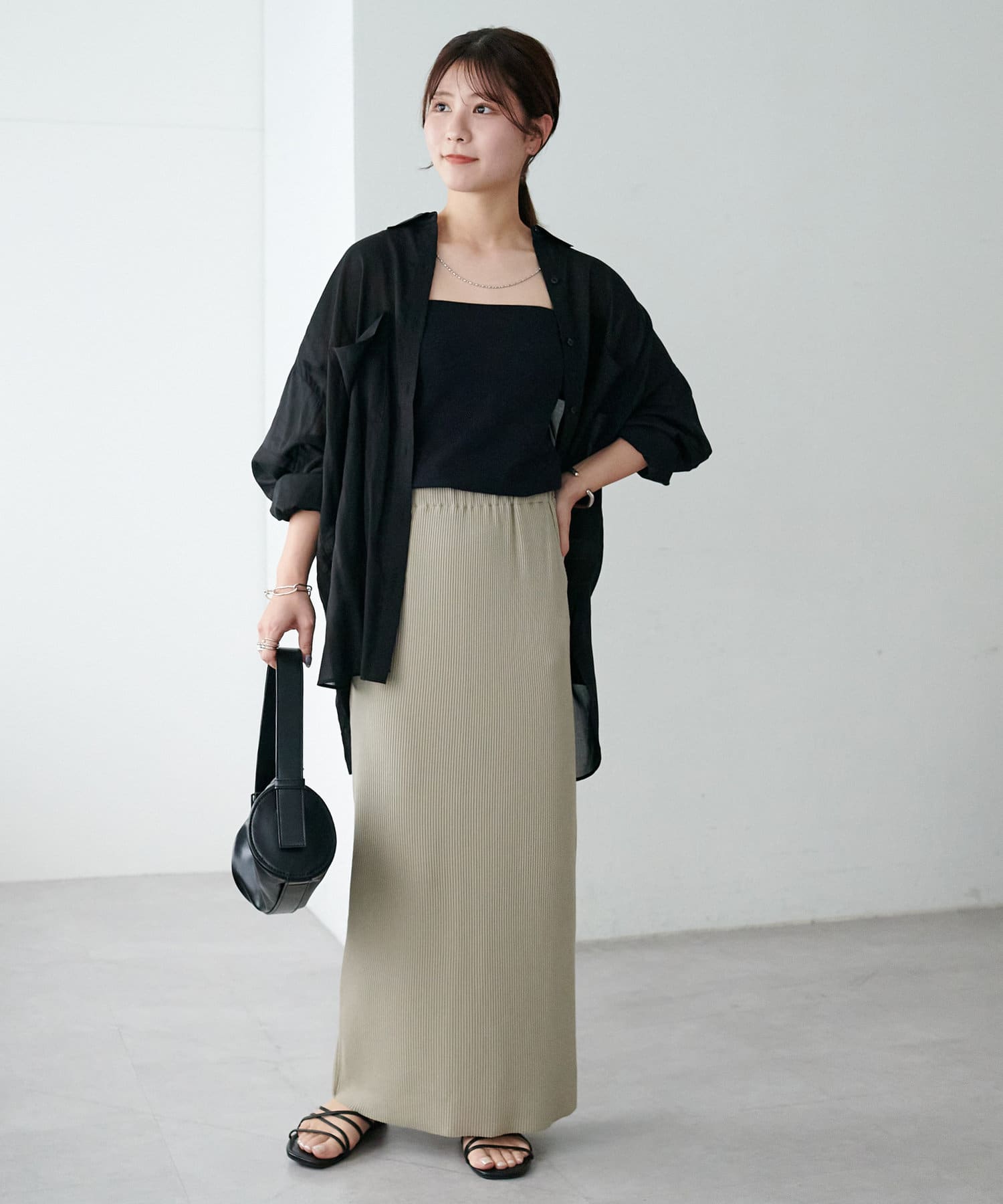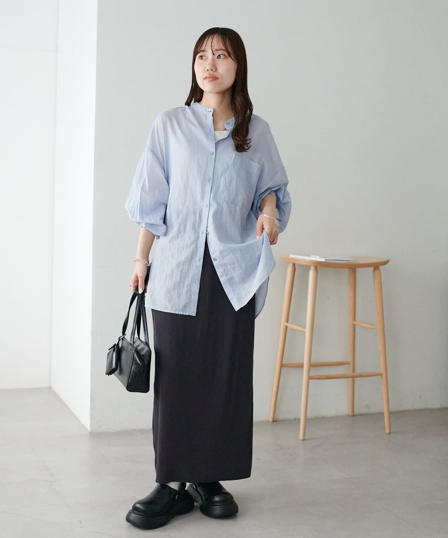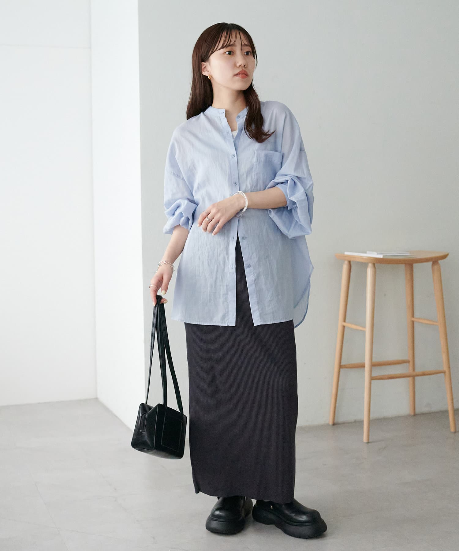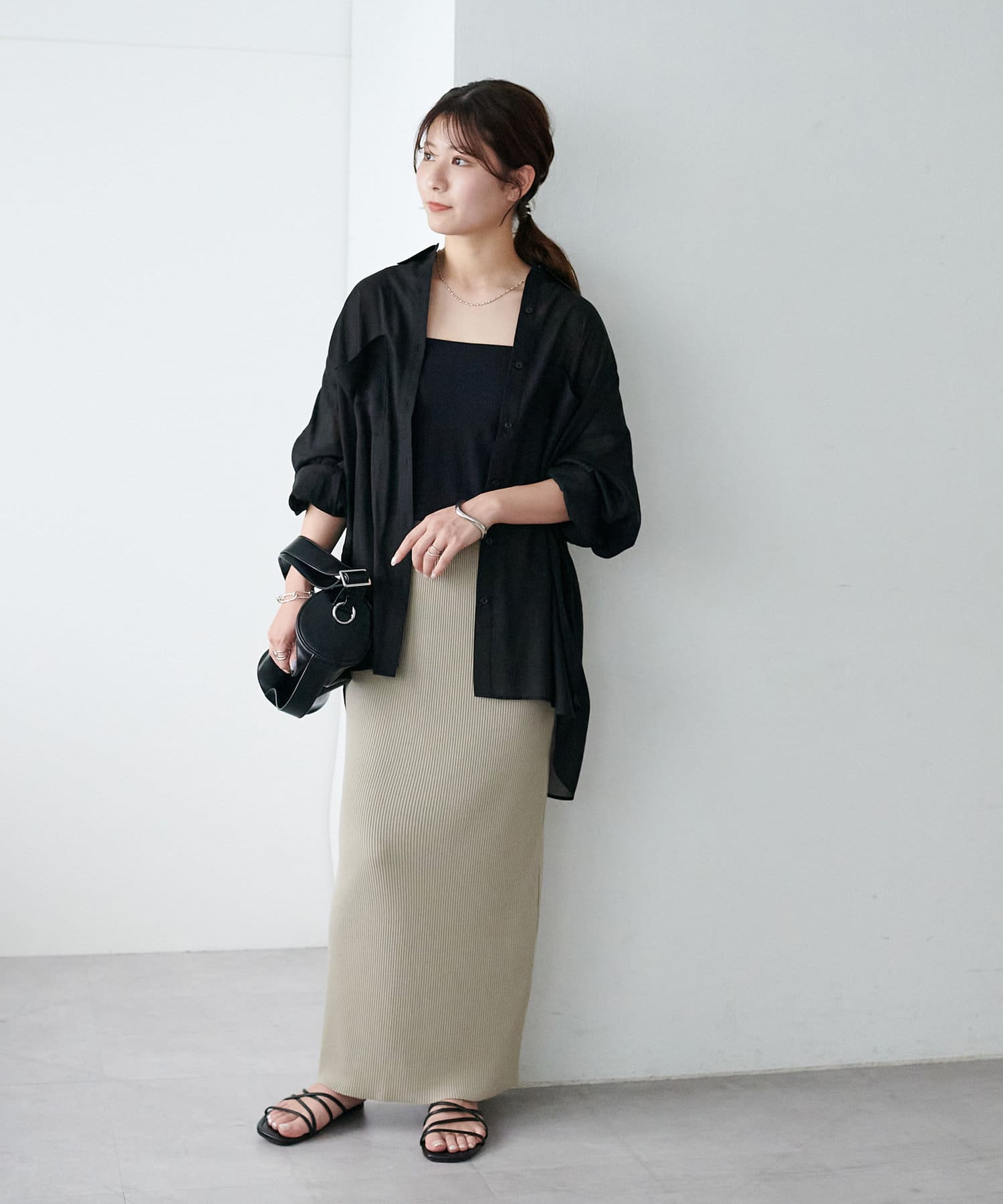 季節の変わり目にはシャツやジャケット、ベストなどのレイヤードスタイルに、春から秋口にかけてはシアートップスやシャツブラウスを合わせて抜け感プラスしたりと、シーズンレスで幅広い着回しが楽しめます。