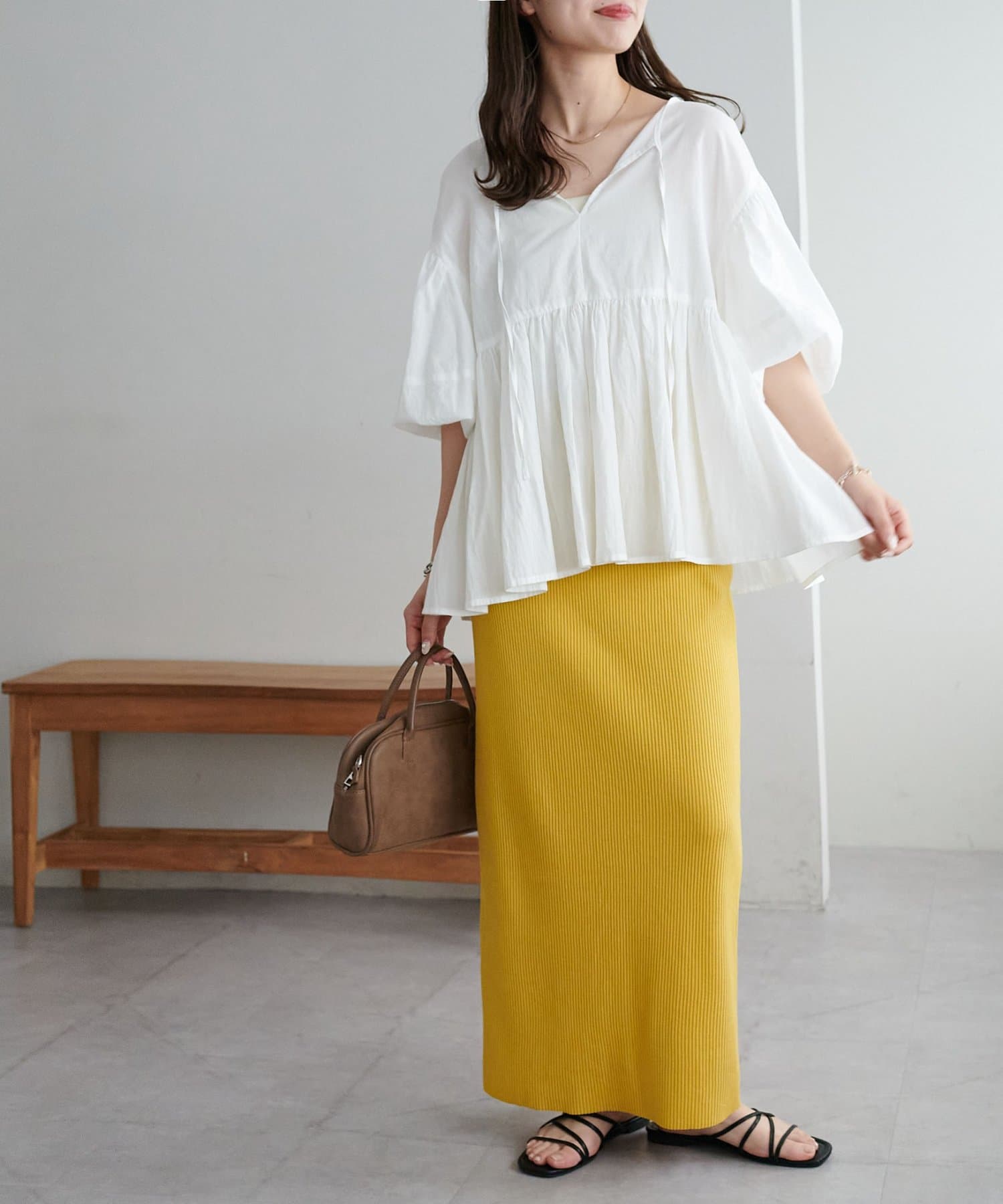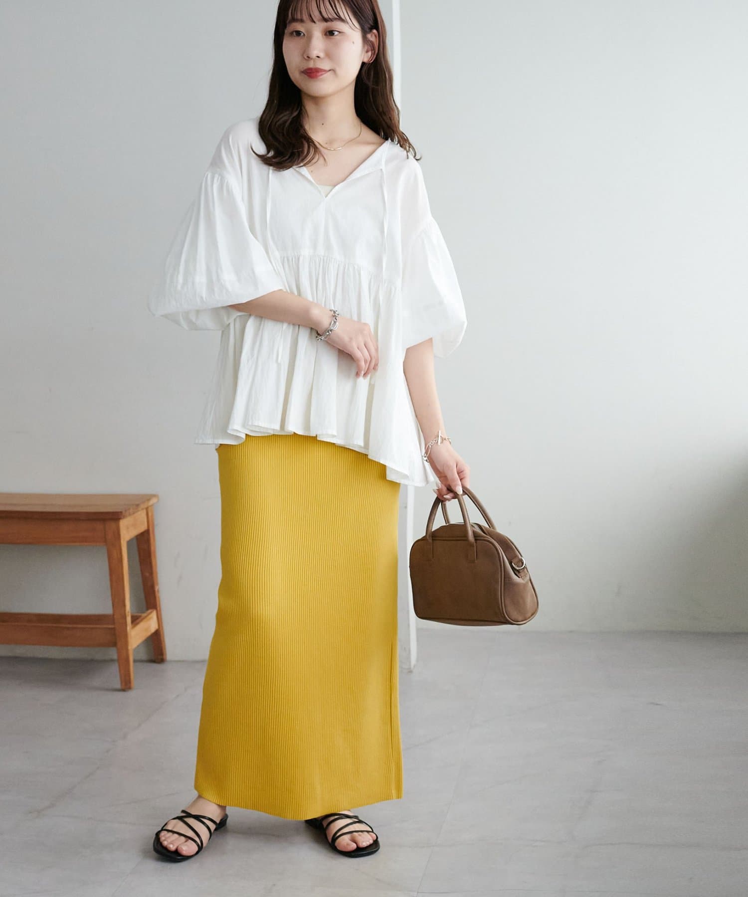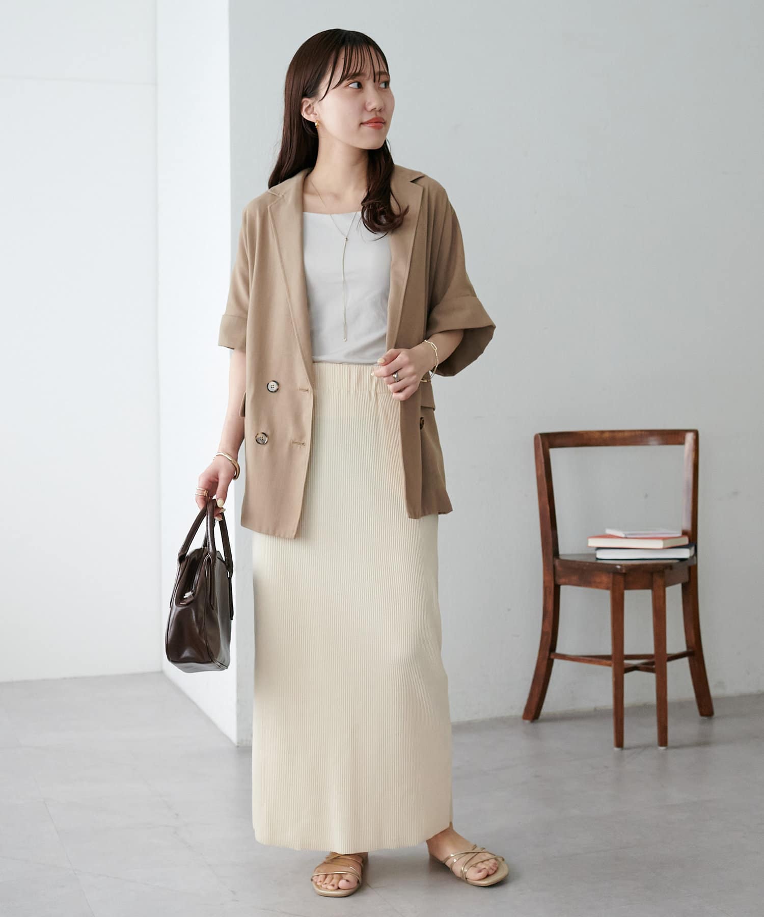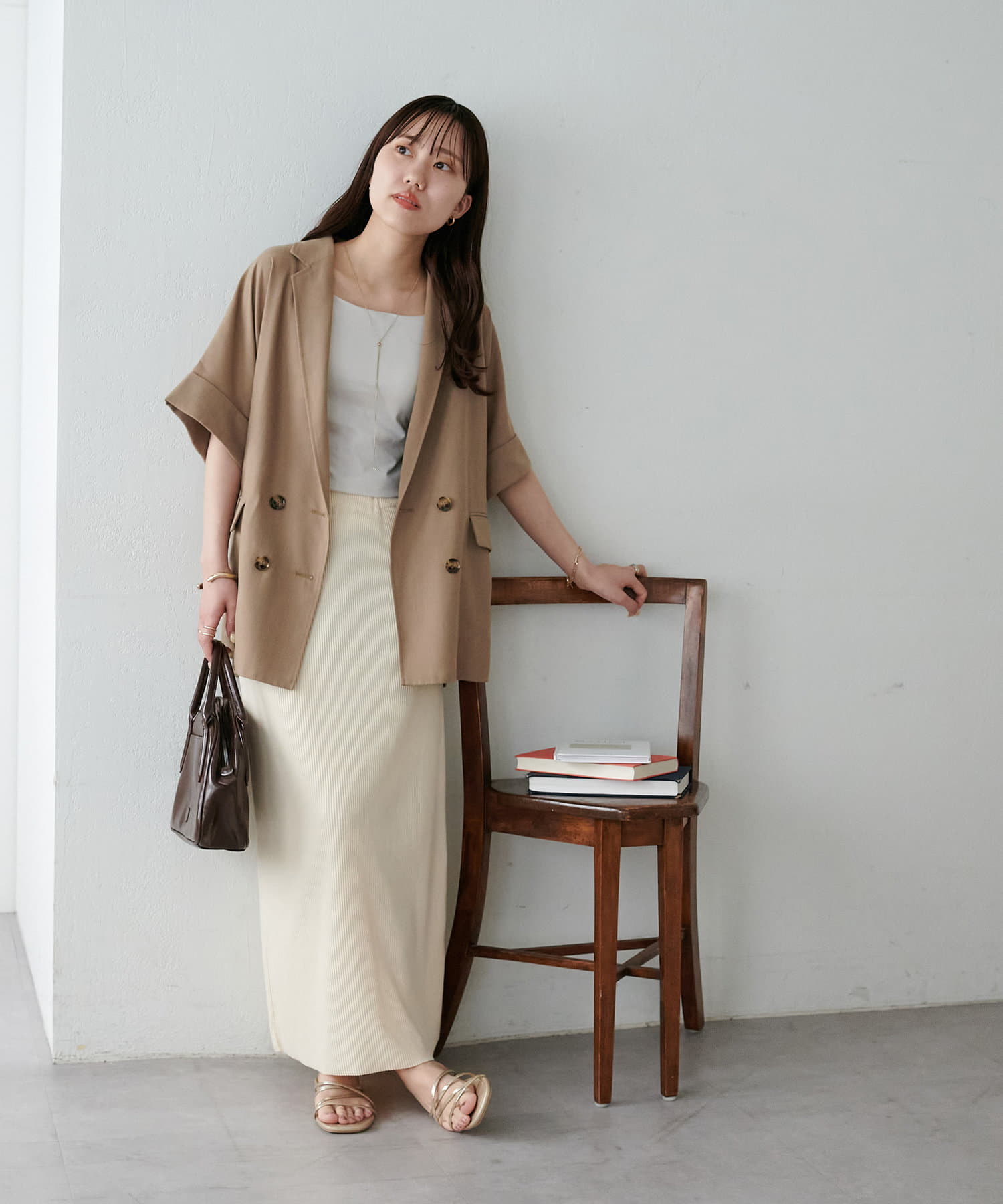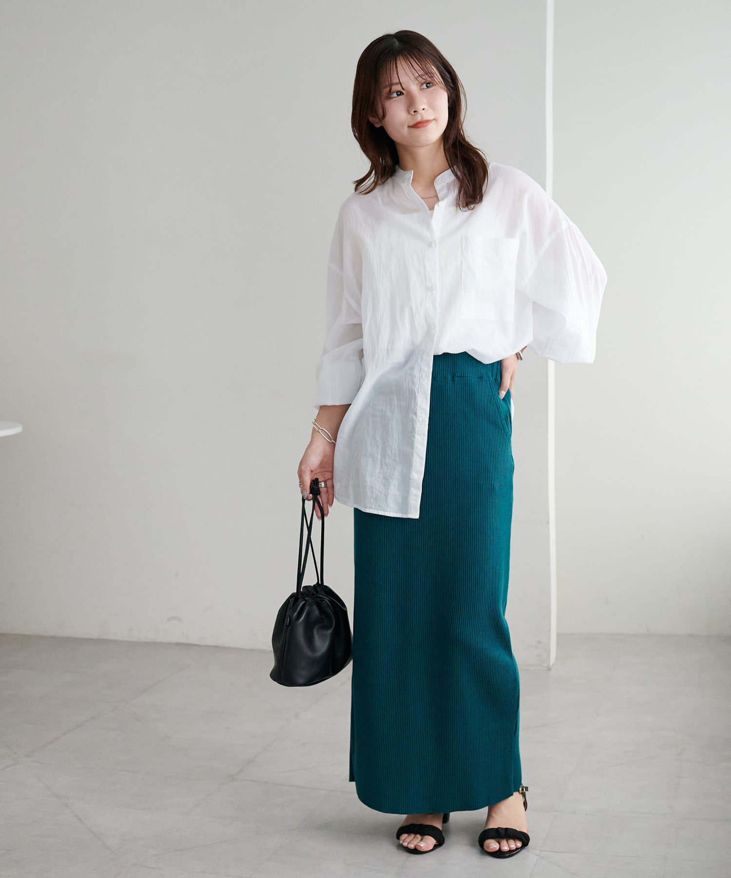 季節の変わり目にはシャツやジャケット、ベストなどのレイヤードスタイルに、春から秋口にかけてはシアートップスやシャツブラウスを合わせて抜け感プラスしたりと、シーズンレスで幅広い着回しが楽しめます。