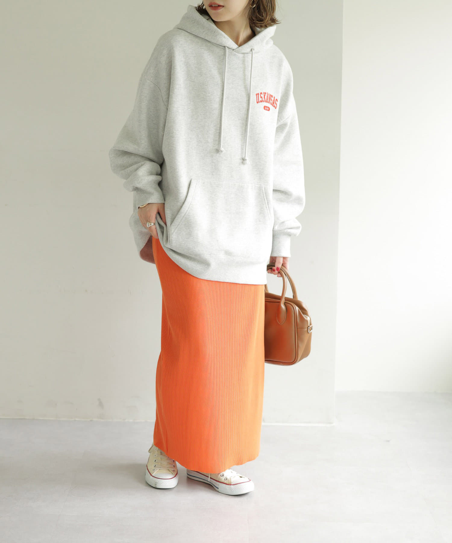 定番のタックインスタイル、ショート丈トップス合わせのみならず、トレンドのビッグシルエットトップス合わせてよりカジュアルダウンさせるのも旬の着こなしに◎