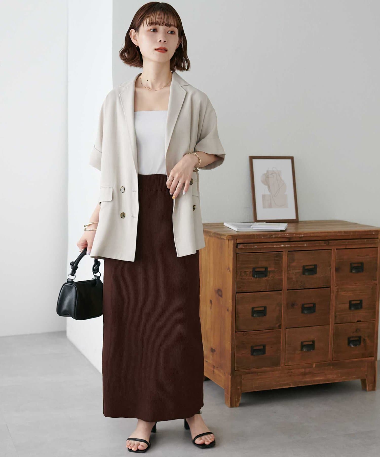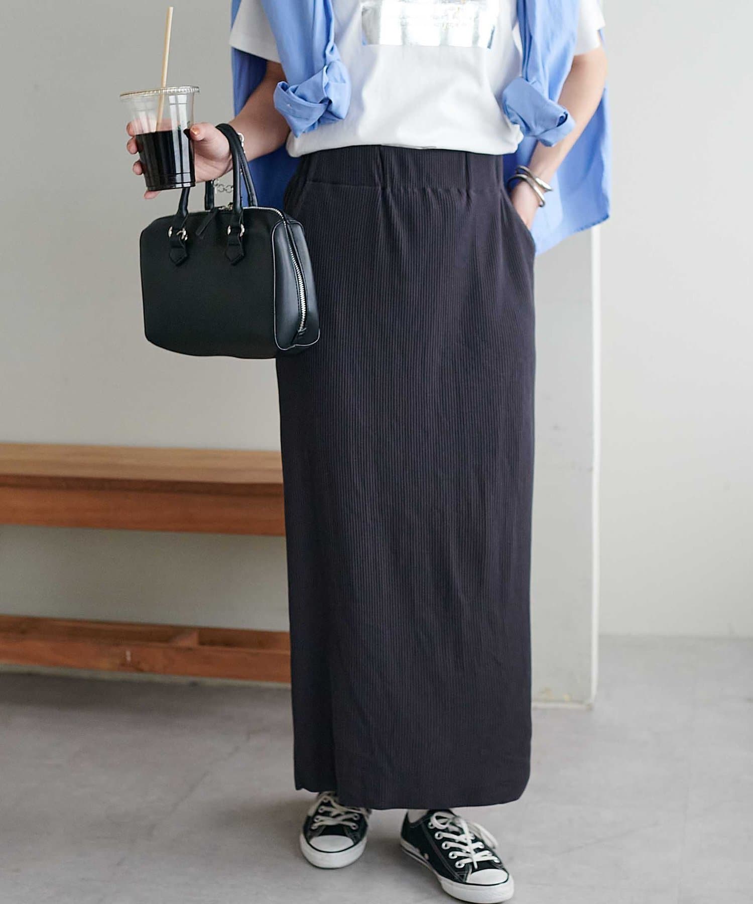 【3~5サイズ展開/シーズンレス/リピーター多数◎】リブカットナロースカート《WEB限定》
