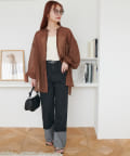 同素材のジャケットと合わせたセットアップコーデもおすすめ!