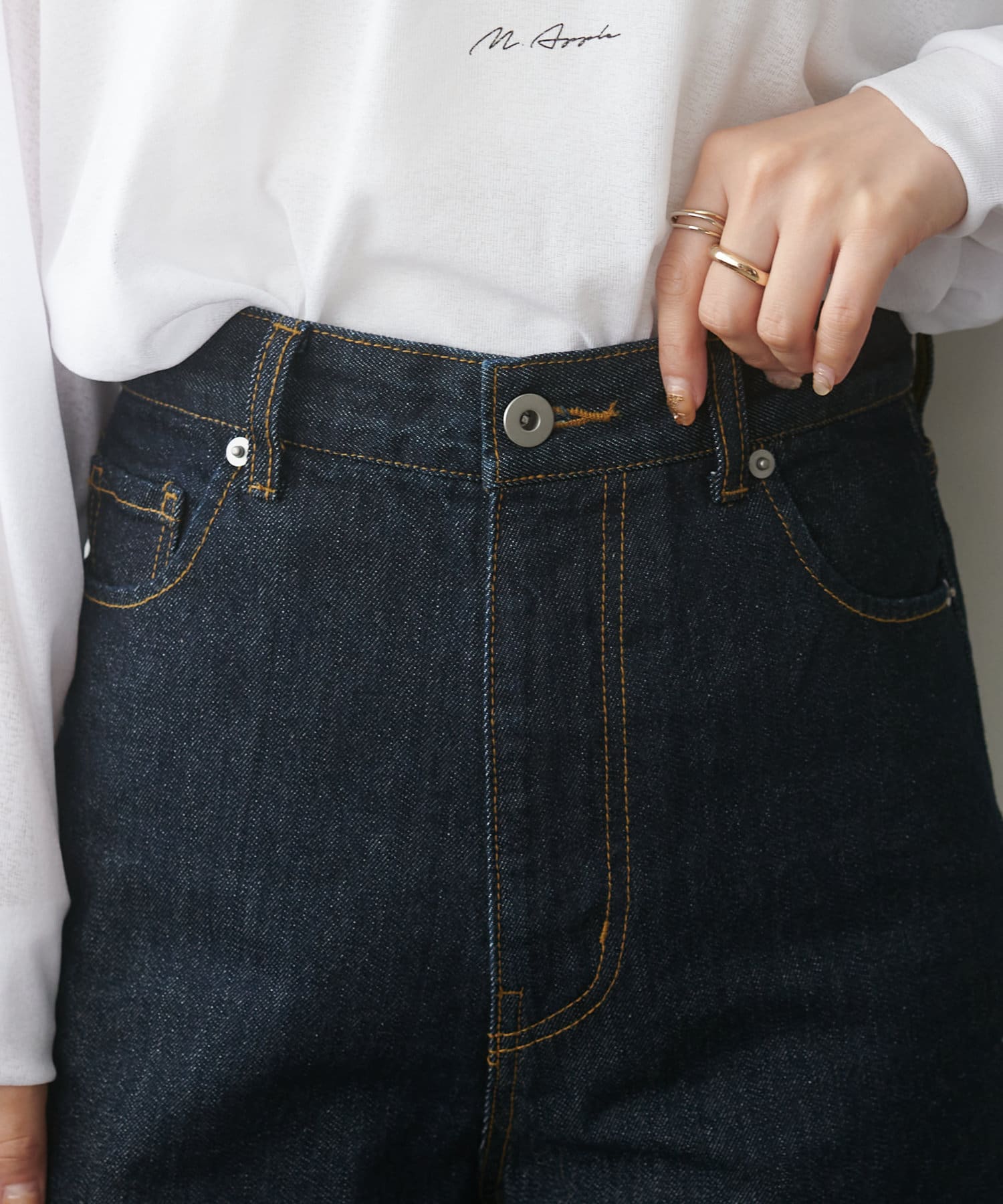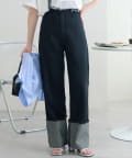 ストレートシルエットにハイウエストのデザインは美脚効果も抜群♩