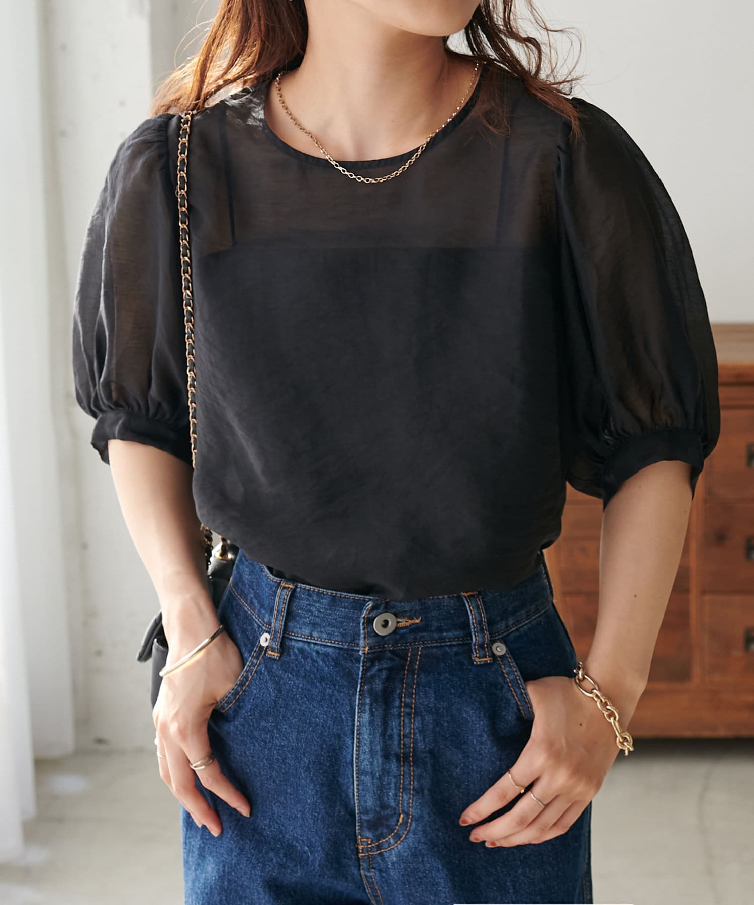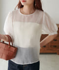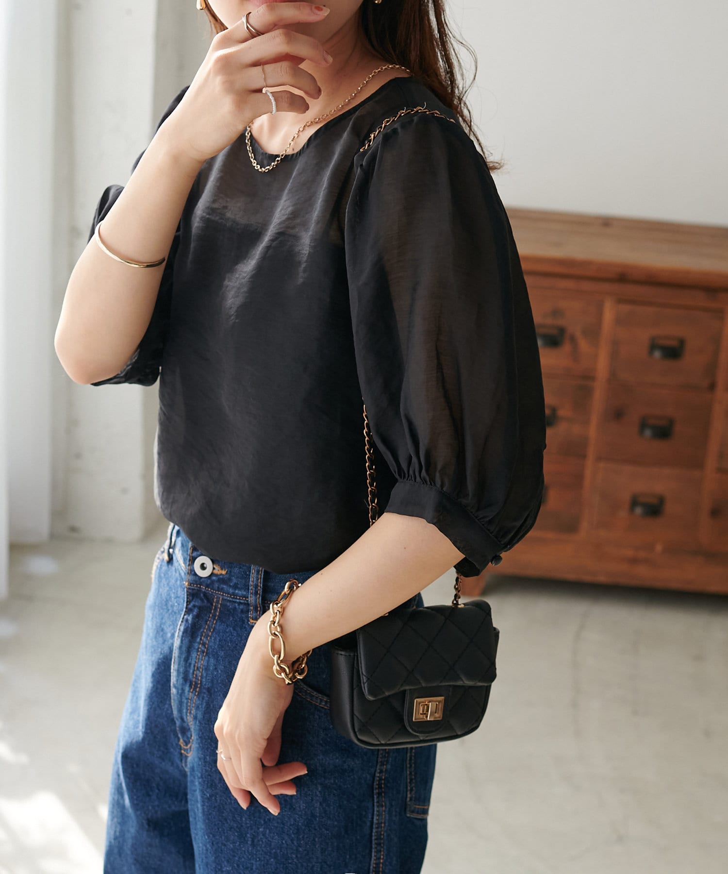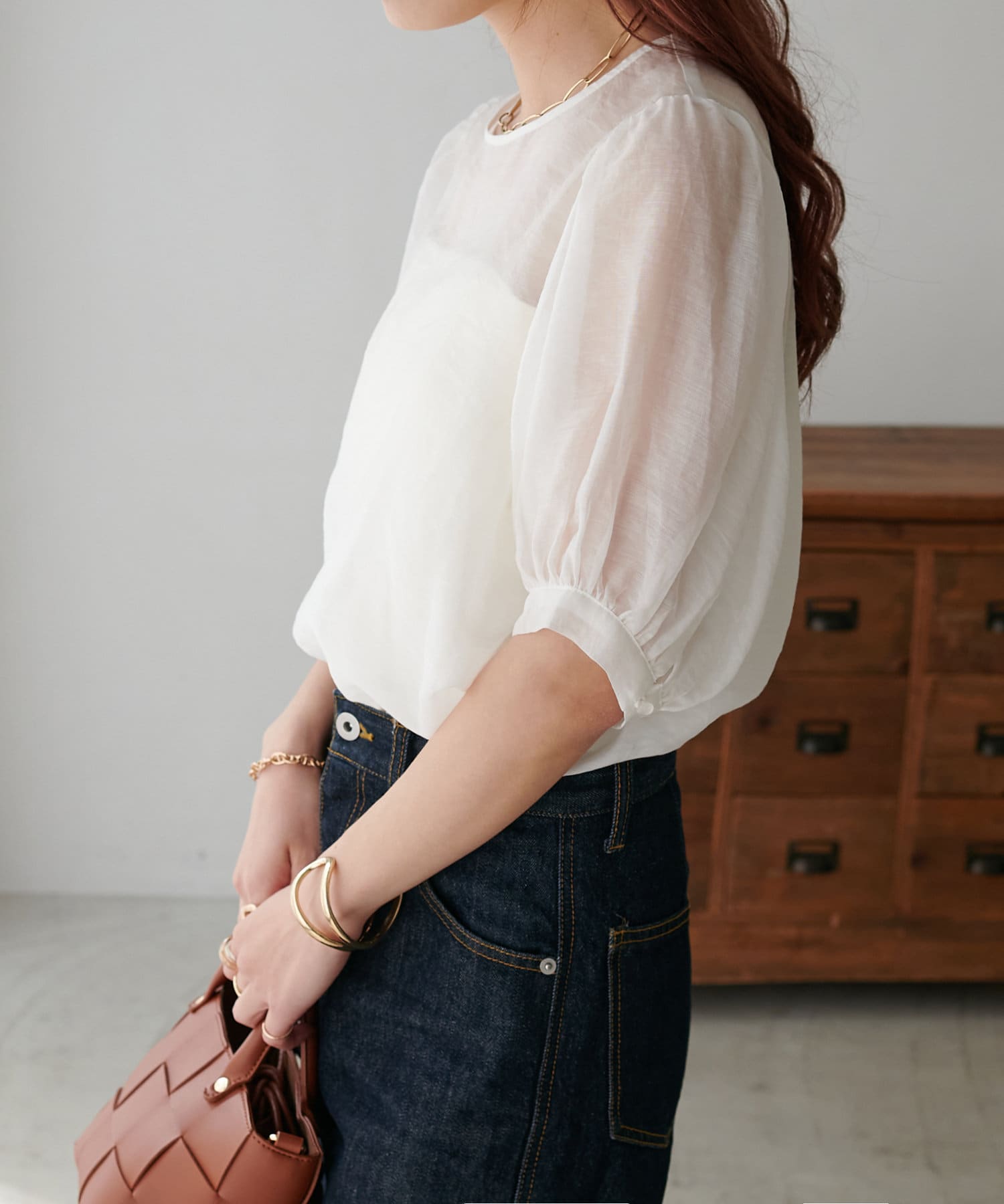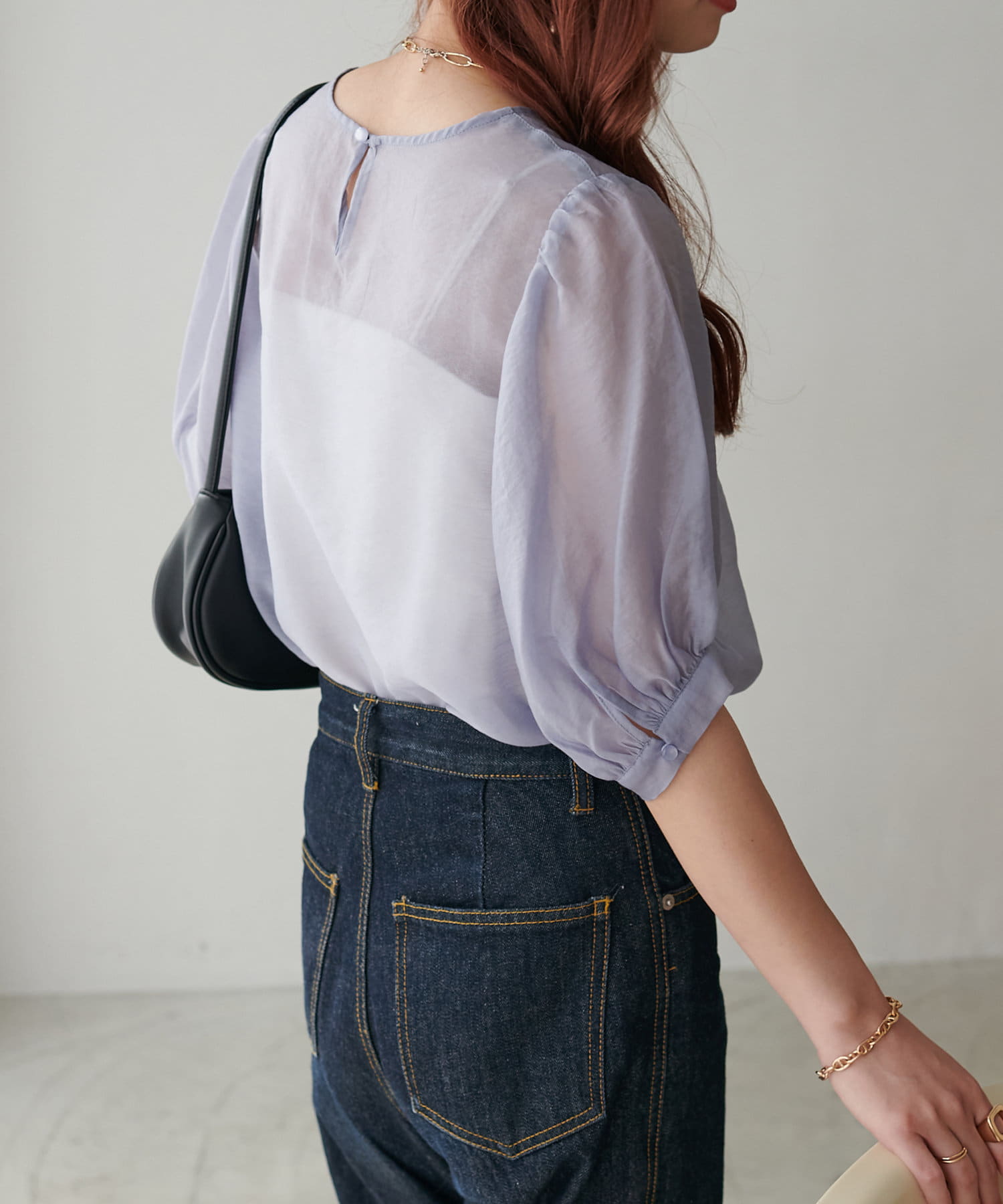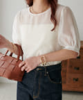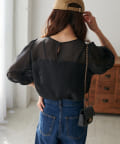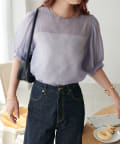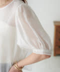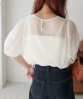 【Discoat】シアー肩ギャザー5分袖ブラウス
