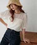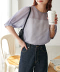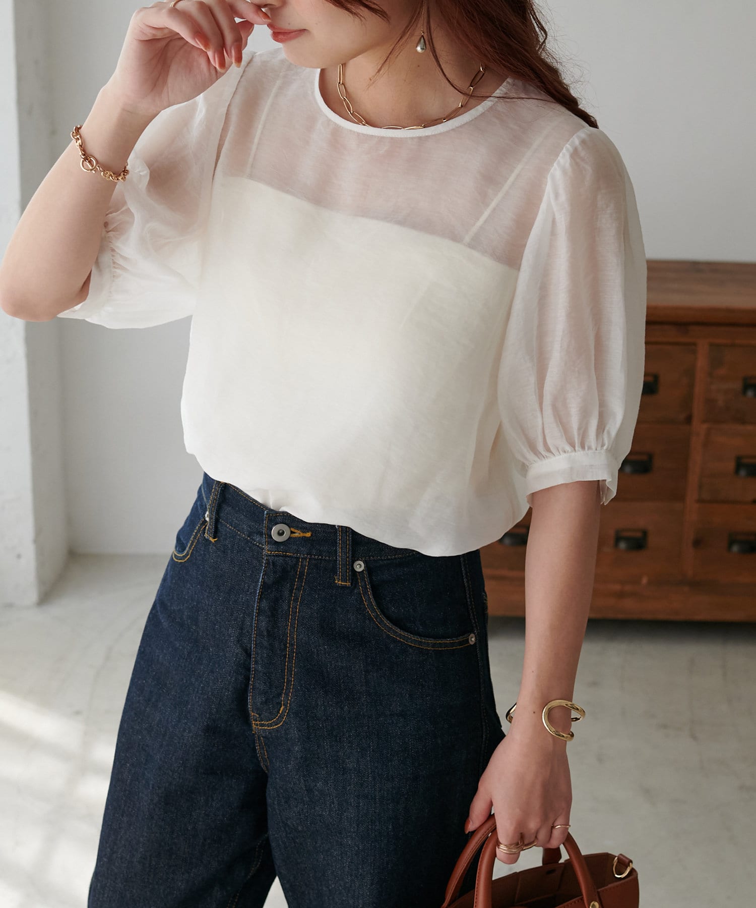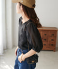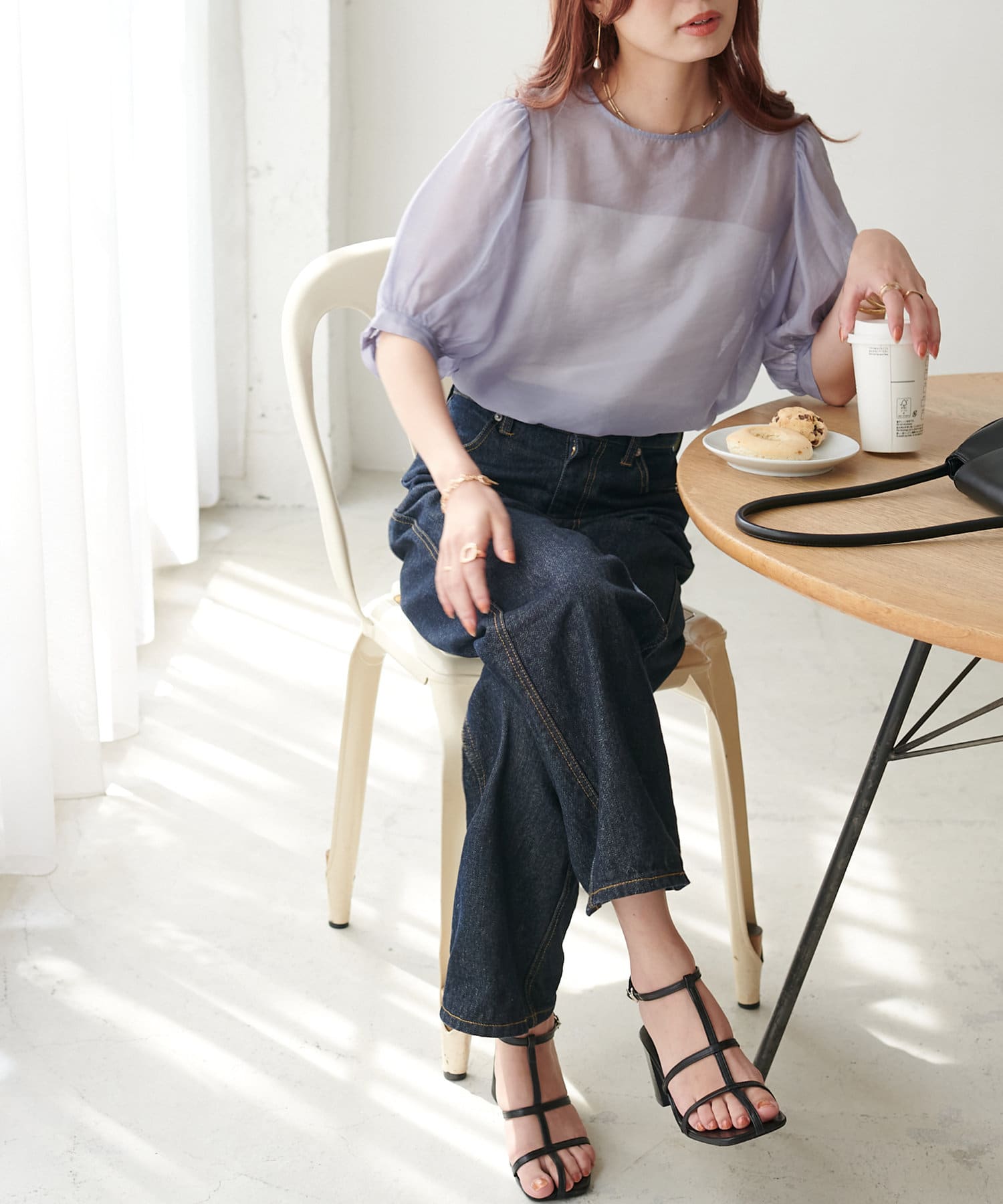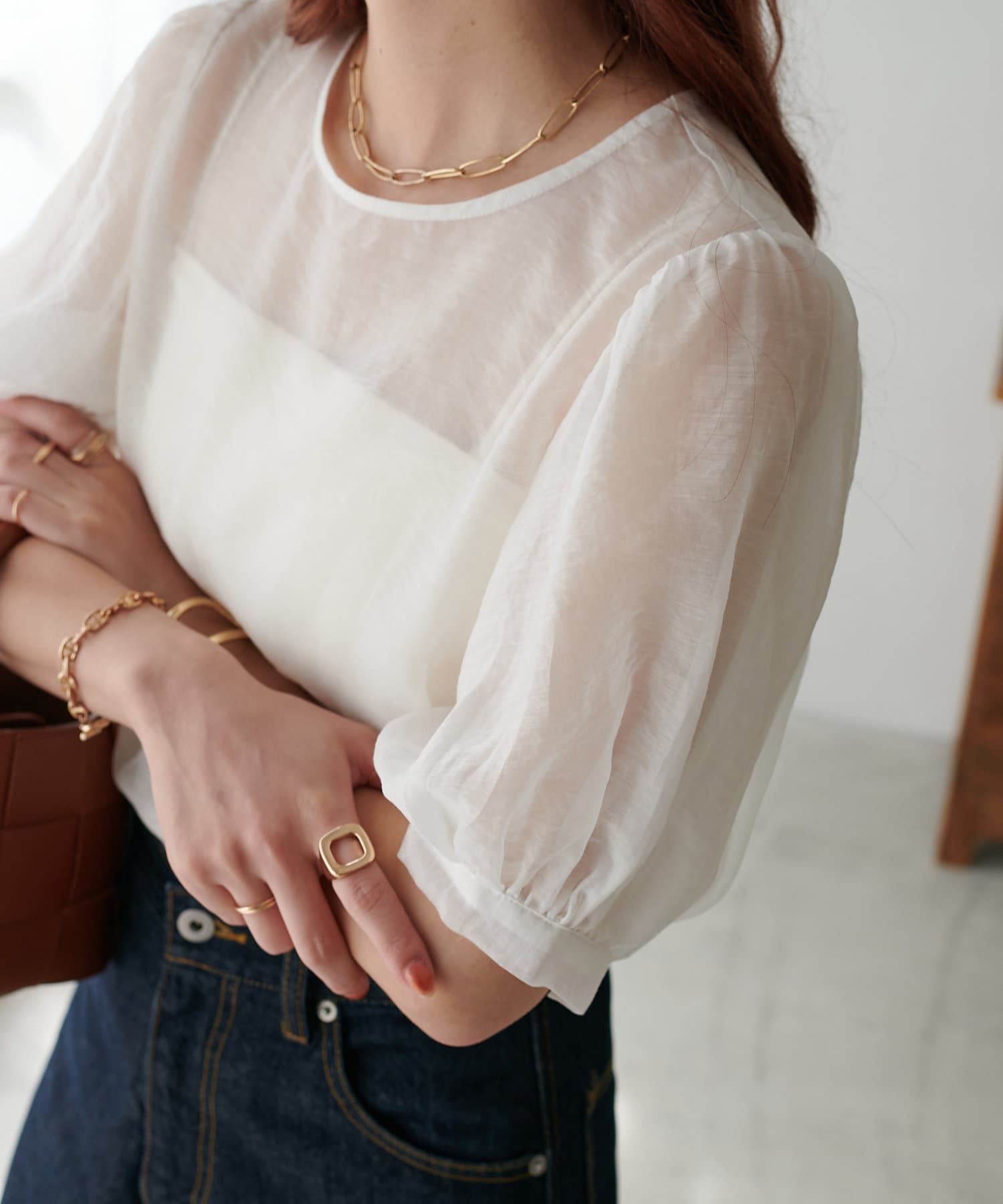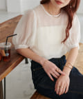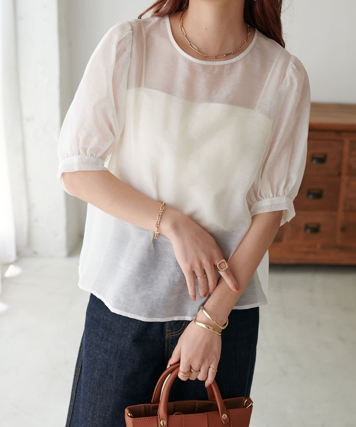 【Discoat】シアー肩ギャザー5分袖ブラウス