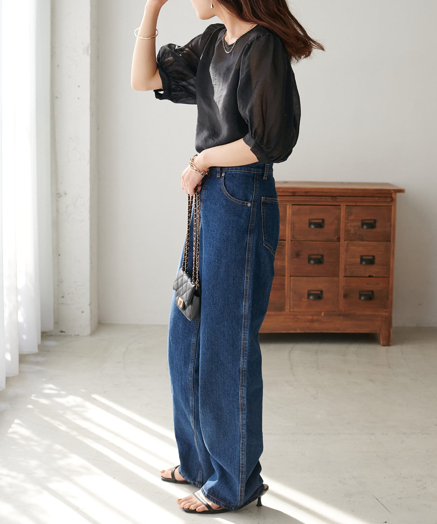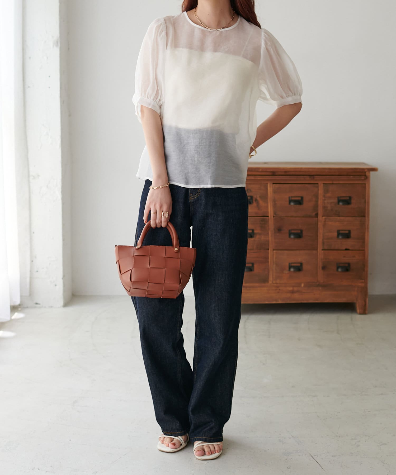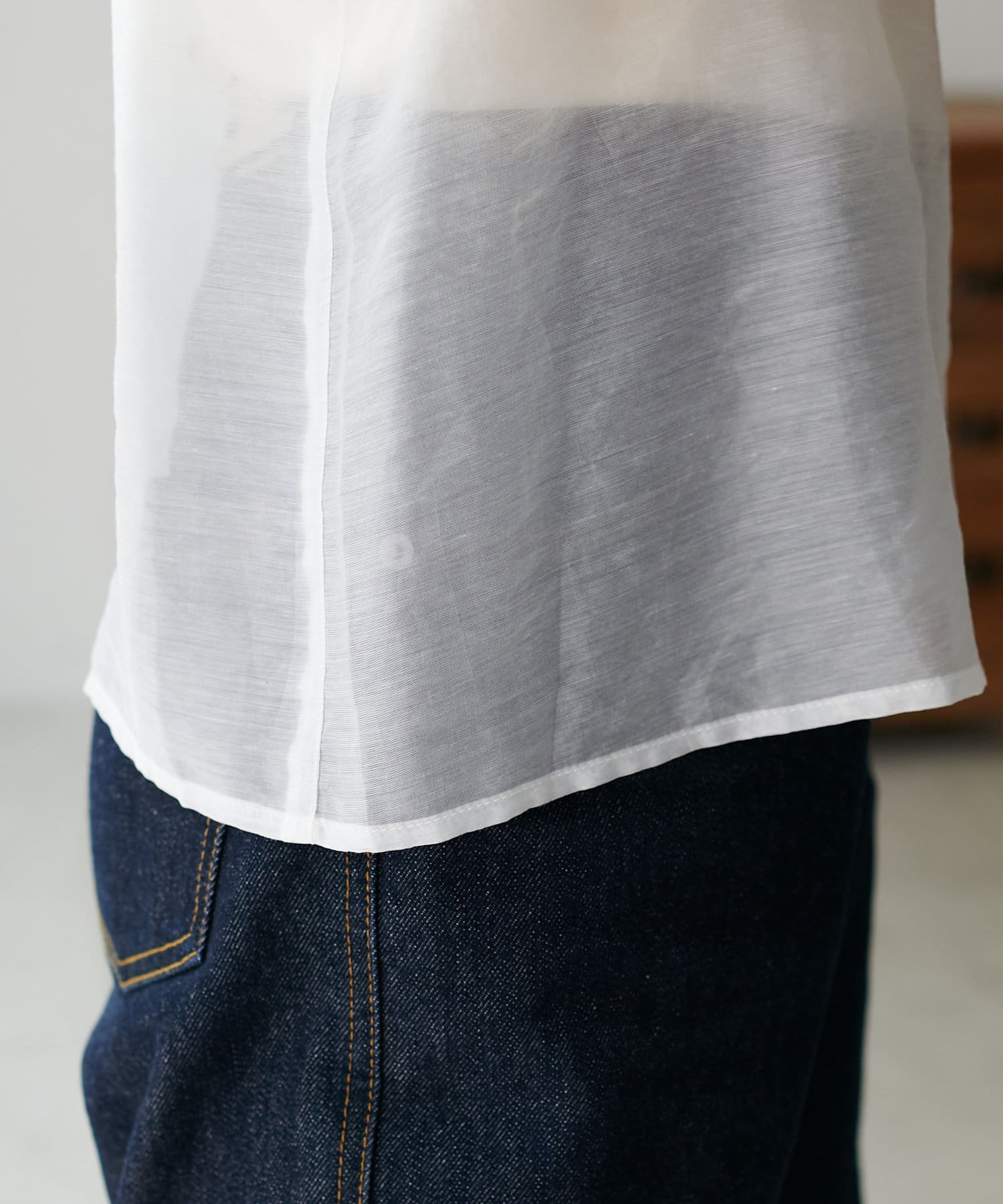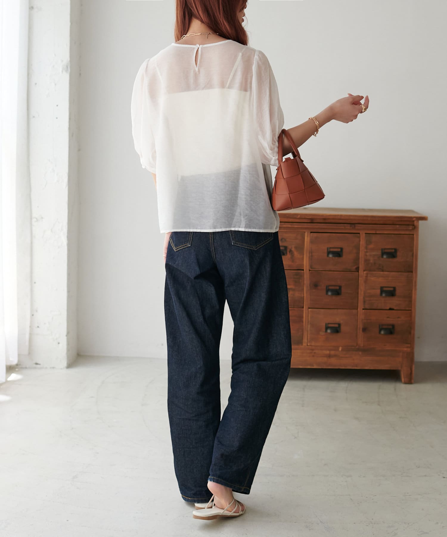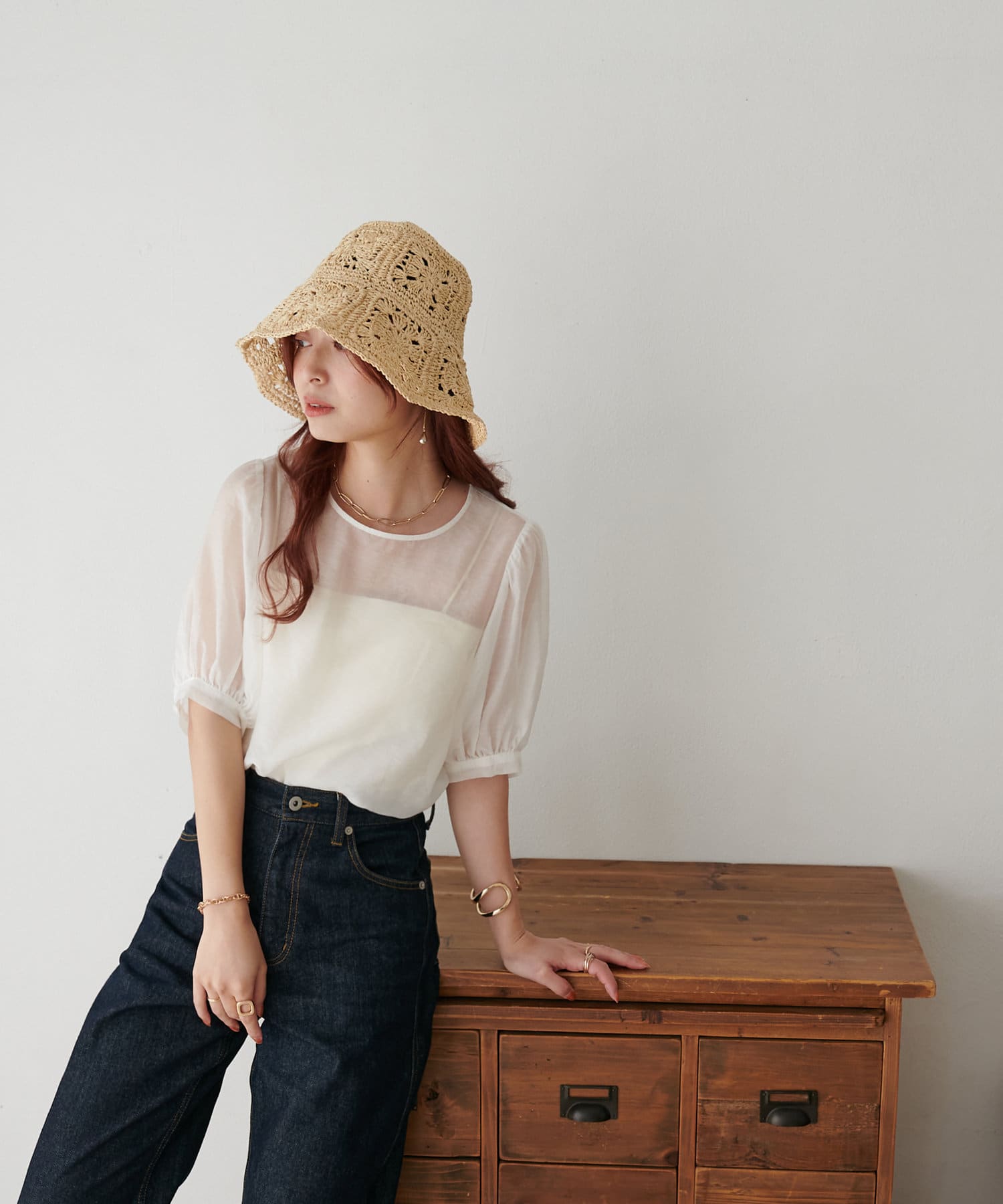【Discoat】シアー肩ギャザー5分袖ブラウス
