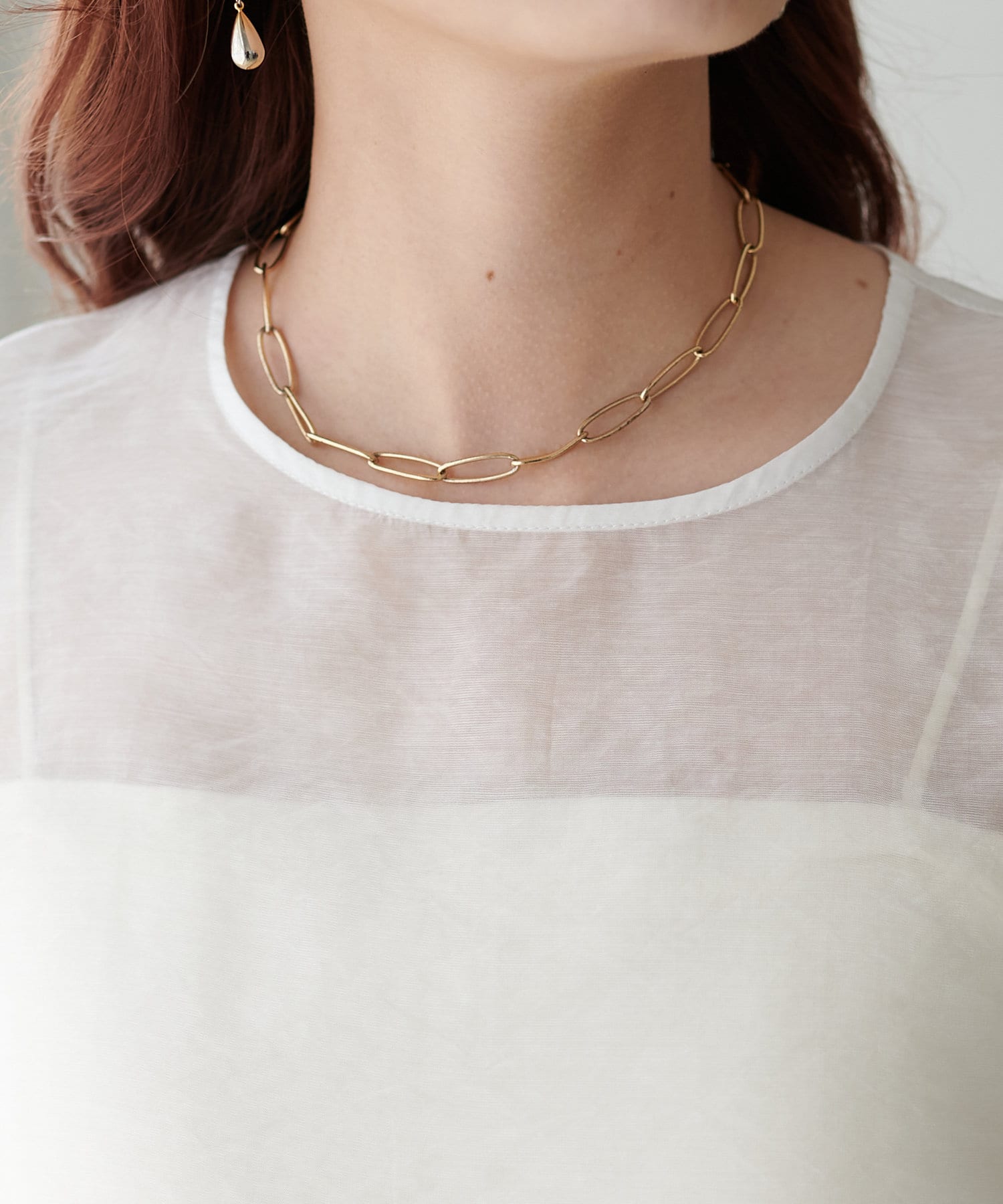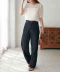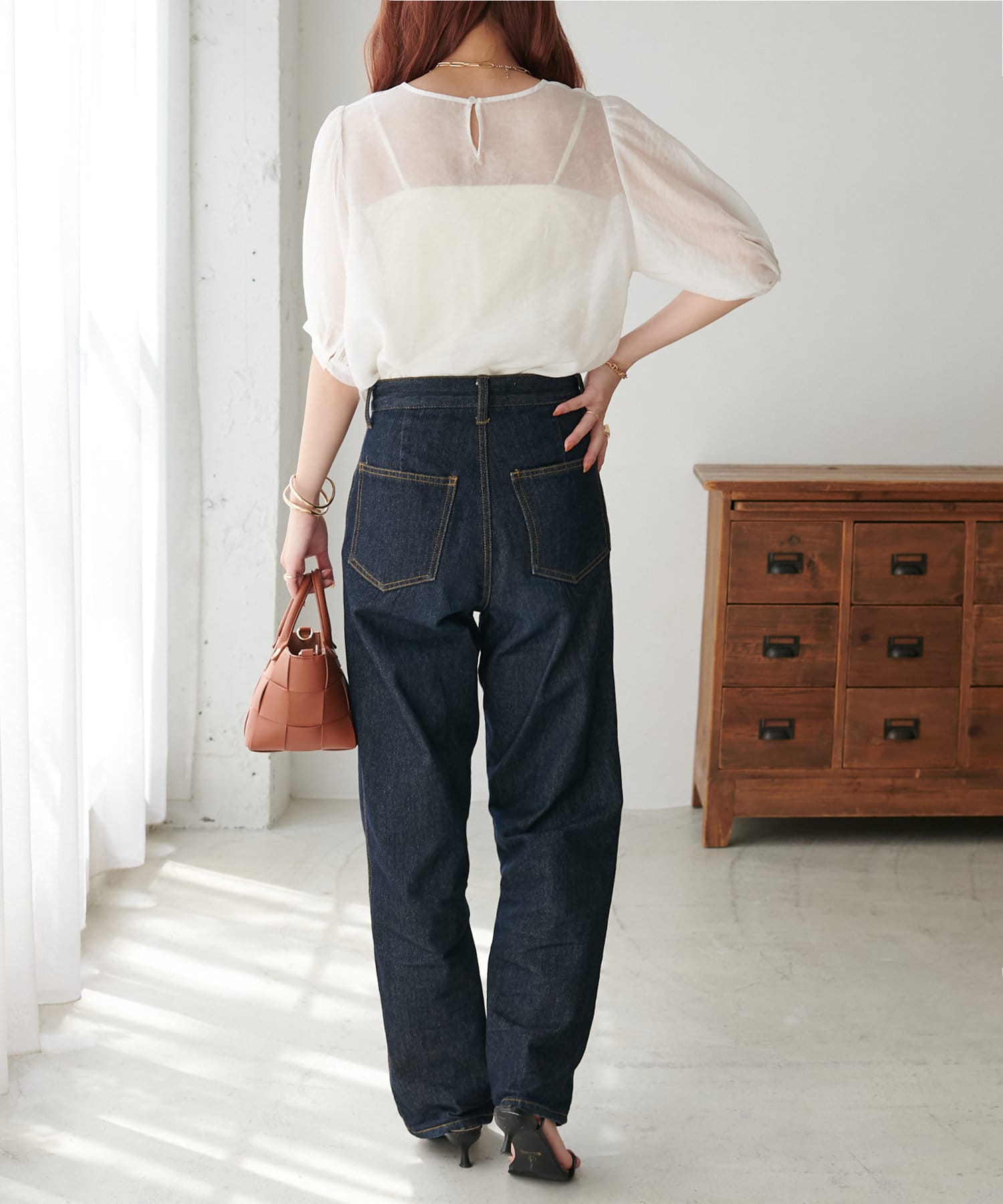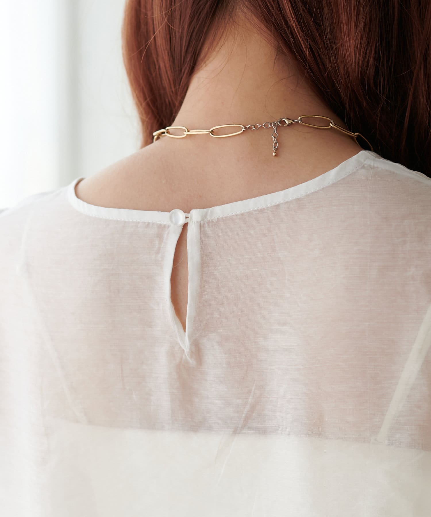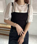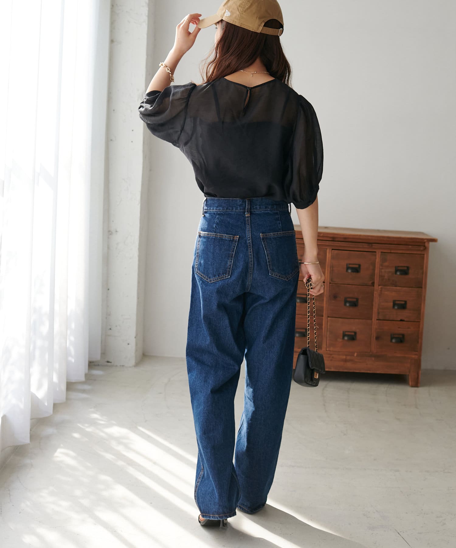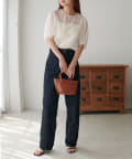 【Discoat】シアー肩ギャザー5分袖ブラウス