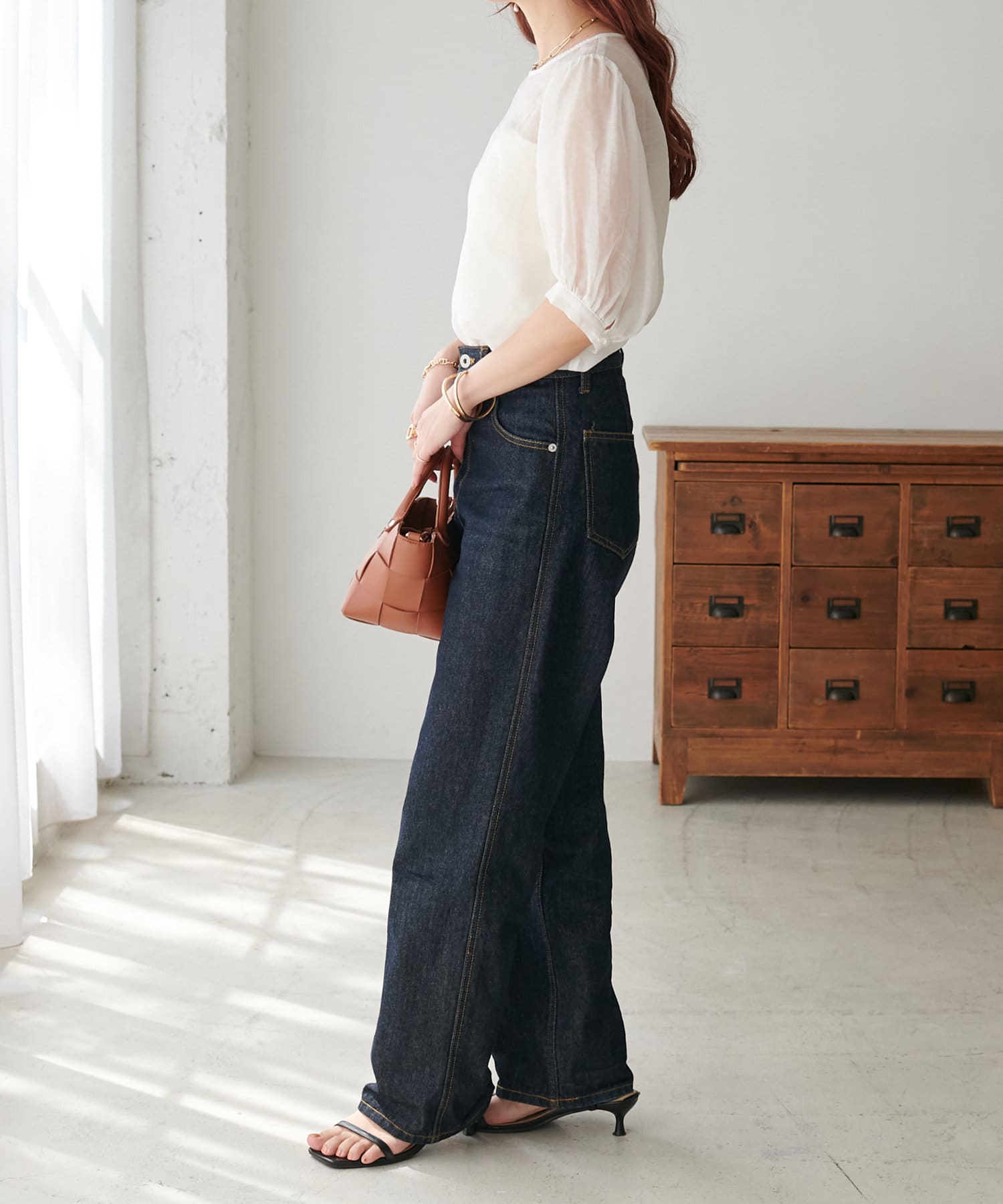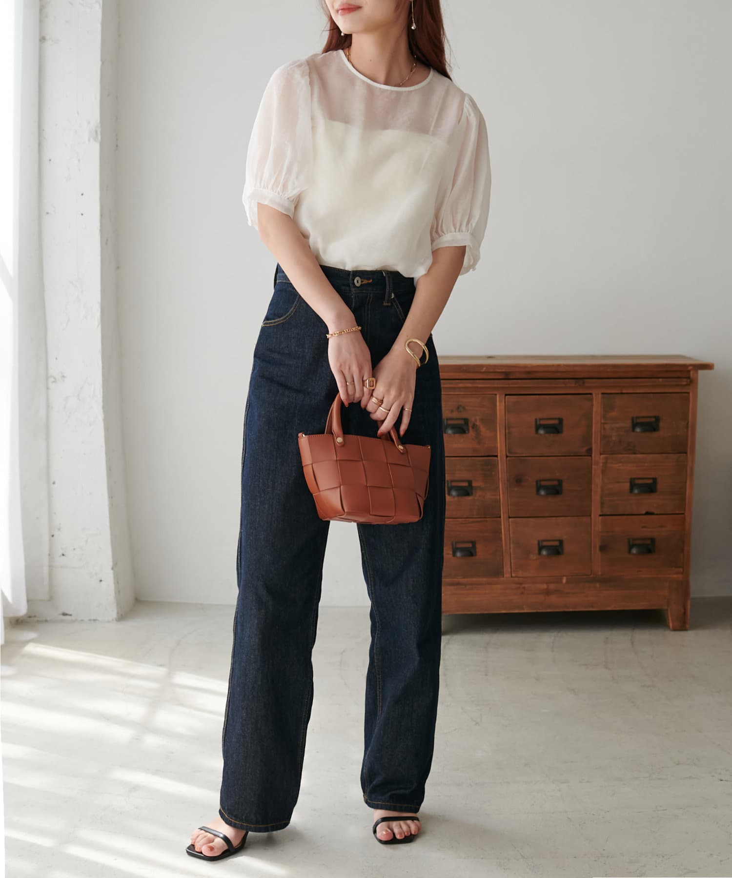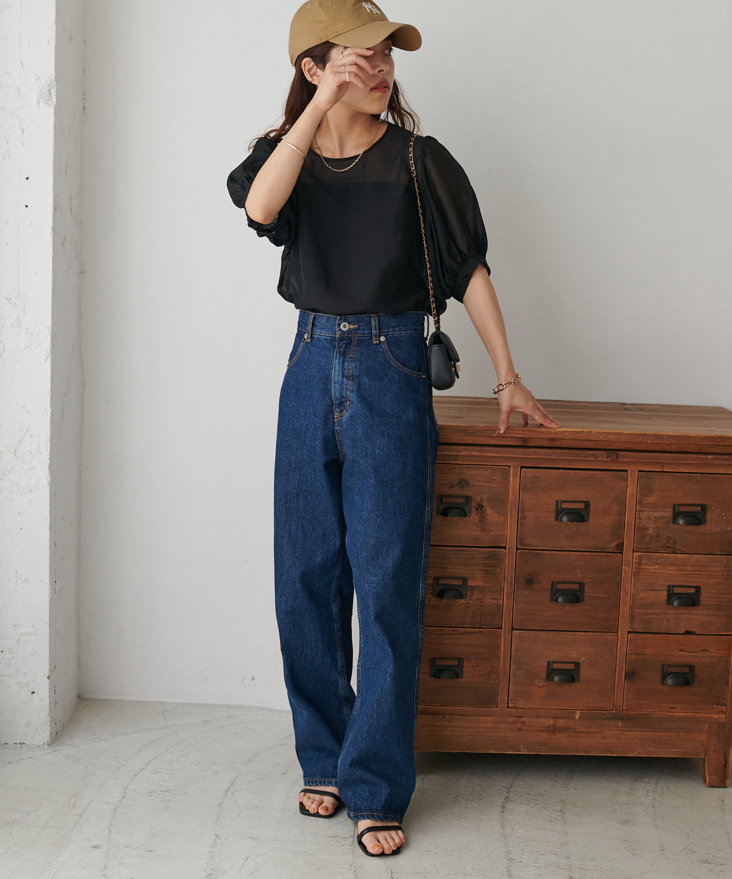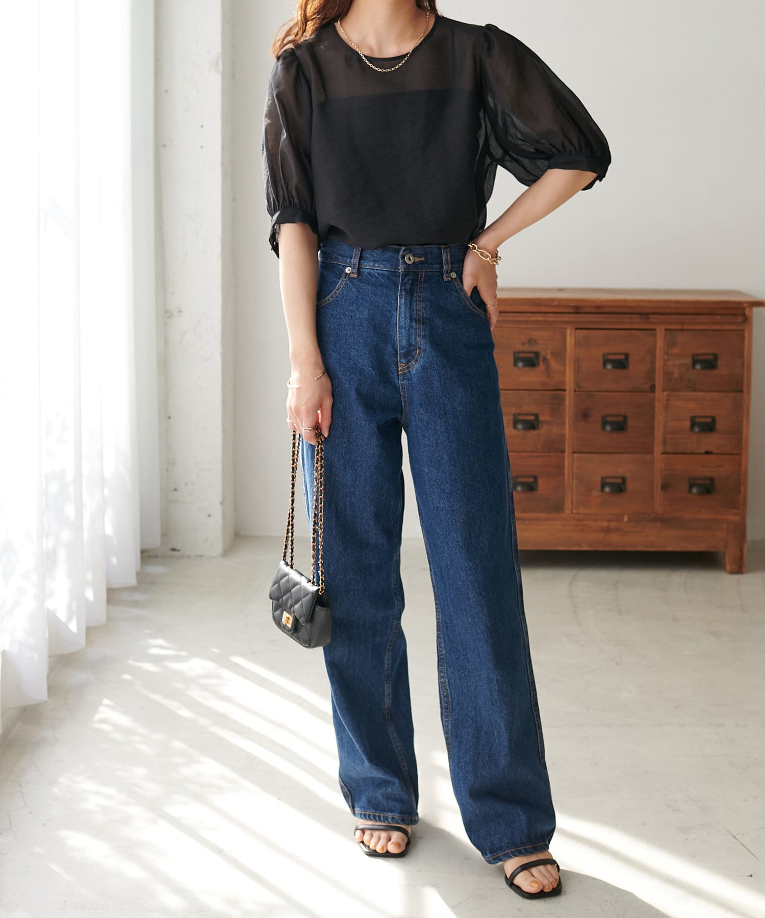 袖丈が5分袖のデザインで今から長く使えるアイテム。透け感のある素材が、軽やかな雰囲気に仕上げてくれるブラウスです。肩と袖口にギャザーを入れたふんわりとしたシルエットが、女性らしい印象に。オンオフ問わず使えて、合わせるボトムス次第でカジュアルにもキレイメにも着回せるアイテムです♪