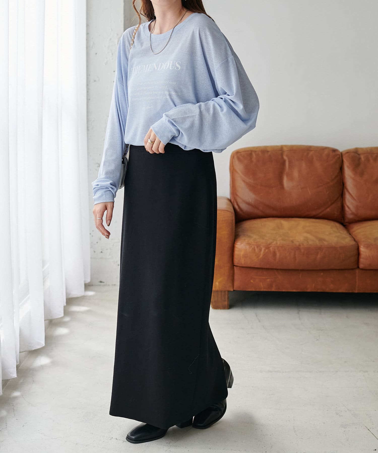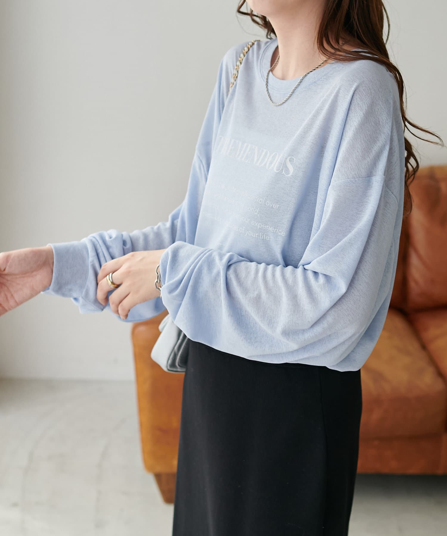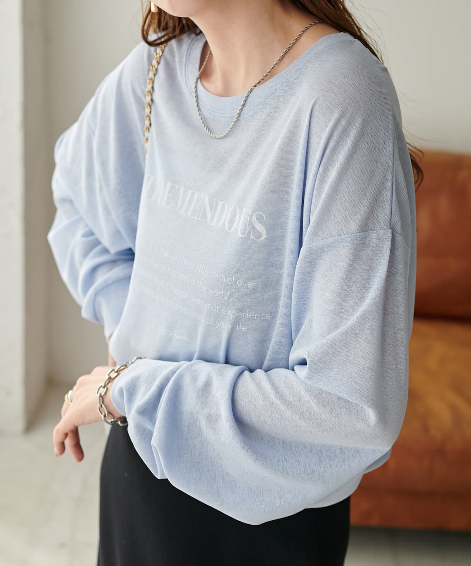 程よい透け感のシアー素材にロゴプリントがアクセントのロングスリーブTシャツ。