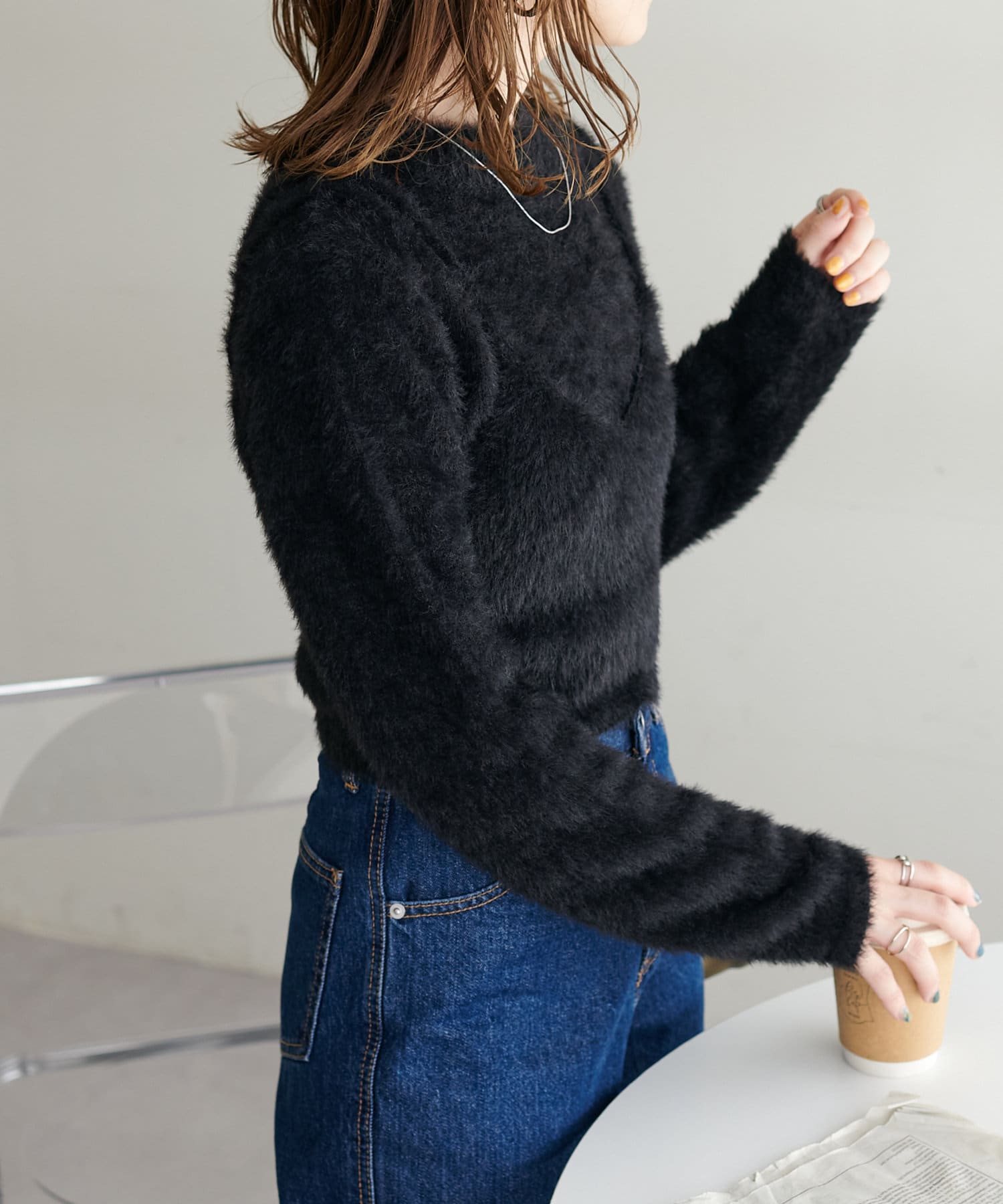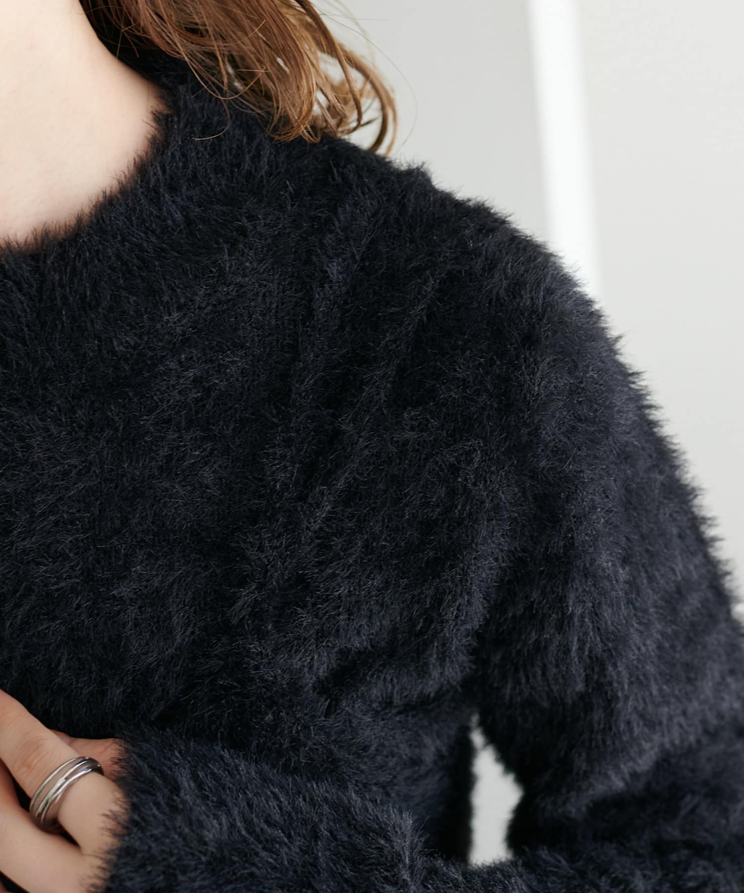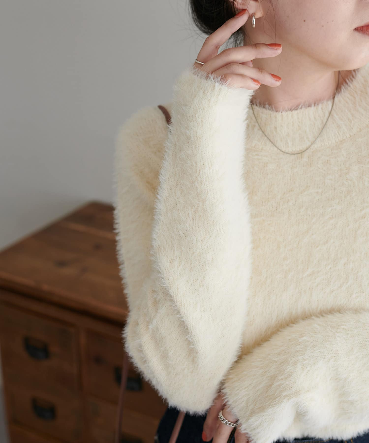 華やかな印象を与えるフェザーヤーンプルオーバー