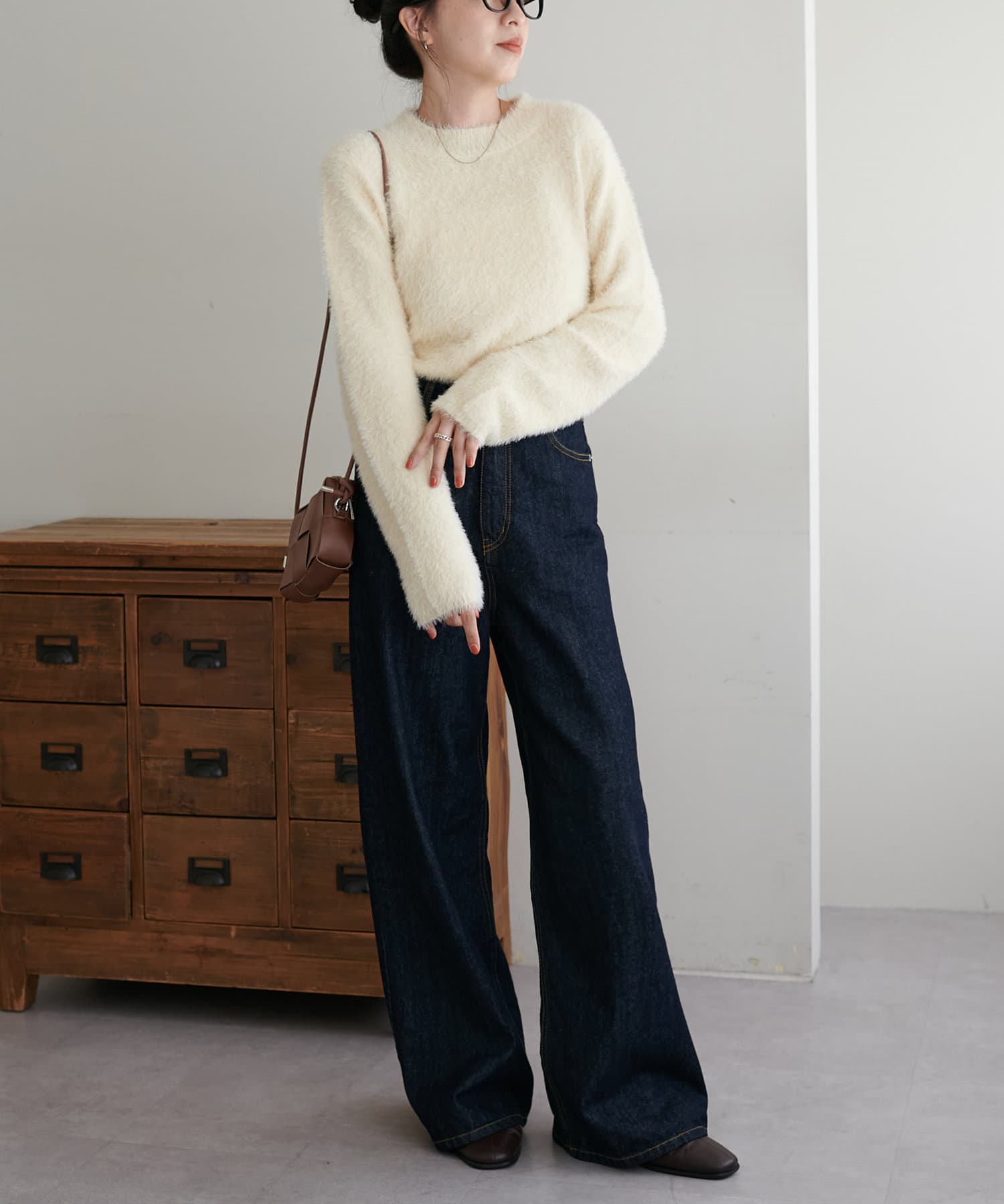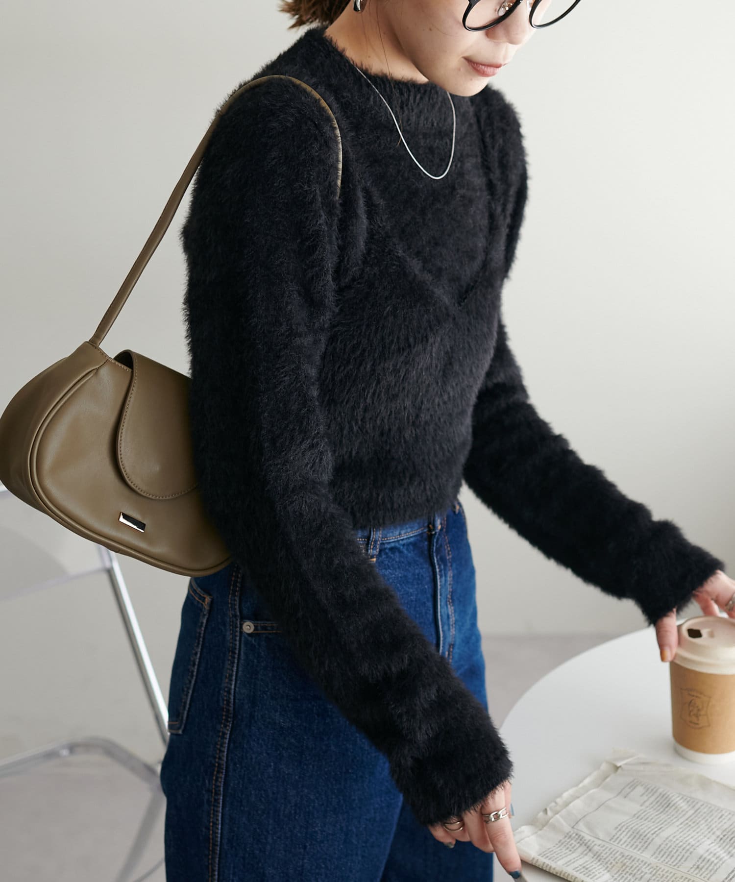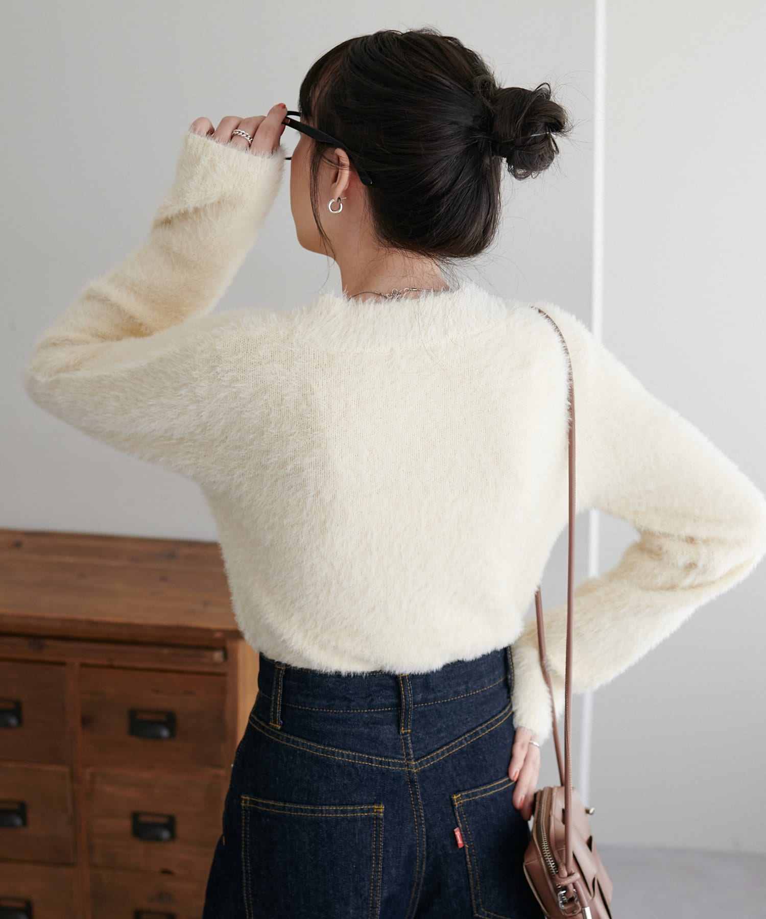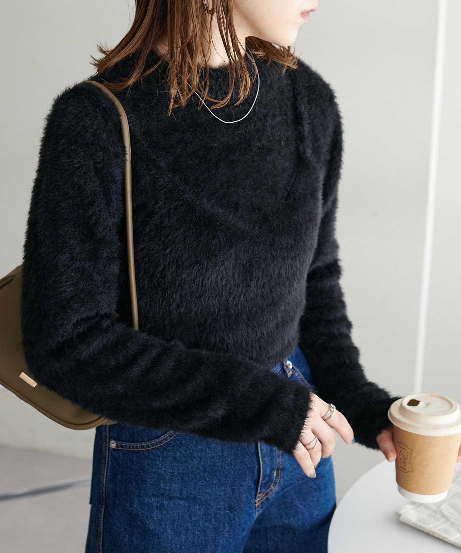 華やかな印象を与えるフェザーヤーンプルオーバー