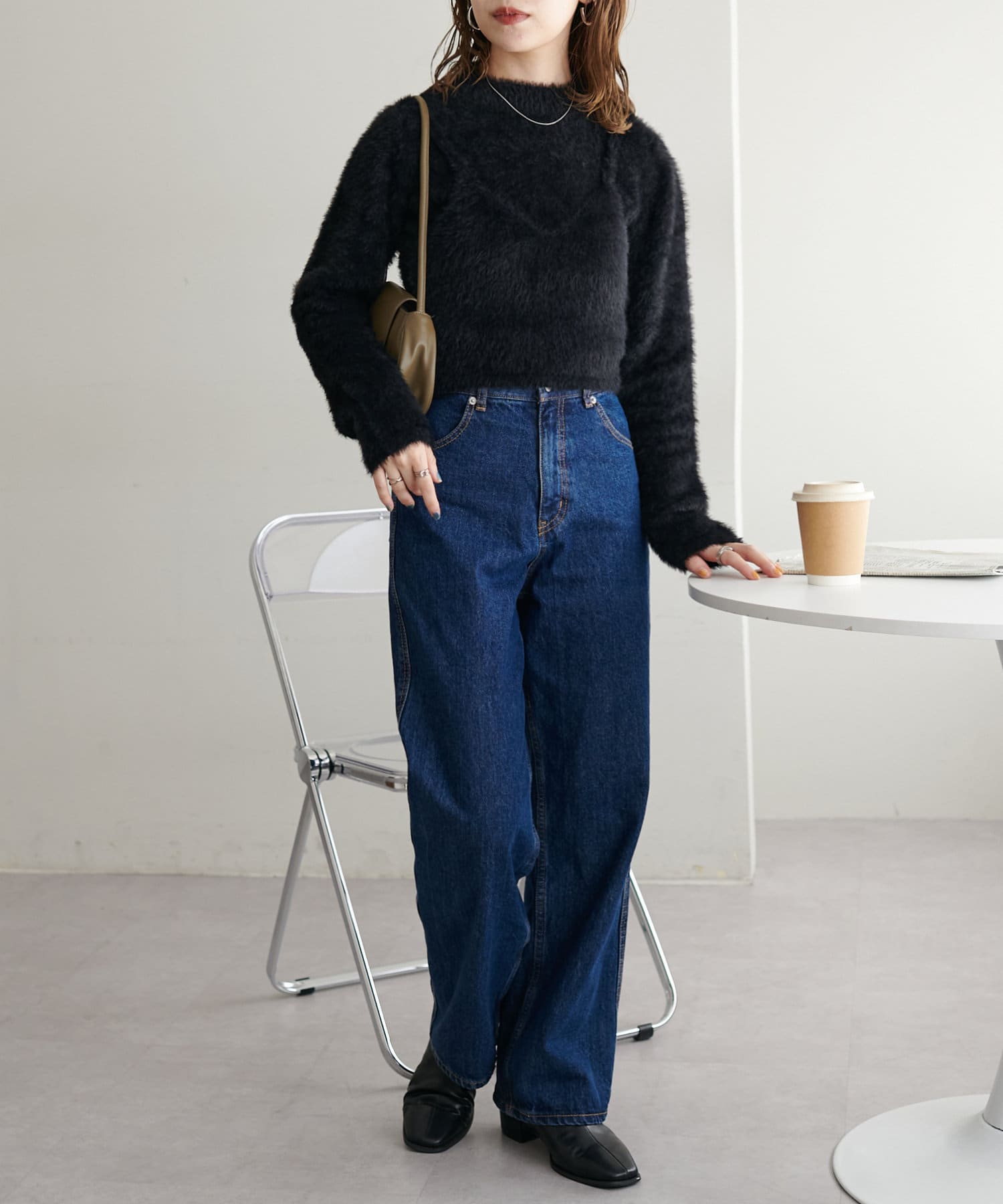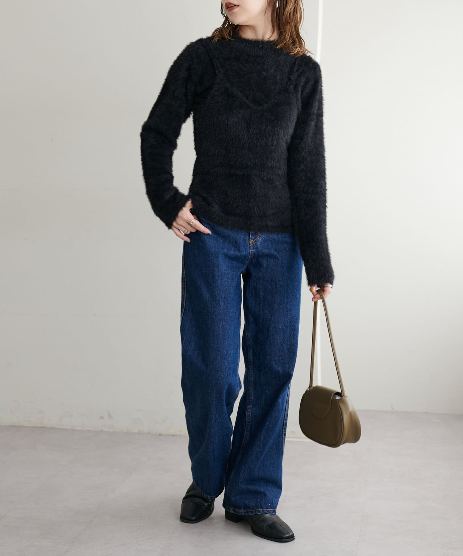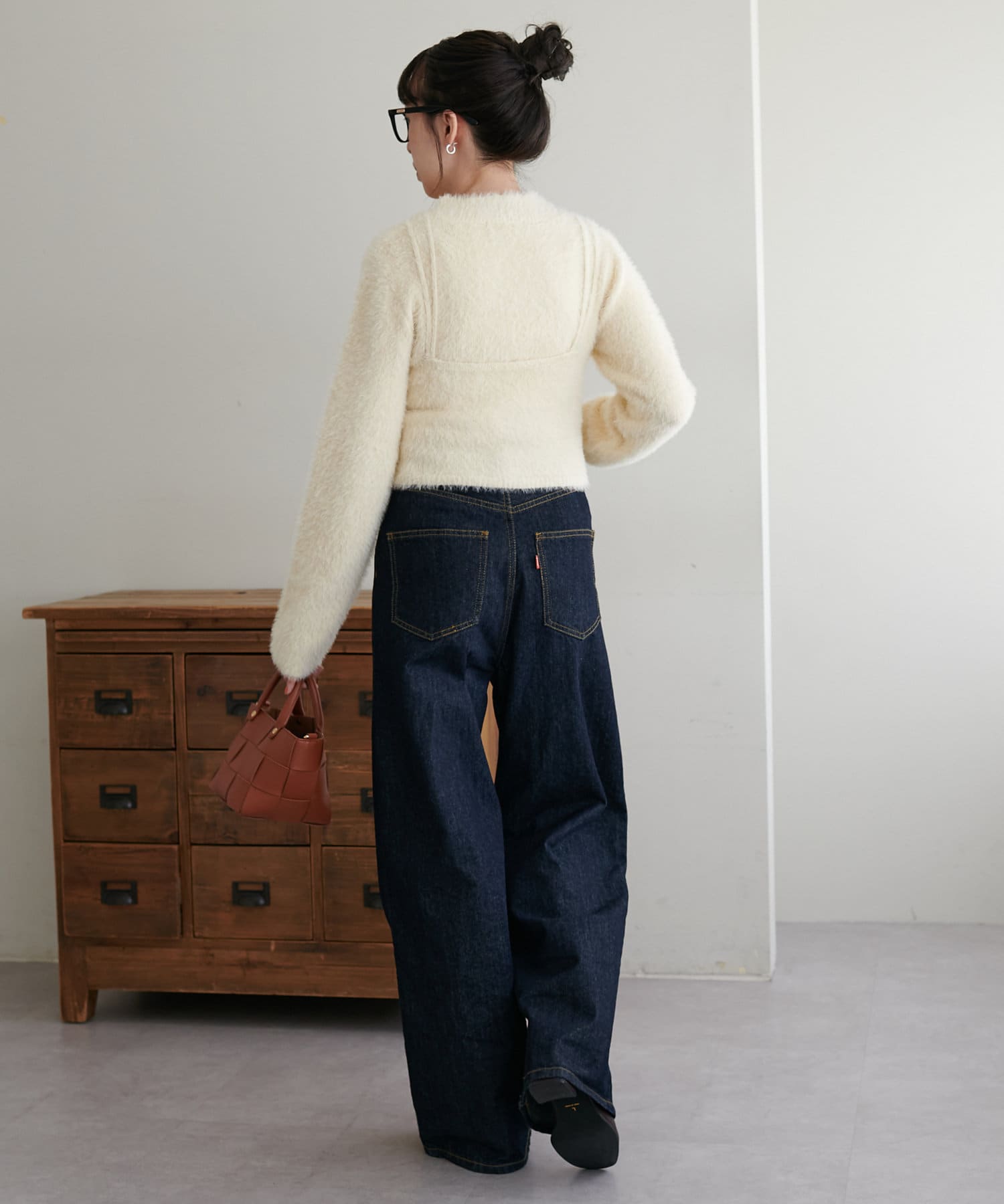 ふわふわな毛足がつい触りたくなるフェザーヤーンがSET ITEMになって登場!別々でも着用可能なプルオーバーとビスチェに分かれており、セットで着ると凹凸感のある女性らしいシルエットに仕上がります。プルオーバーの1枚着やTシャツ×ビスチェなど、合わせ方は様々◎ロングシーズン活躍する使い勝手の良いアイテムです♪