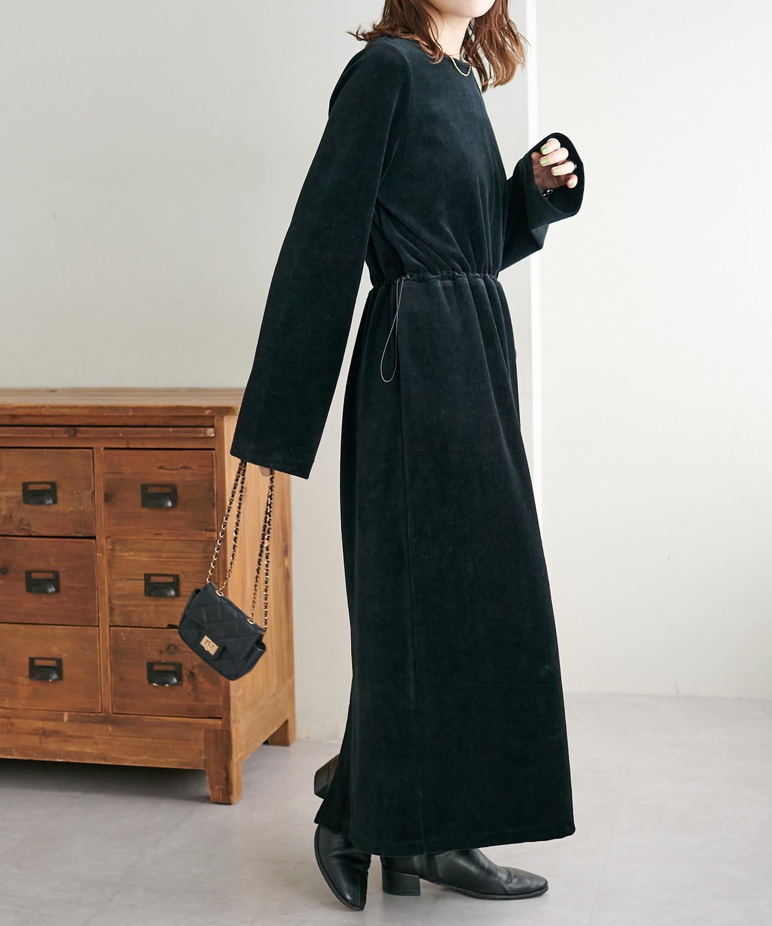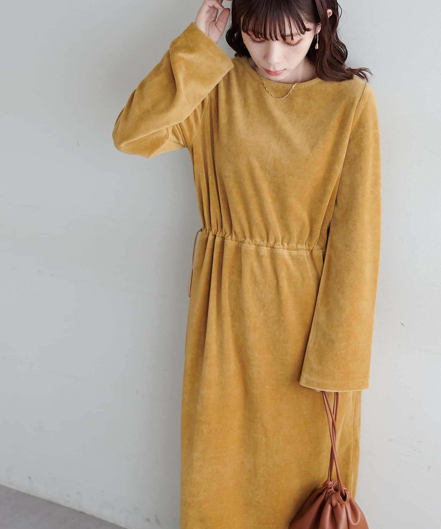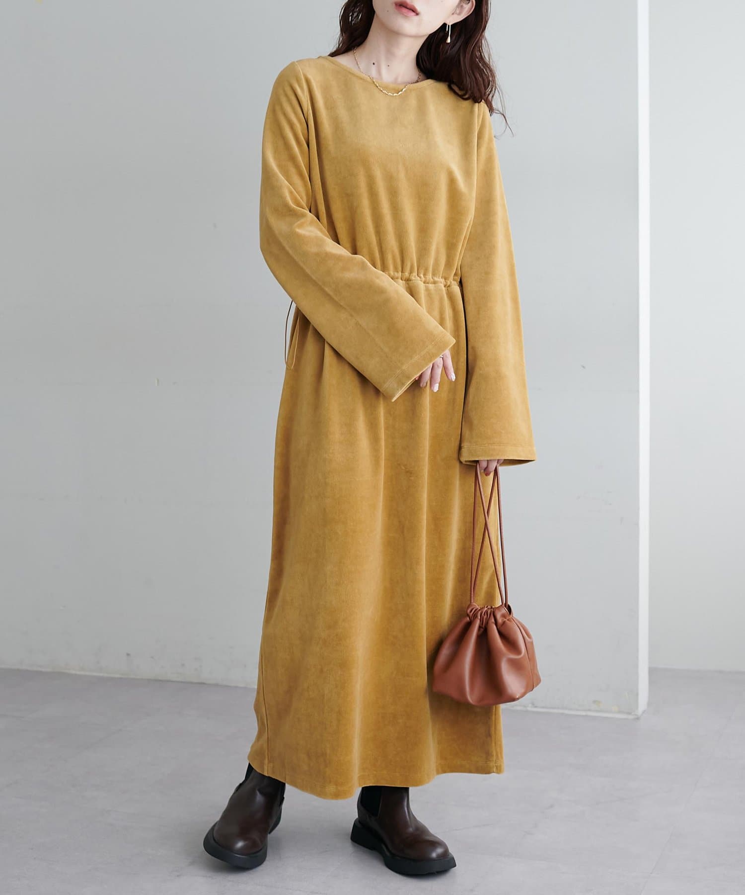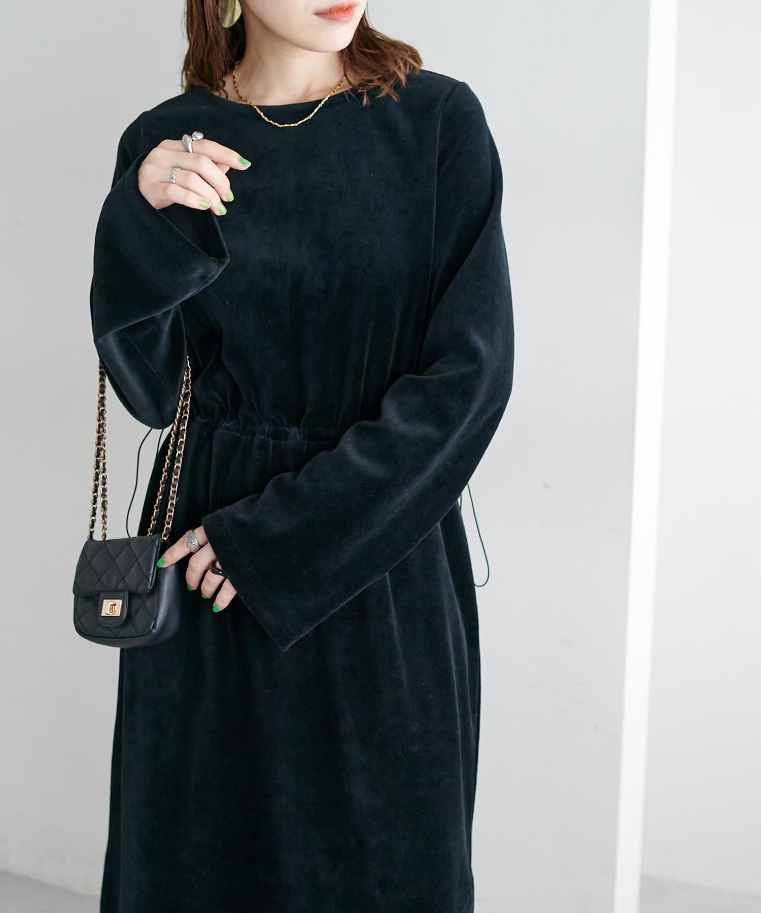 滑らかな肌触りで秋冬にピッタリな長袖ベロアワンピース