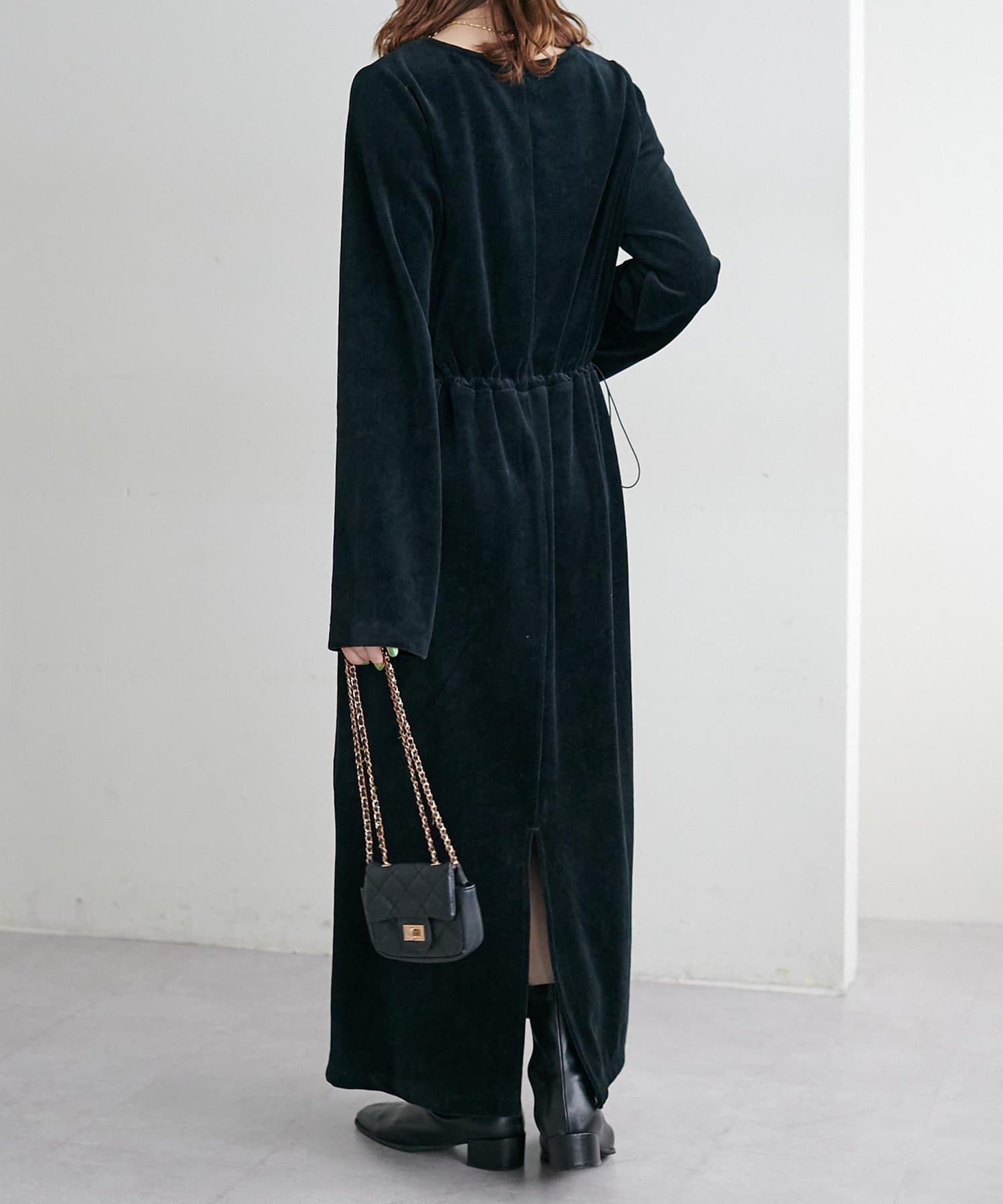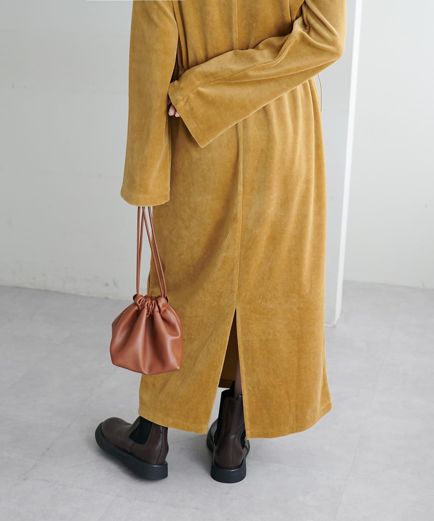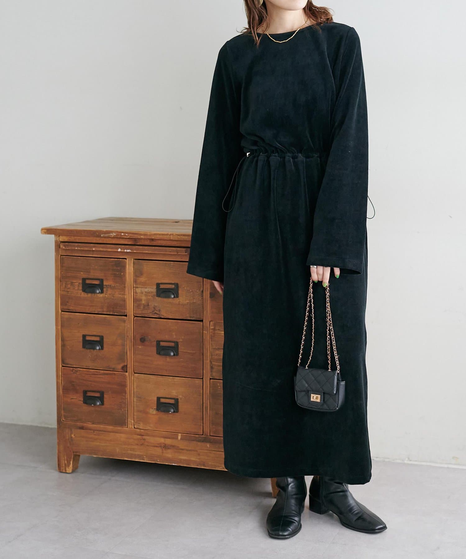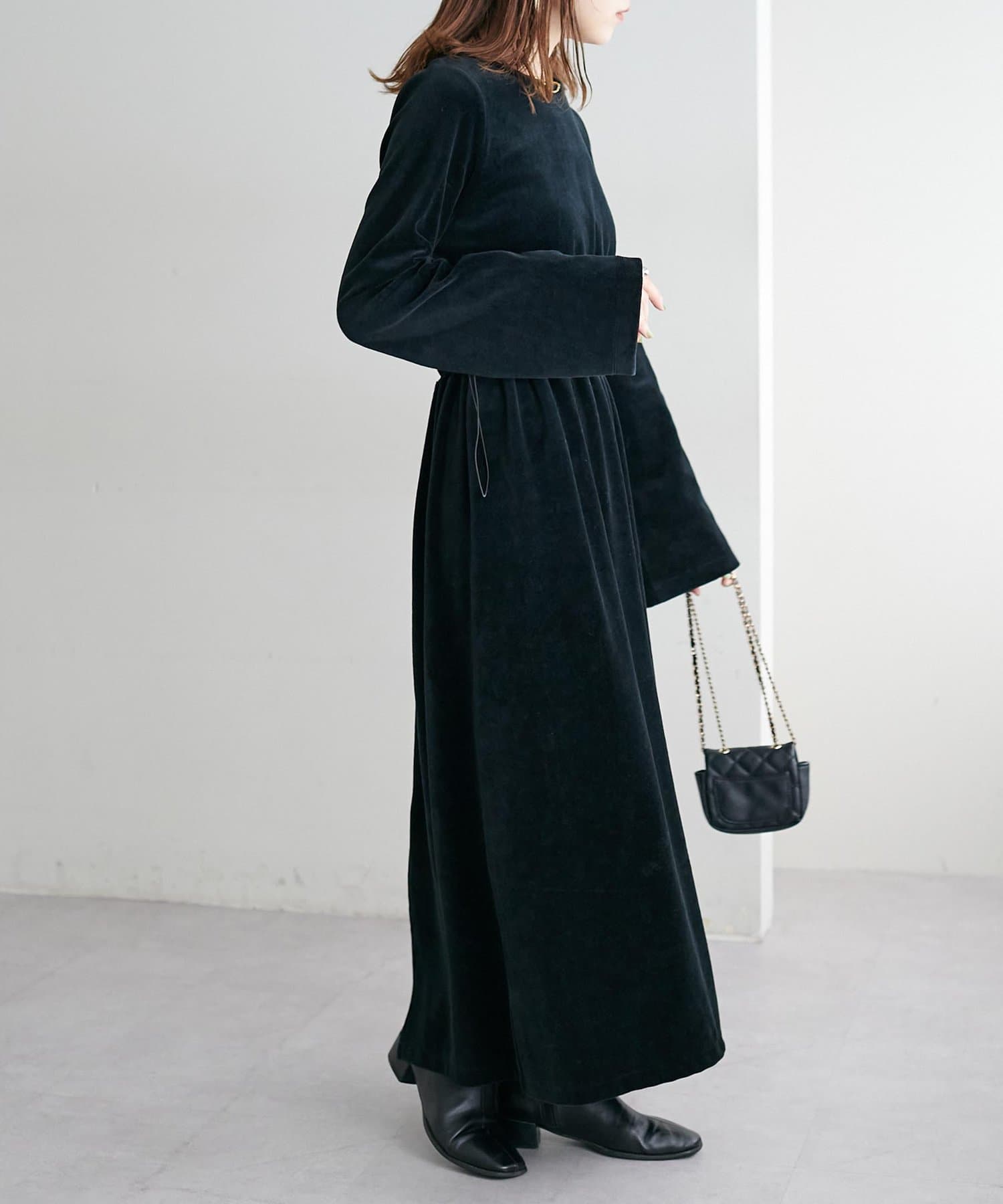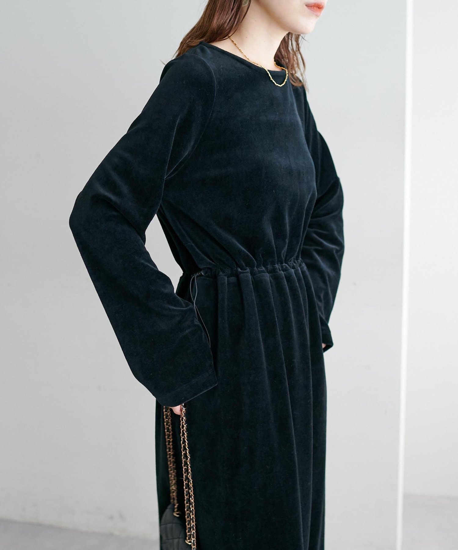 滑らかな肌触りで秋冬にピッタリな長袖ベロアワンピース