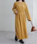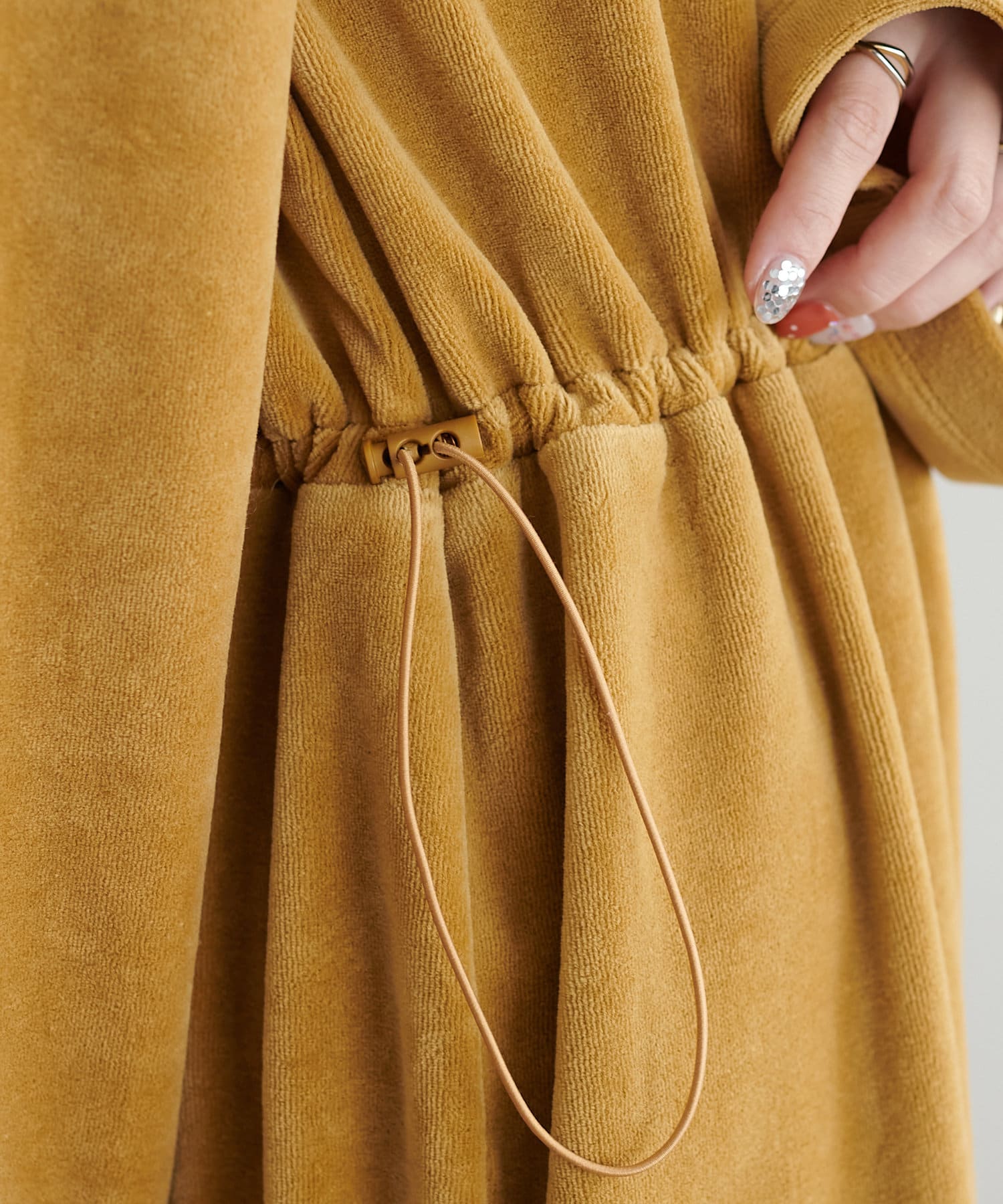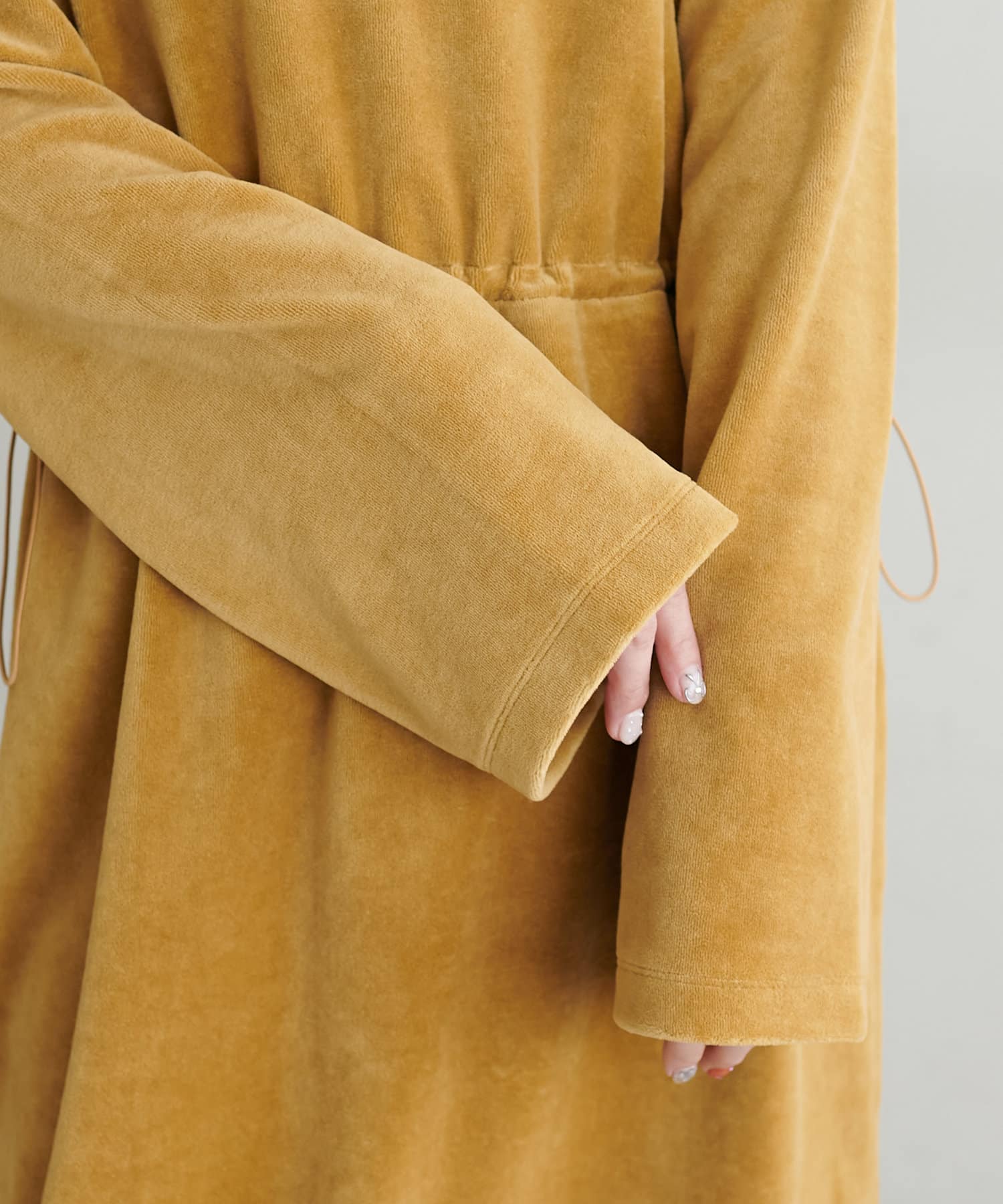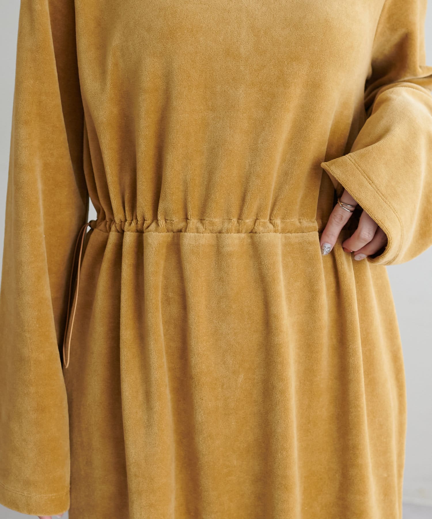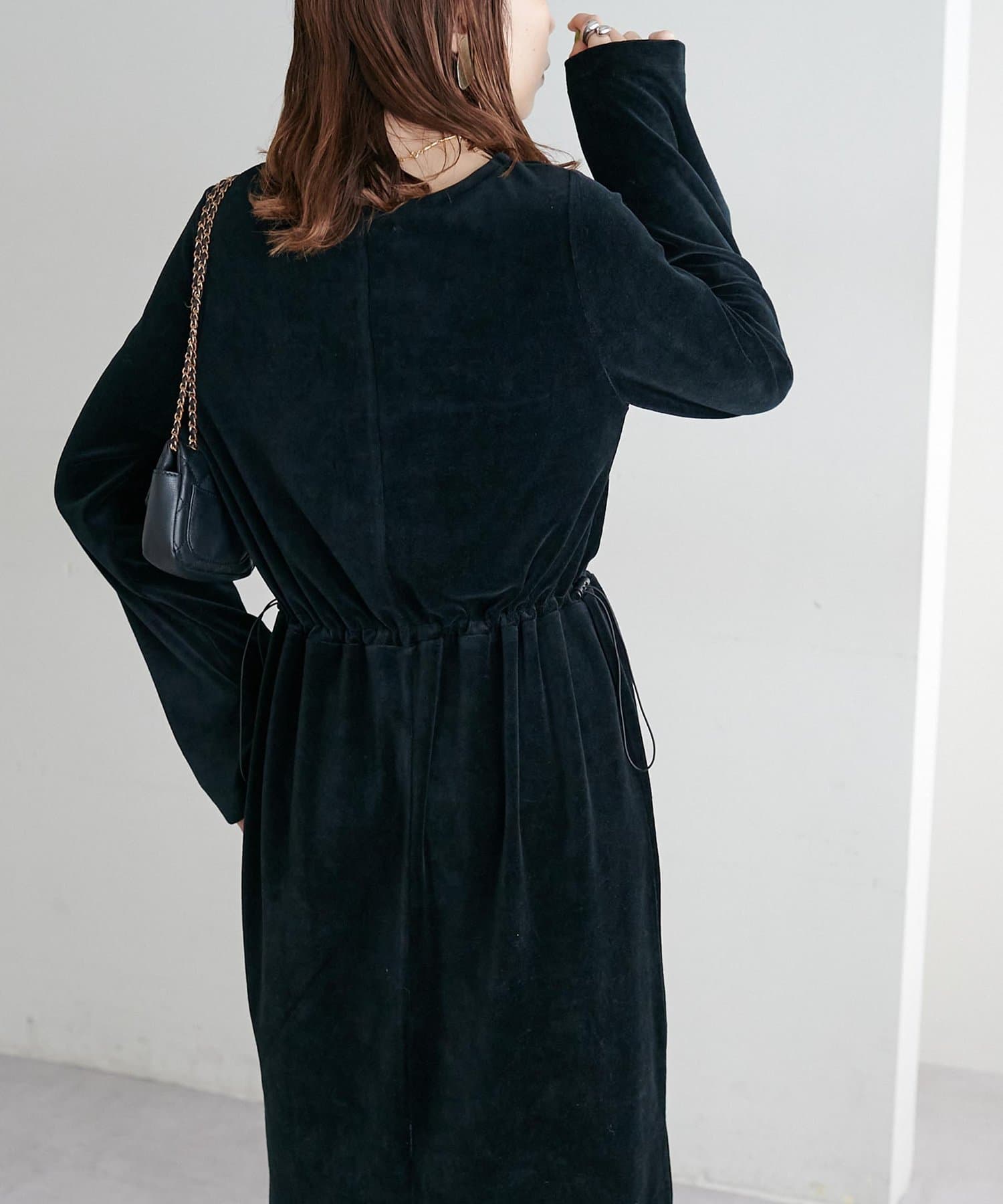 滑らかな肌触りで秋冬にピッタリな長袖ベロアワンピース