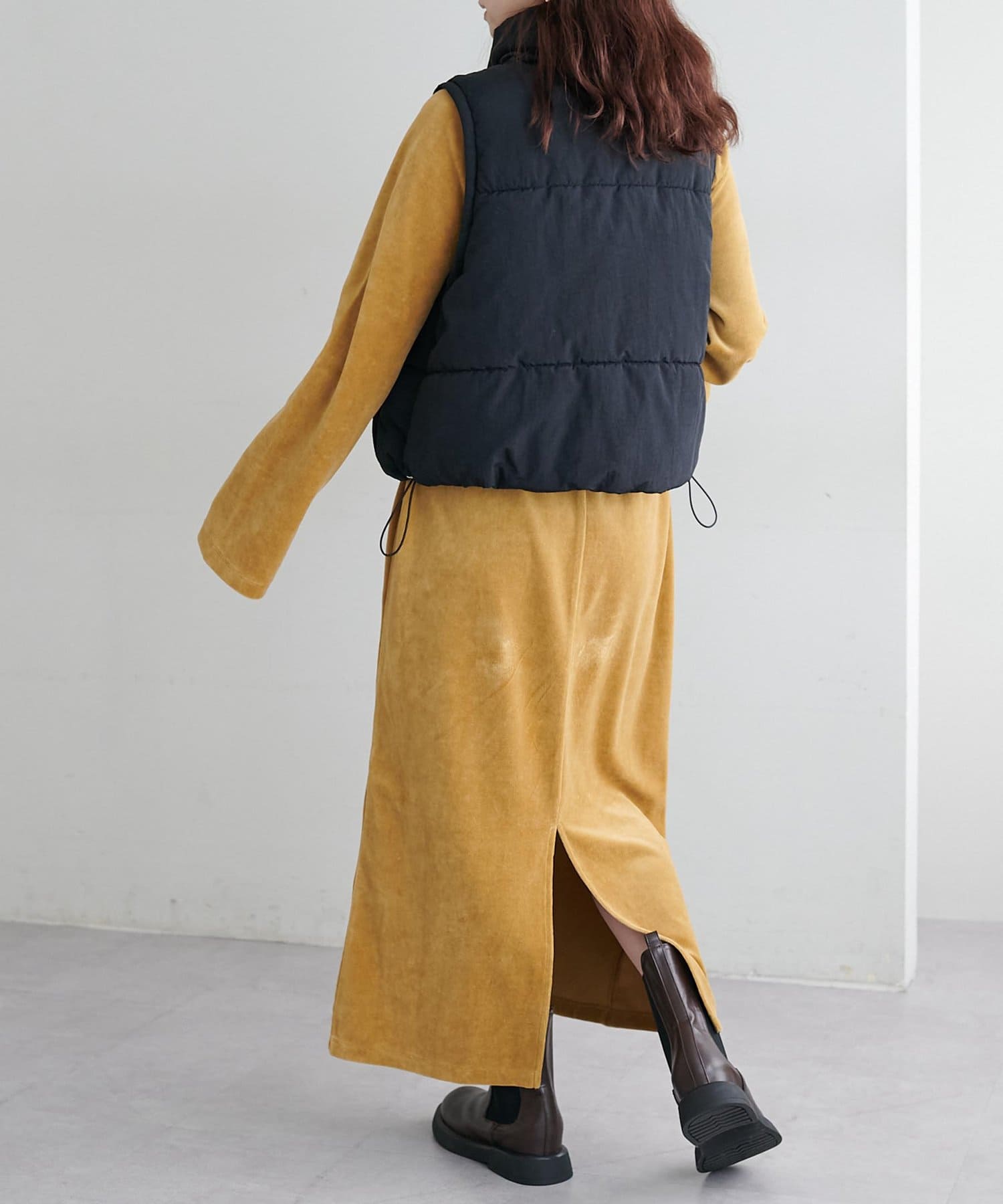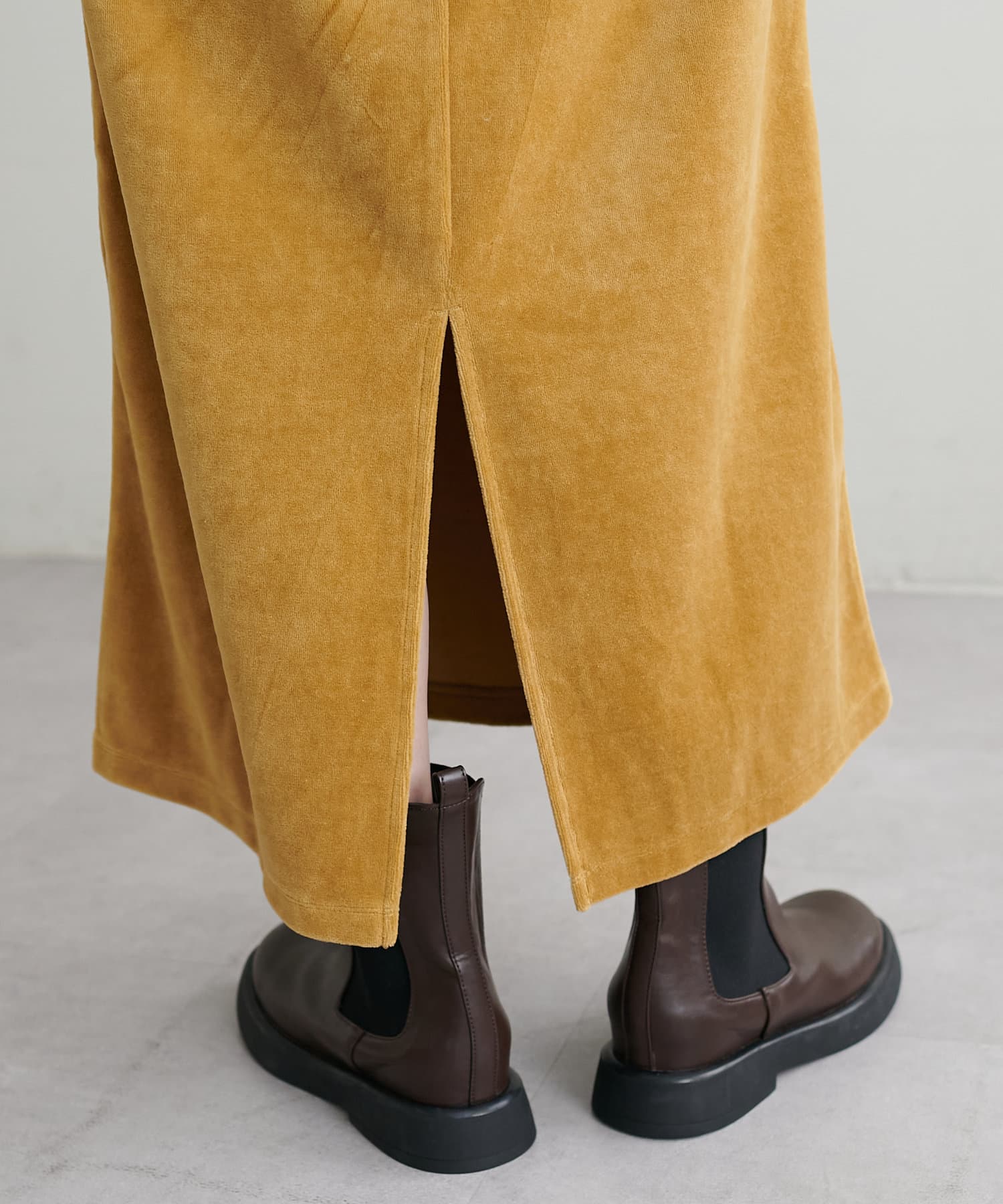 ベロアの程よい光沢が高級感を演出し、体のラインにやさしく沿ってスッキリとした印象を与えてくれるベロアワンピース。ウエストをきゅっと絞れるスピンドル仕様なので、絞り具合でシルエットの変化を楽しめます♪深めのスリットが入っているので足捌きもしやすく、裏地付きで着心地のよいアイテムとなっております。