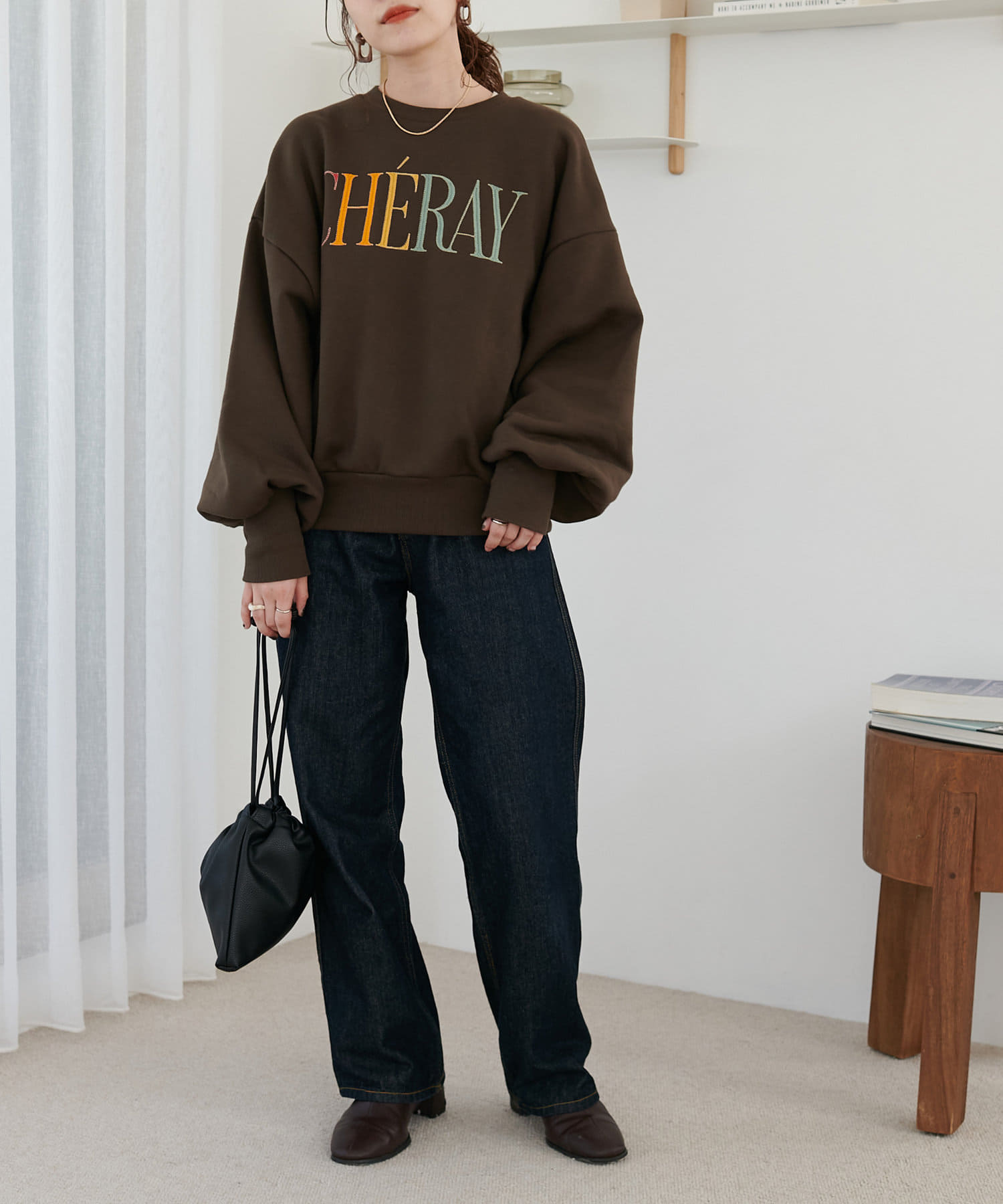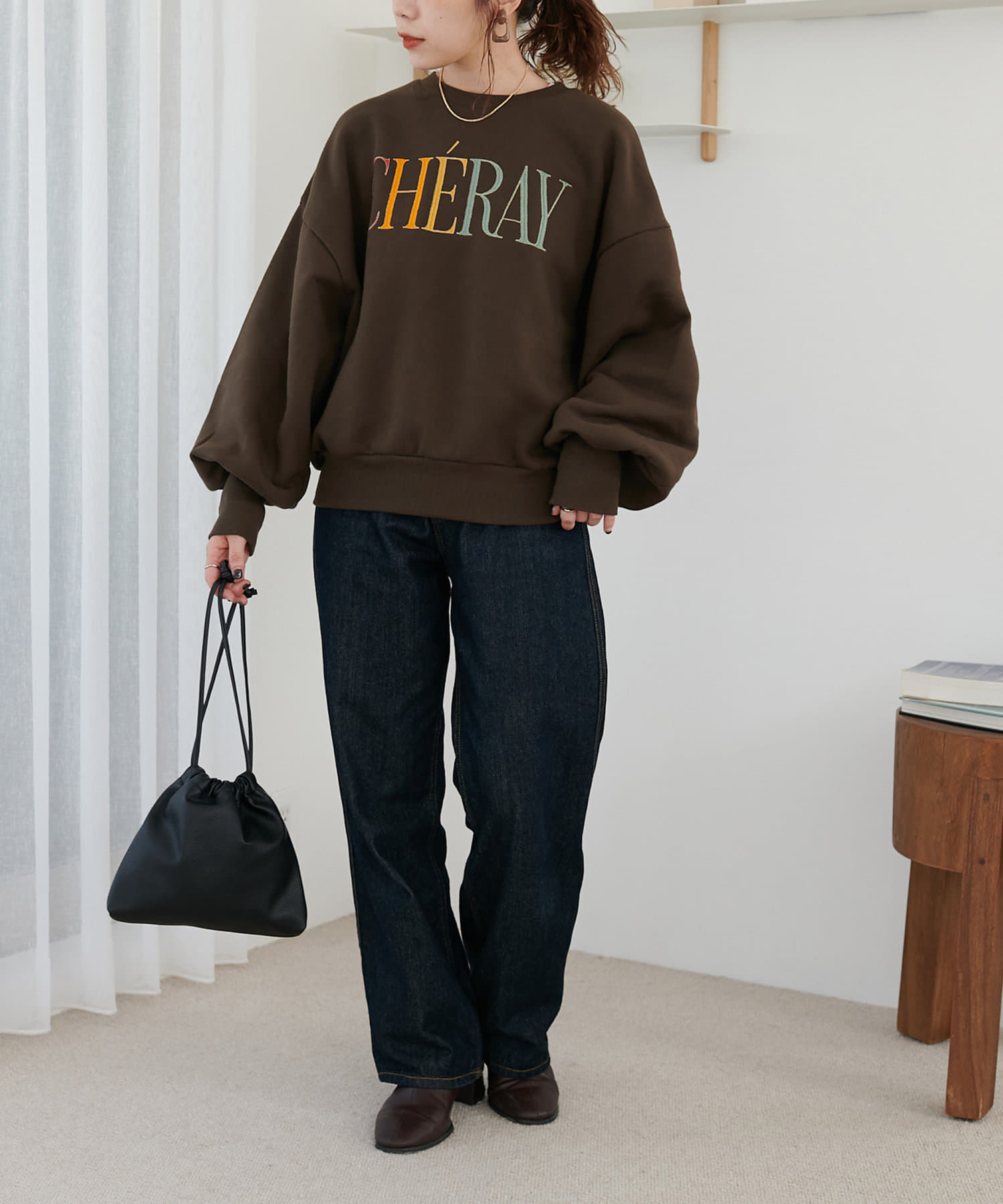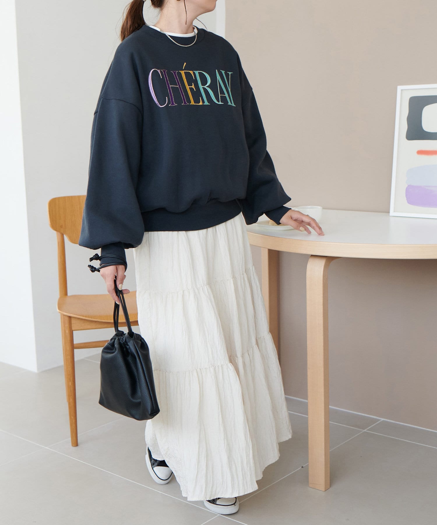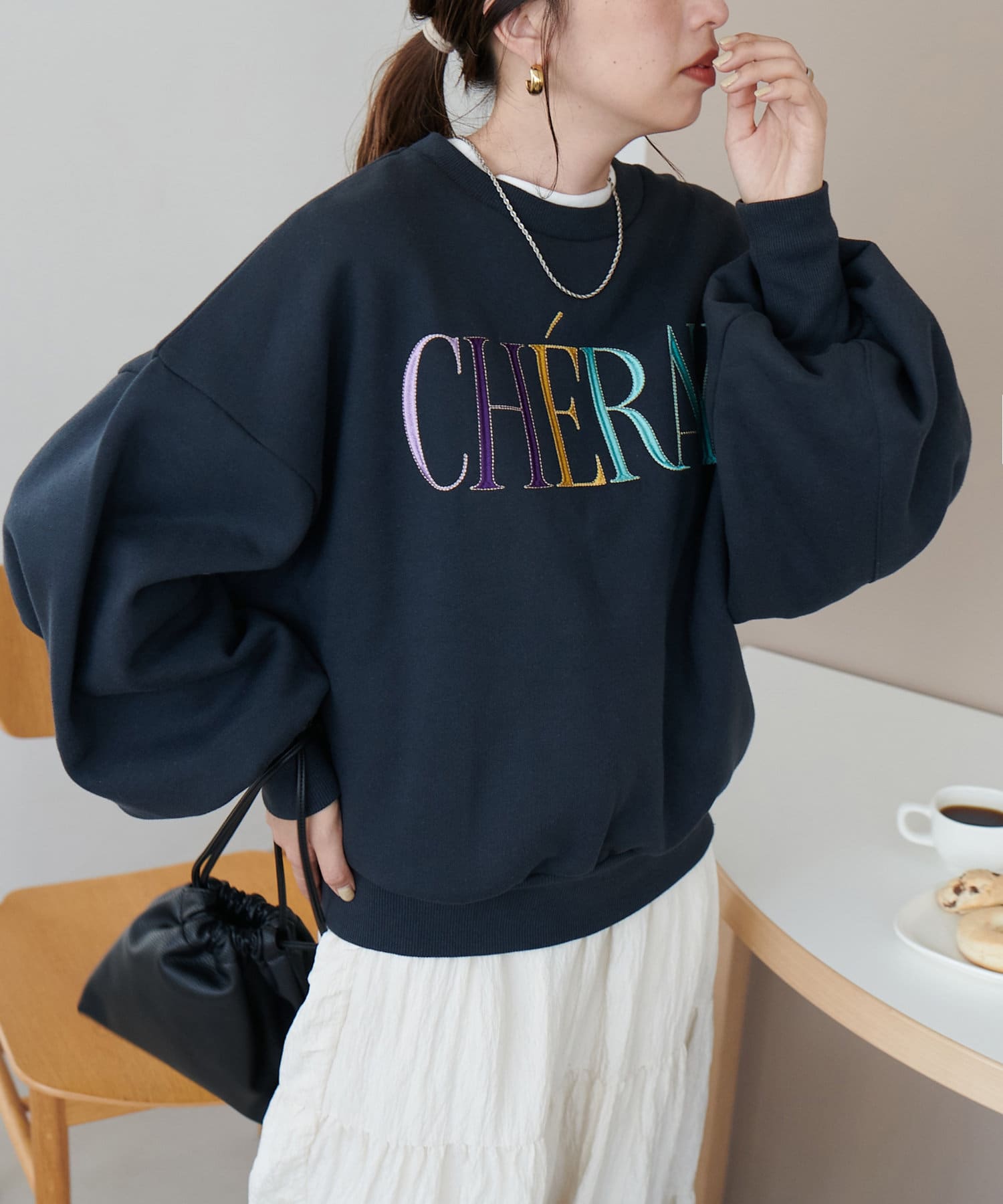 【Discoat】グラデロゴ刺繍ショートスウェット