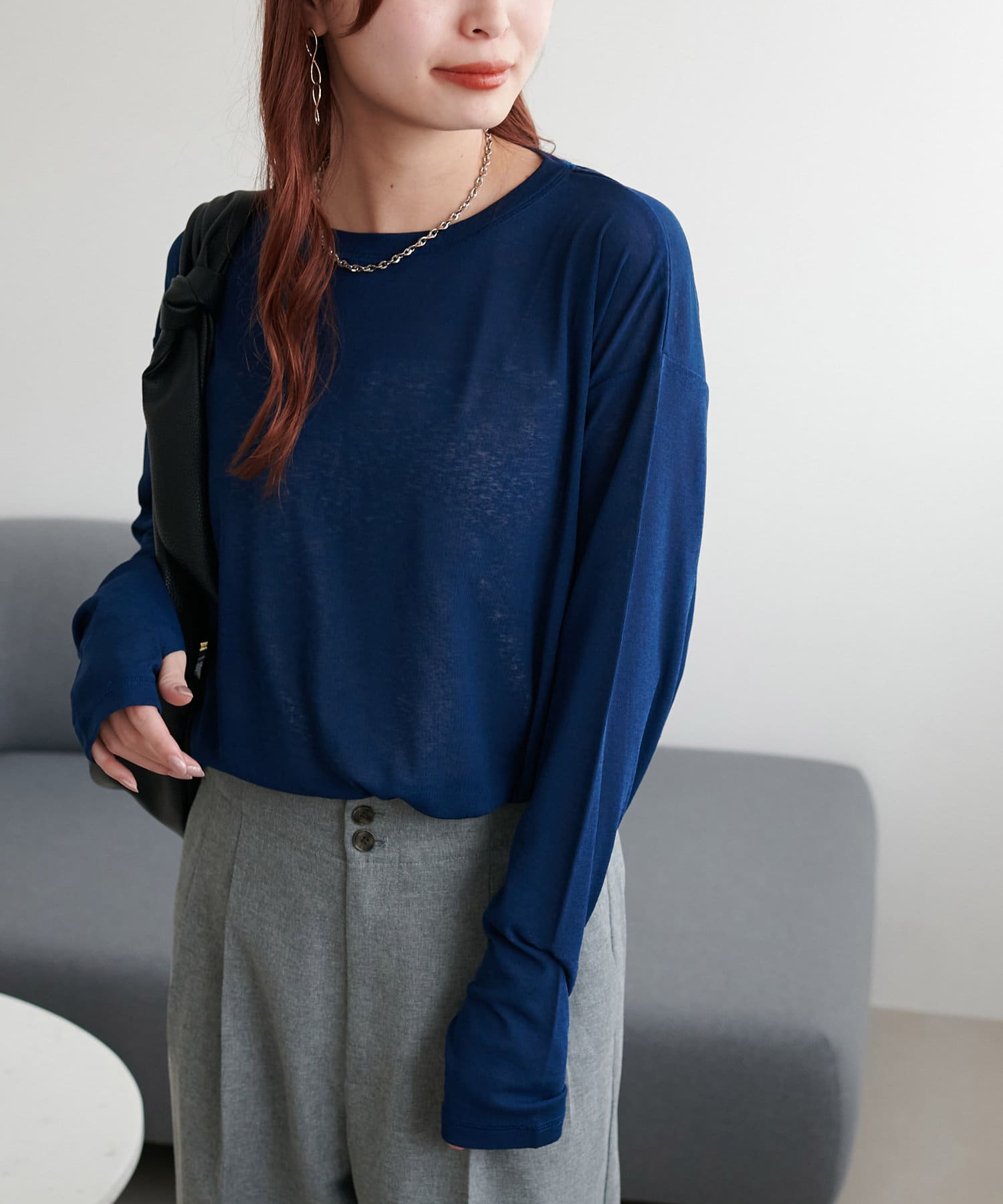 抜け感とこなれ感を演出する、シアー素材のロングスリーブTシャツ