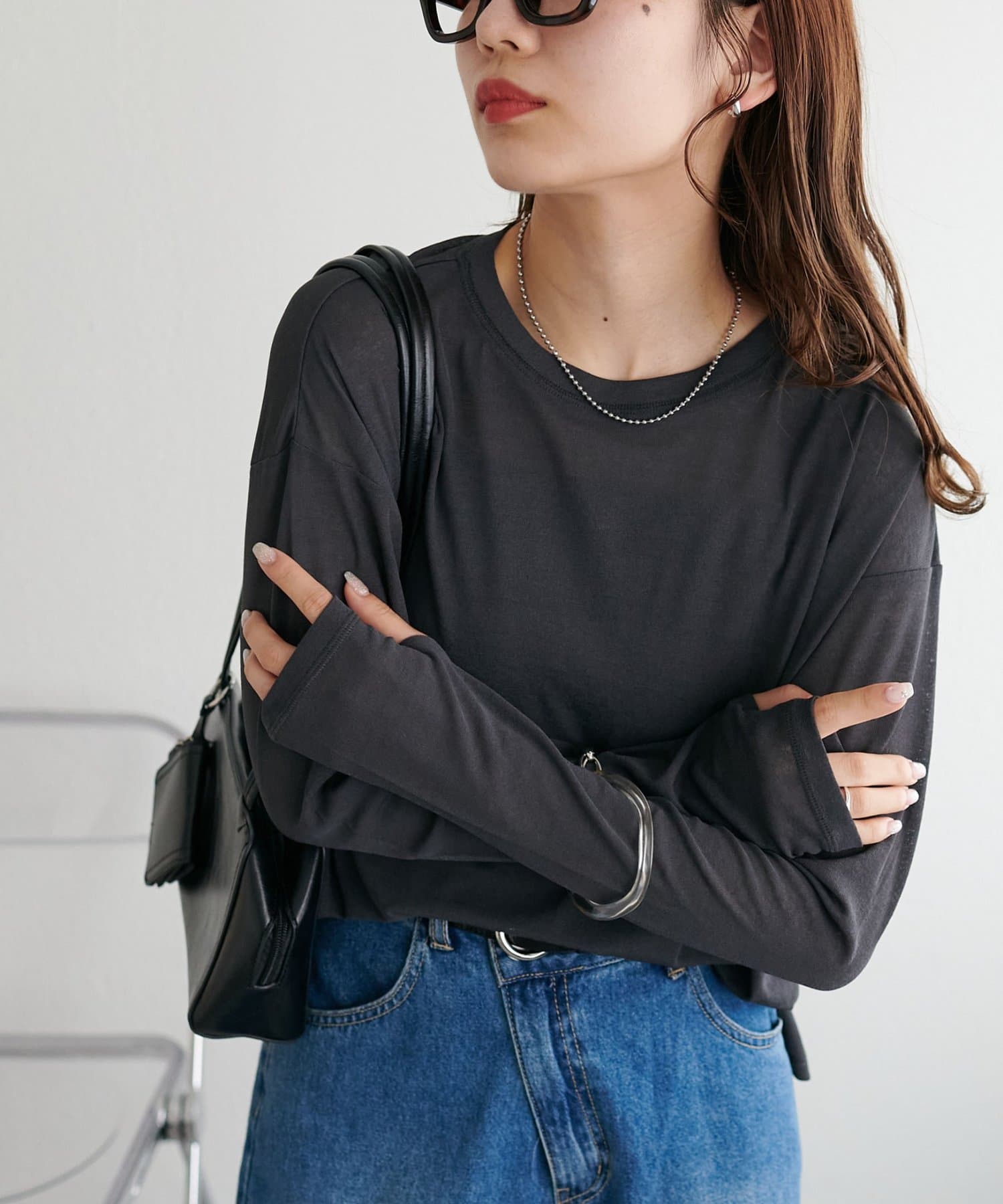 サムホールのデザインはさりげないアクセントになり、手首を華奢に見せてくれる効果も◎