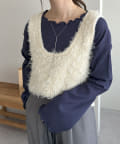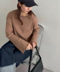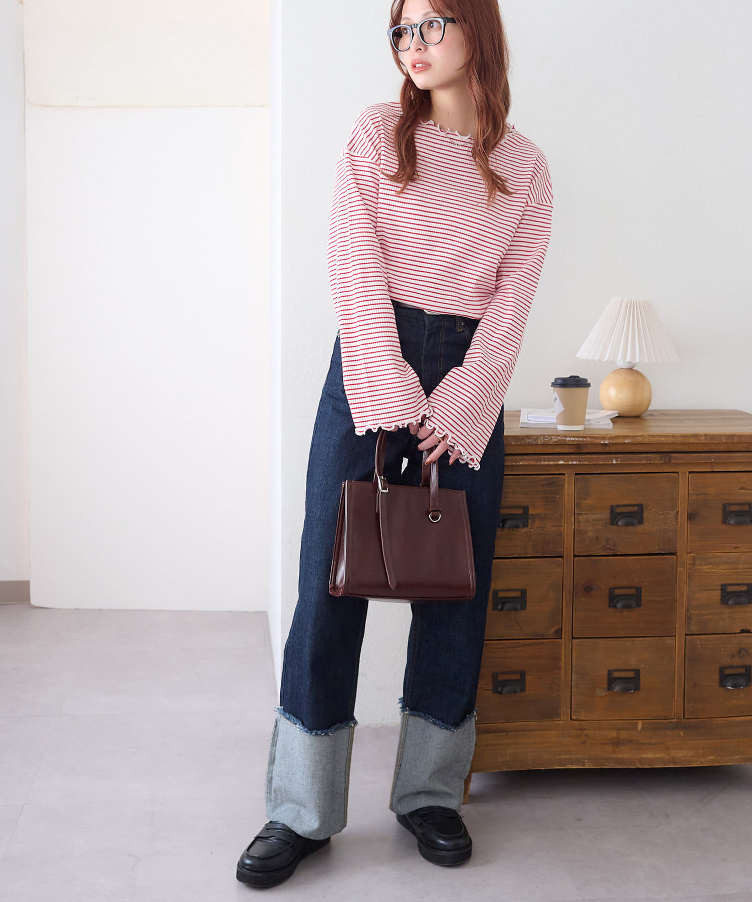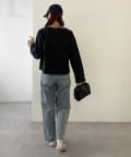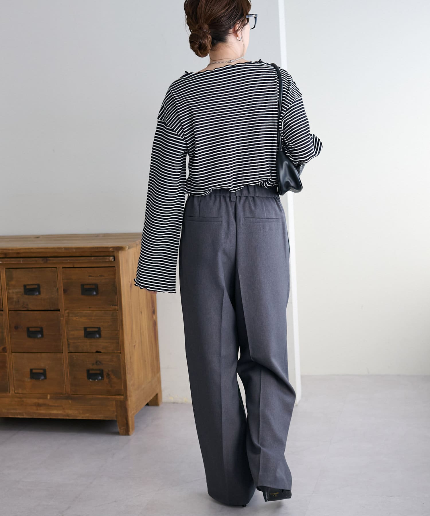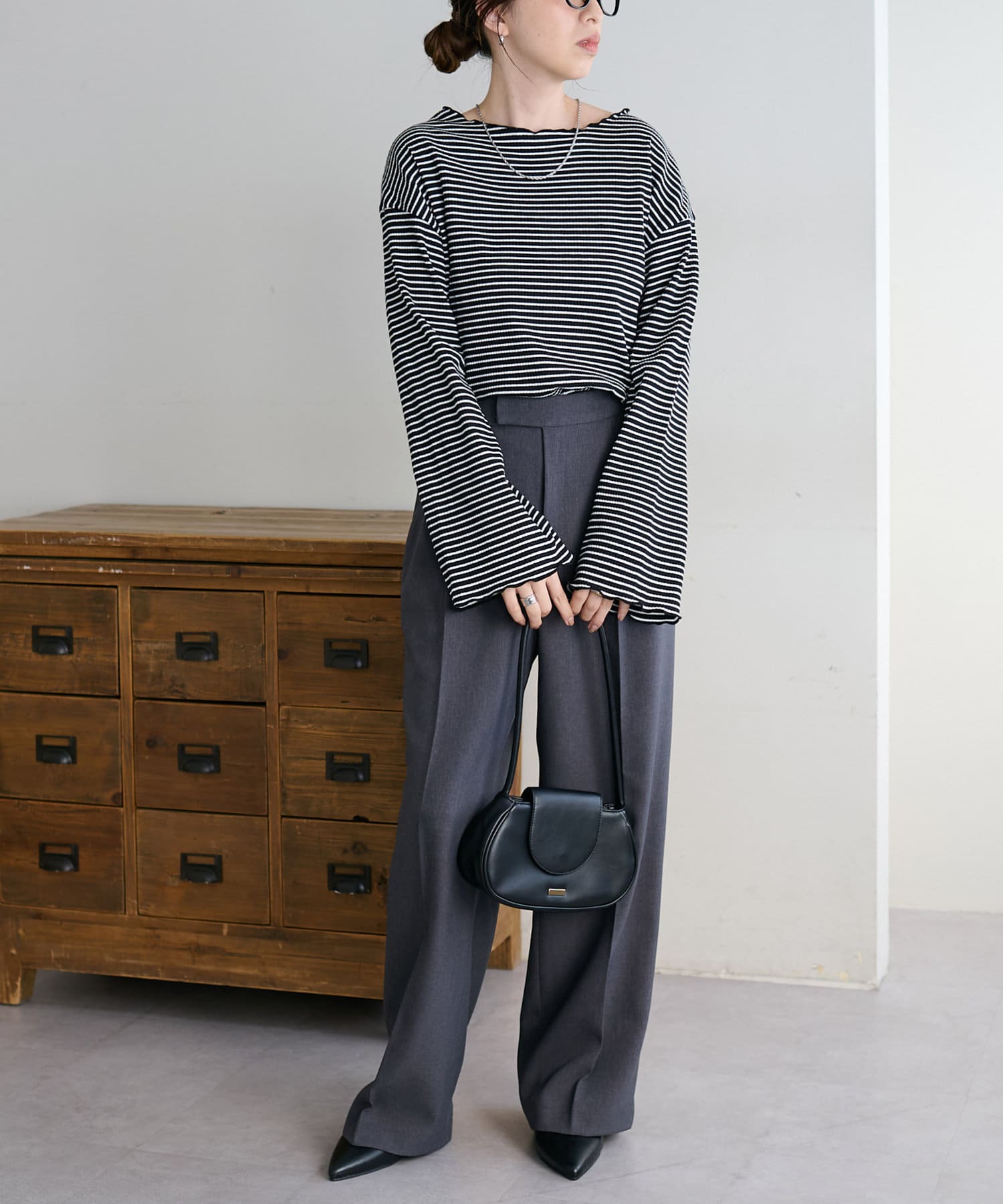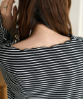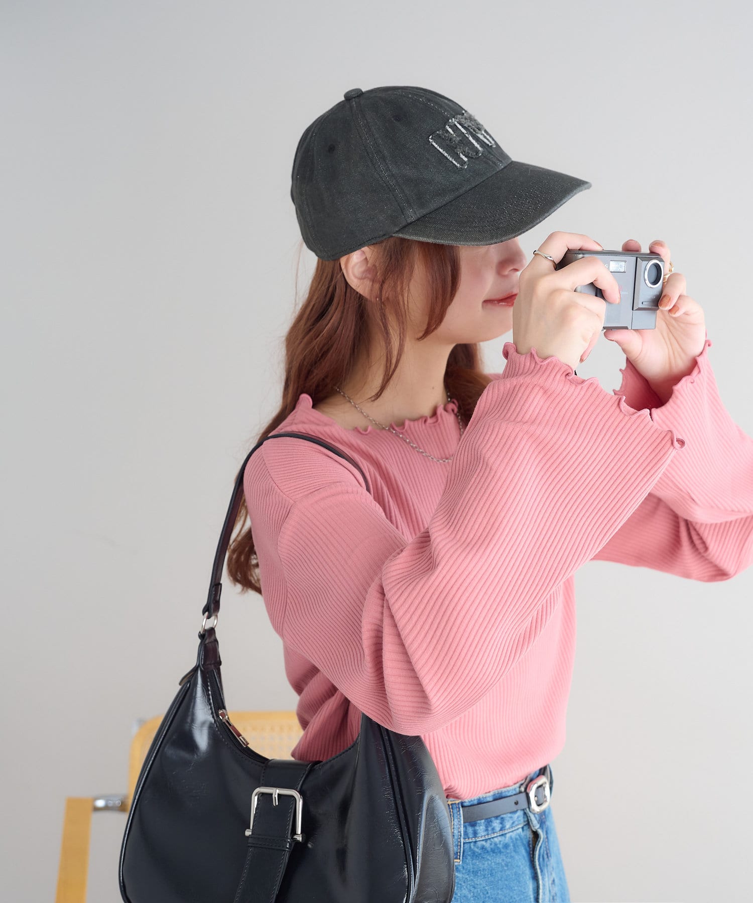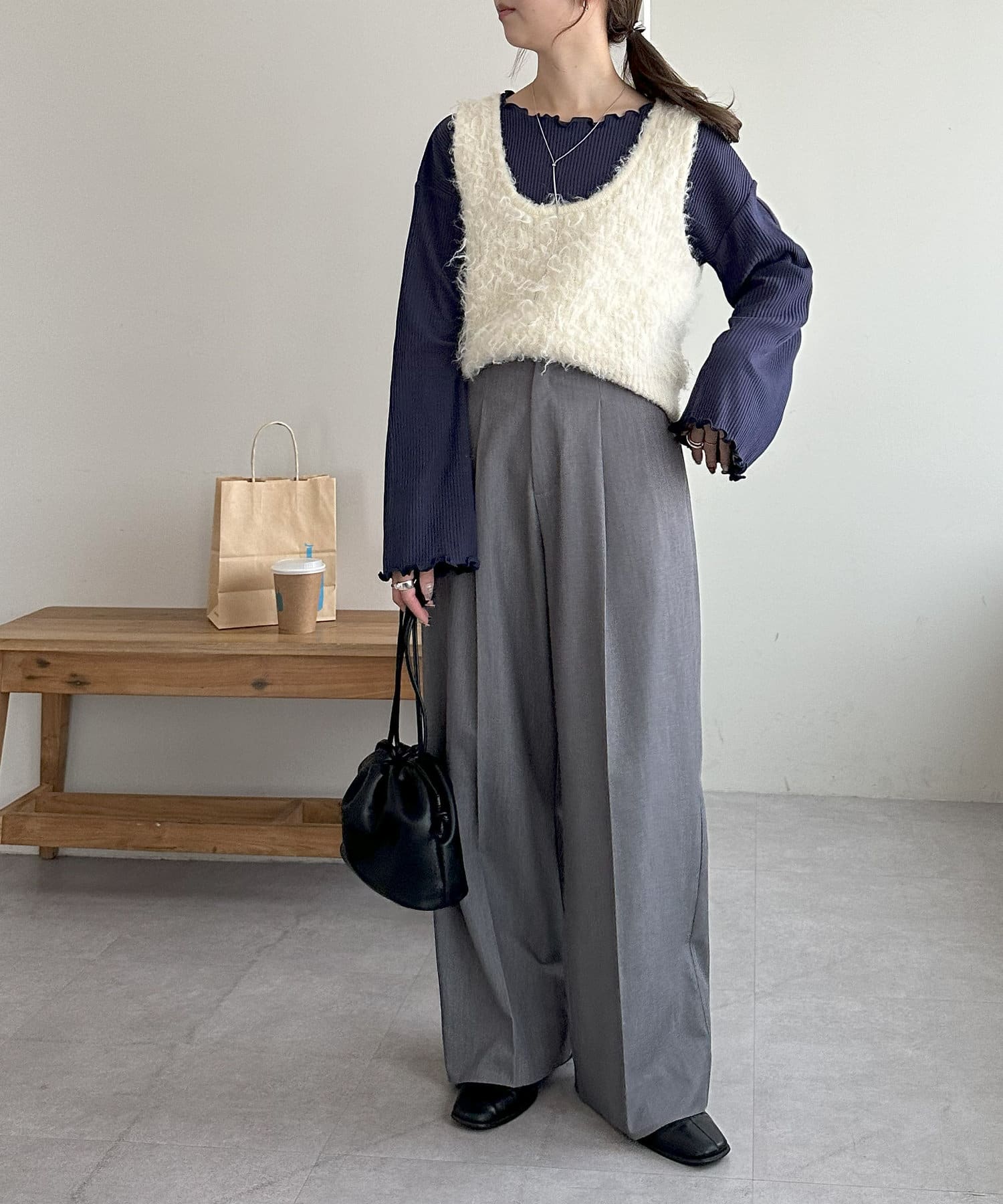 袖口、裾口、首元のメローデザインがポイントのリブトップス。