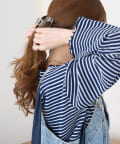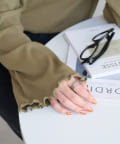 155cmスタッフ(Mサイズ着用):袖のフレアデザインが手首をすっきり見せてくれて、さりげなく華やかな印象になりました!