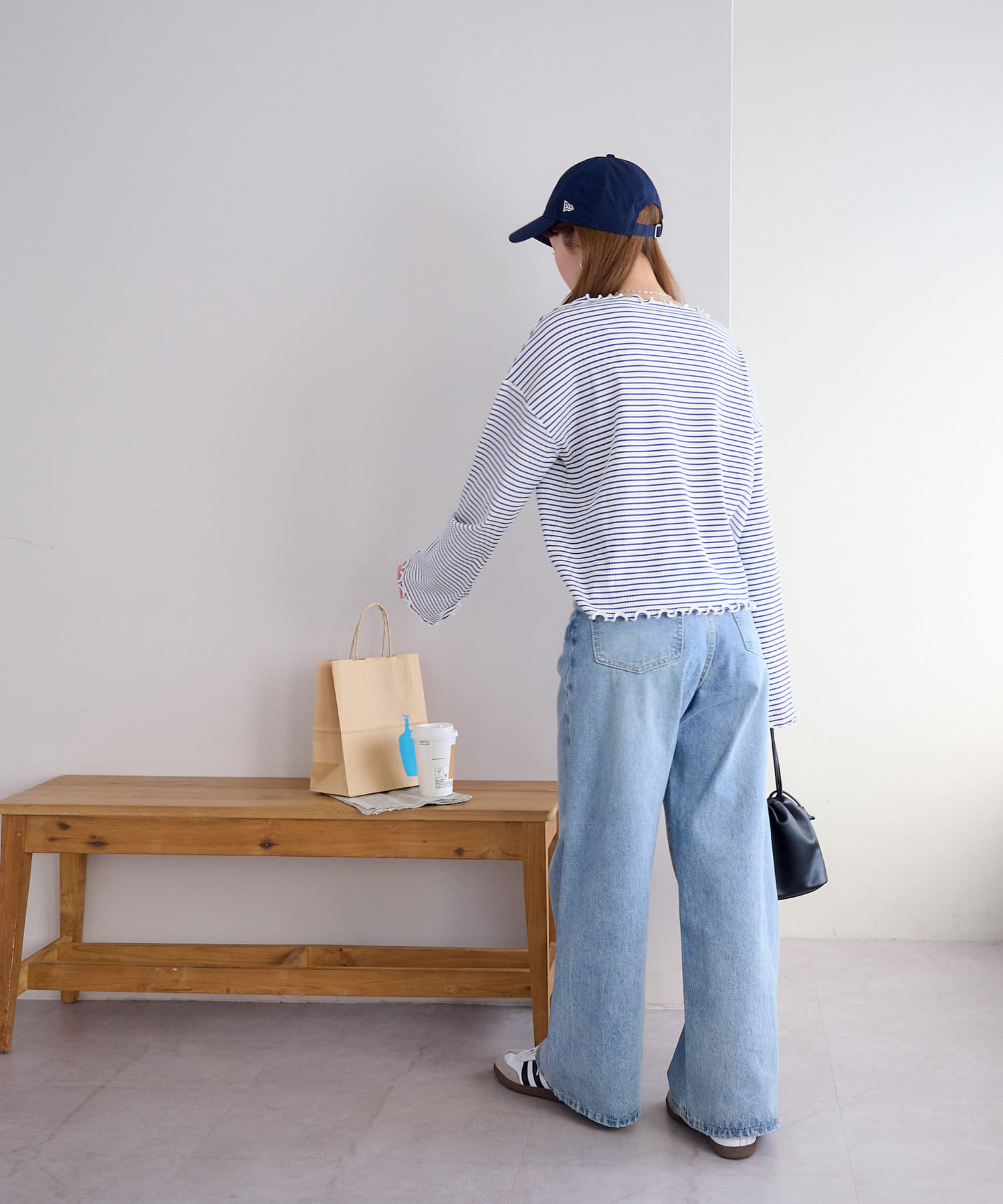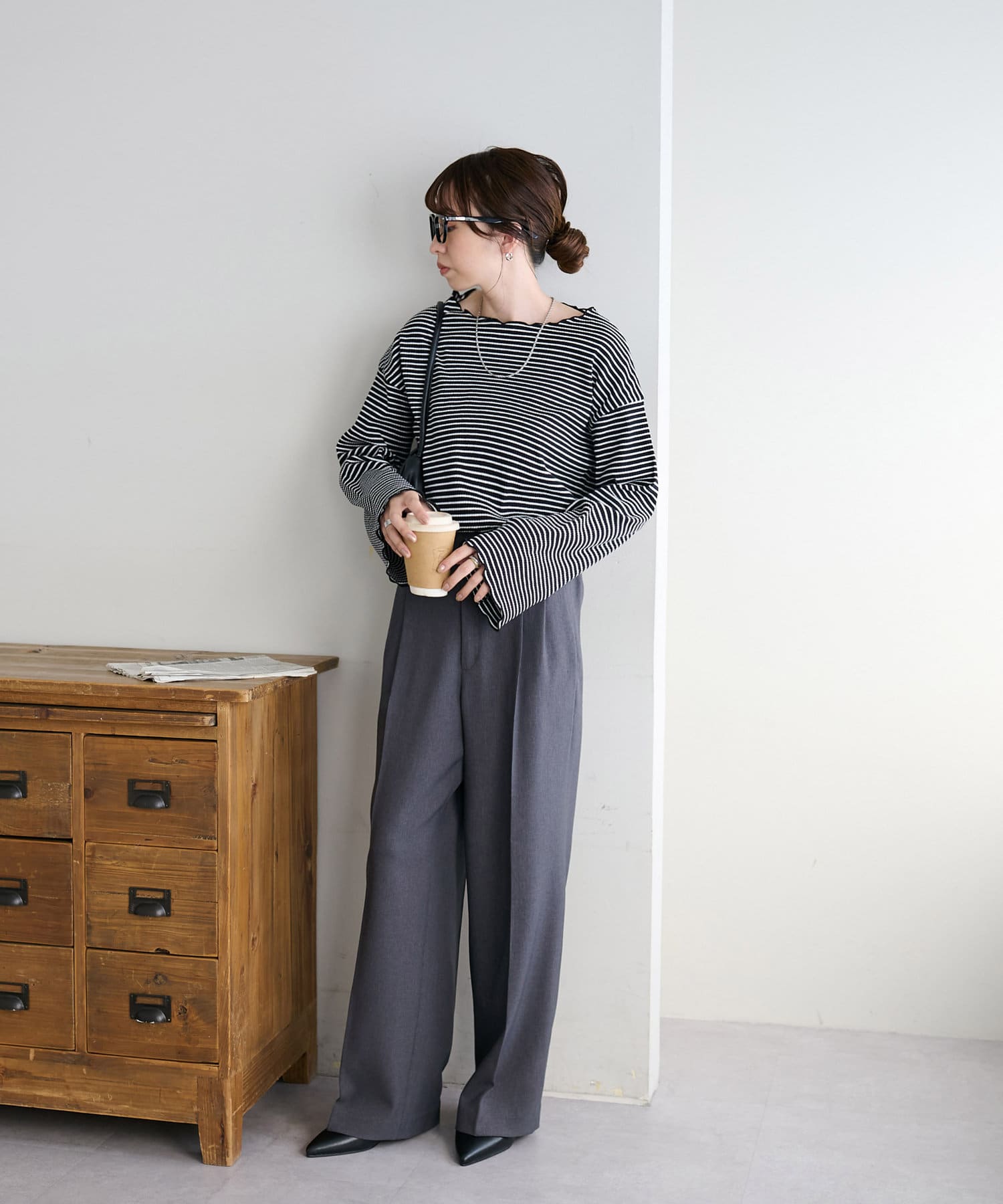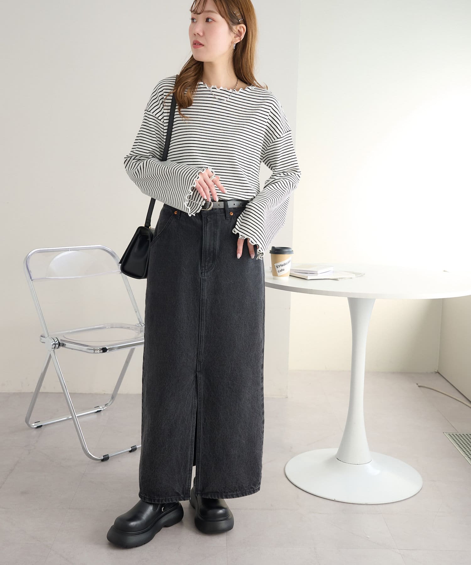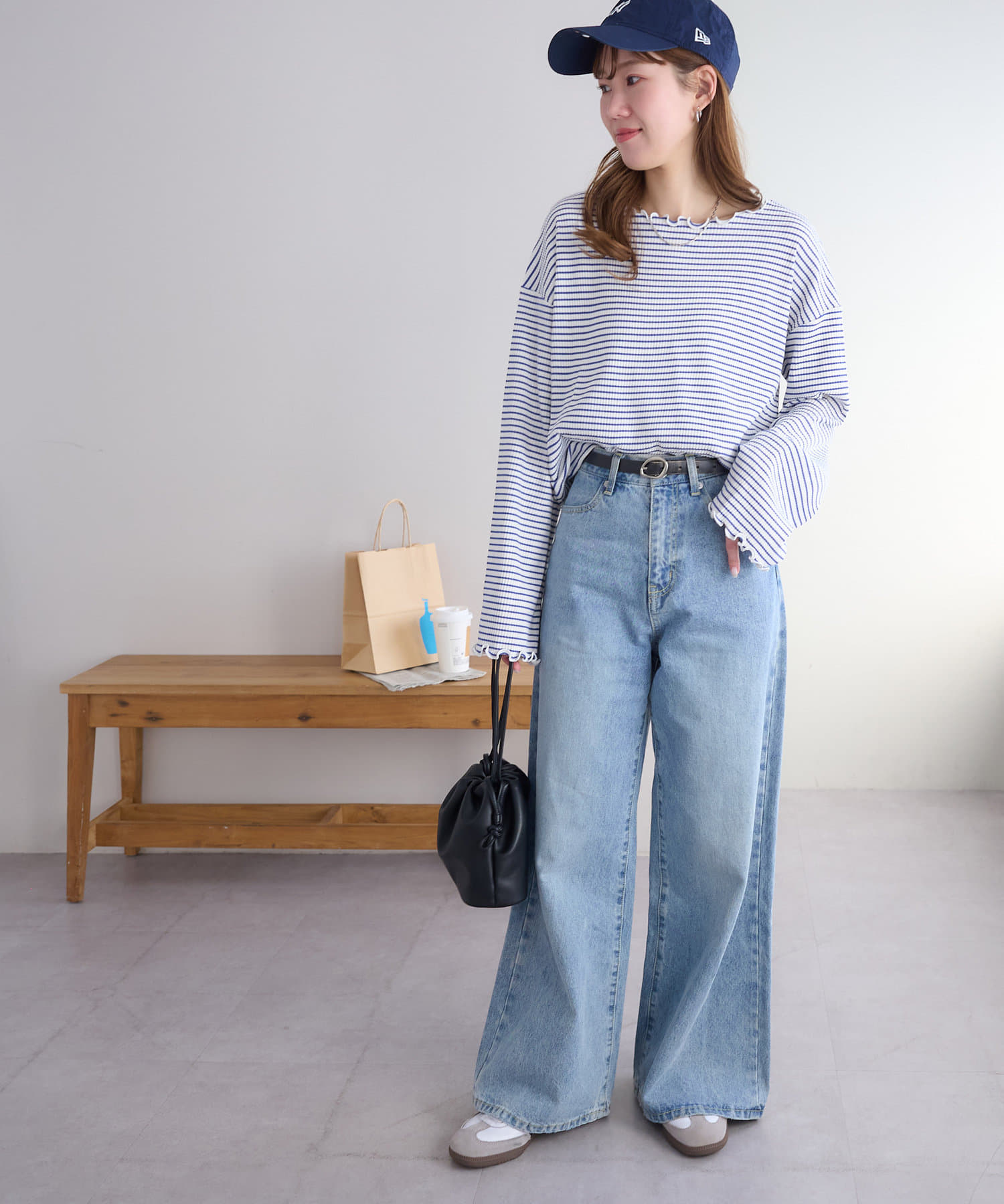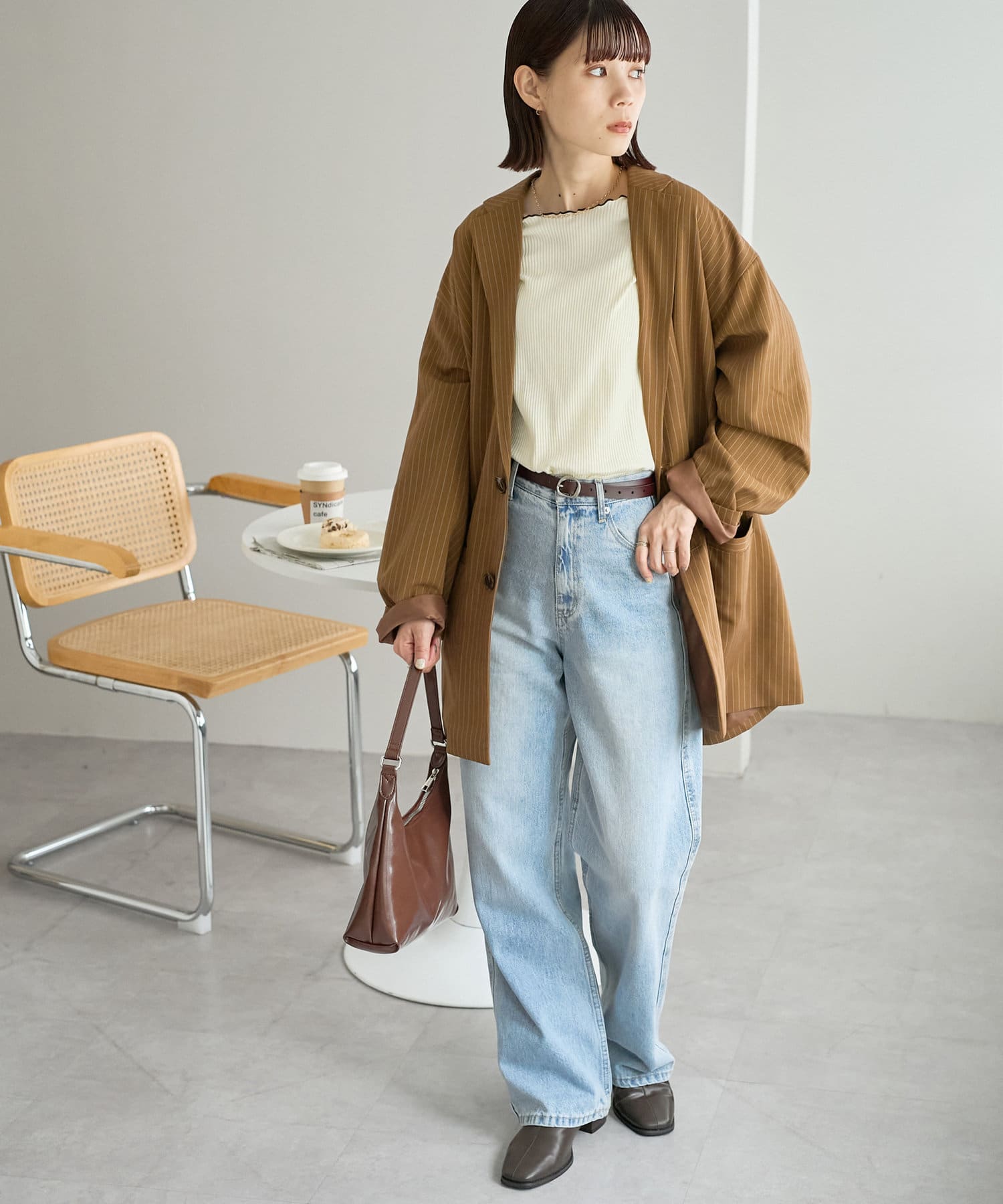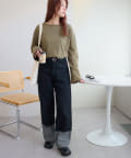 デニムやチノパンと合わせてカジュアルに。フレアスカートと合わせて、キレイめカジュアルコーデも◎