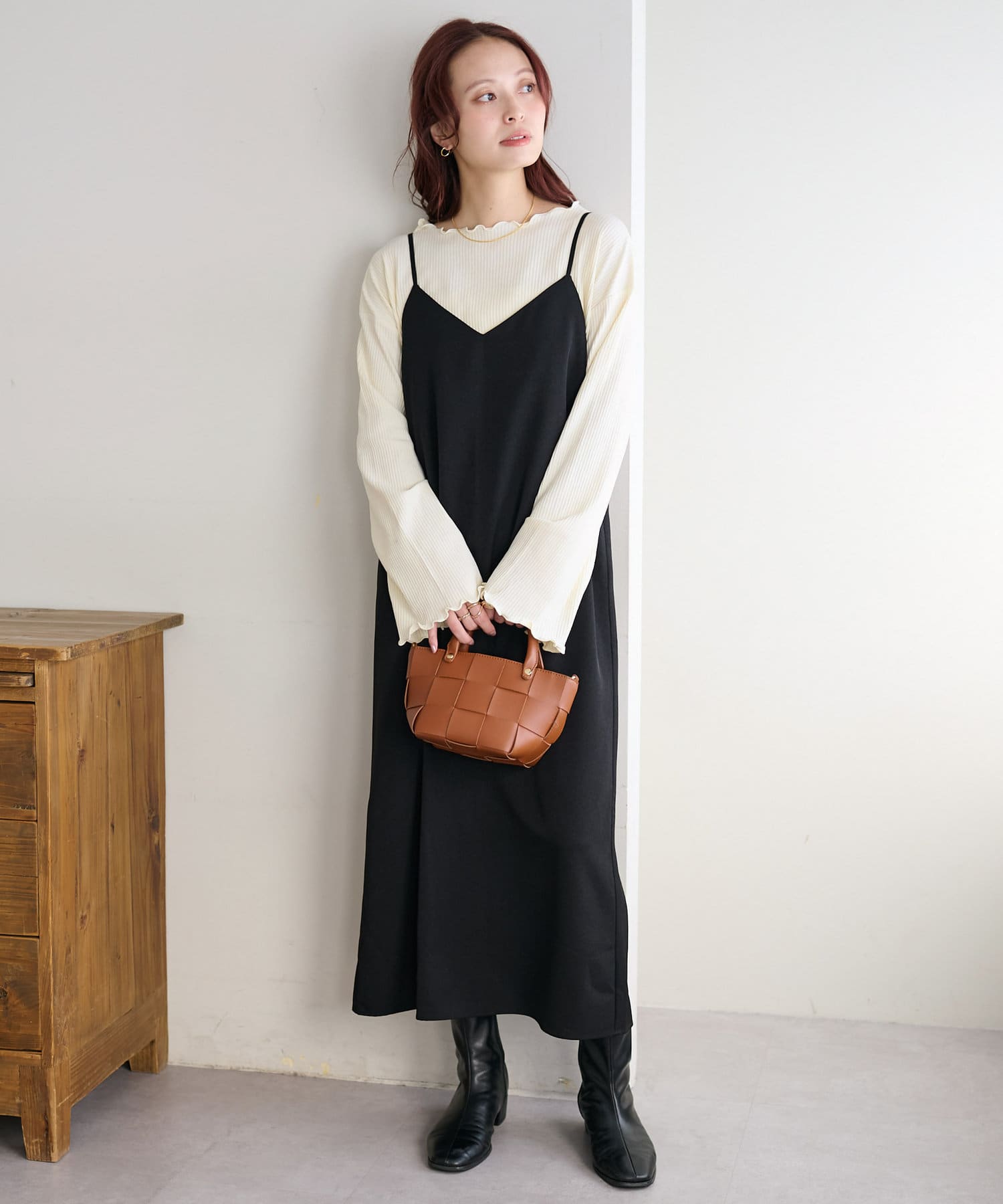 160cmスタッフ(Mサイズ着用):レイヤードスタイルにも使いやすい厚みで、ジャンスカやキャミワンピのインナーとしても活躍します。