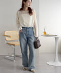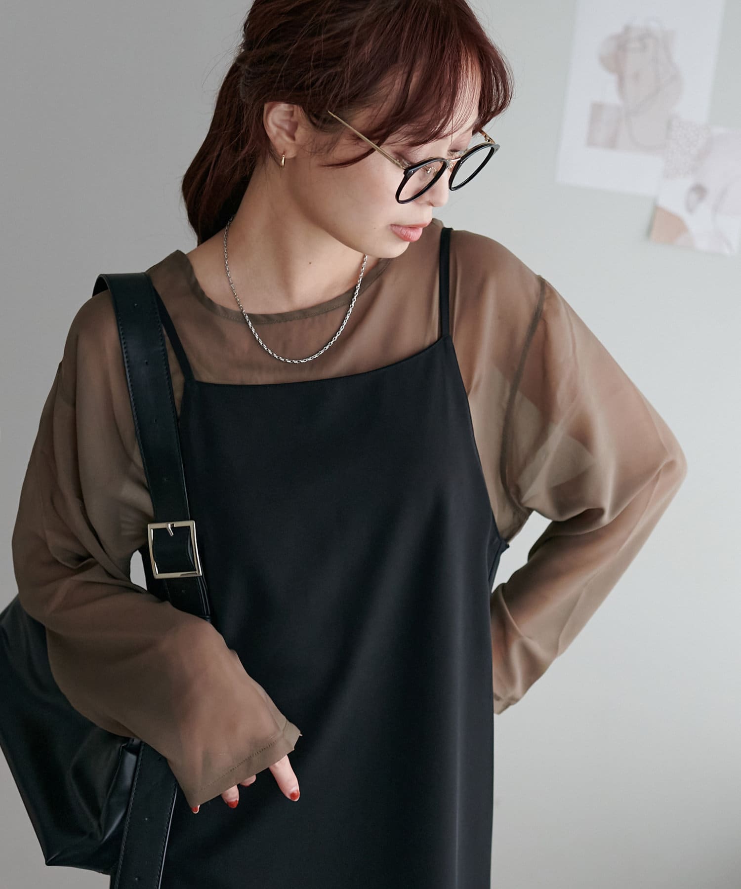 ゆとりのあるサイズ感なのでキャミ合わせはもちろんですが、インナーにTシャツも合わせて楽しめます。