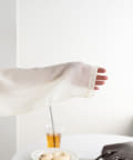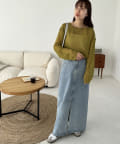 ヒップラインまでかかる丈感ですが、裾にスリットが施されていることで抜け感もプラス〇