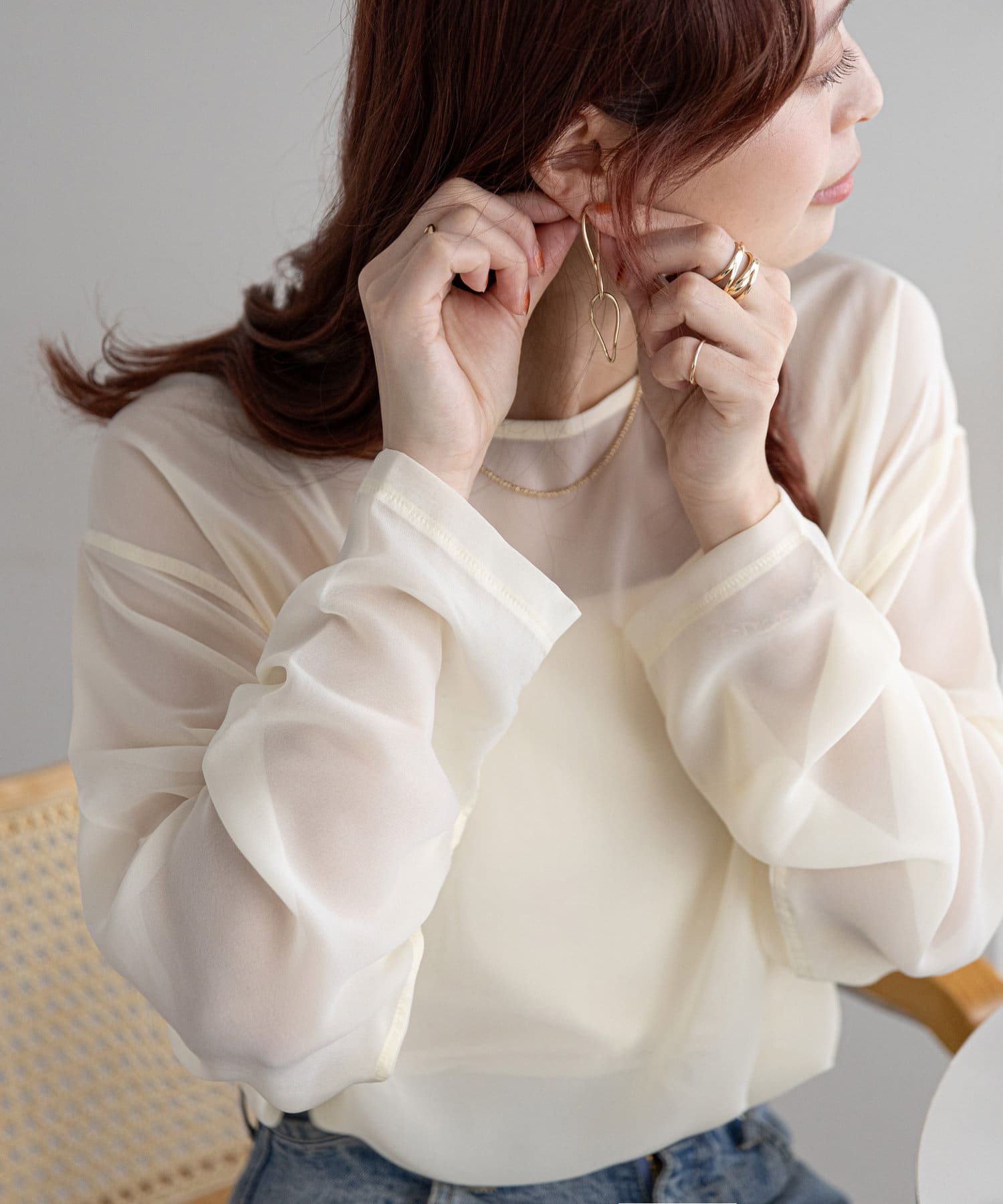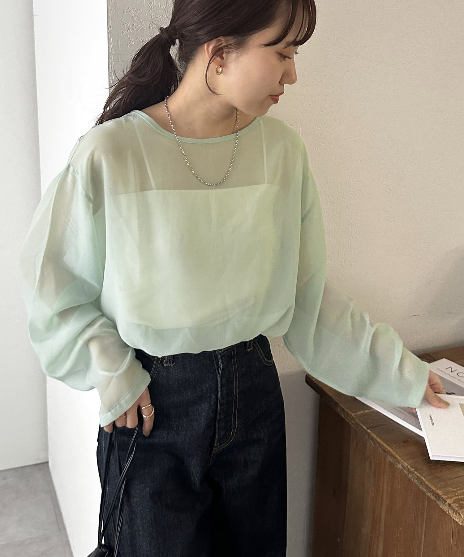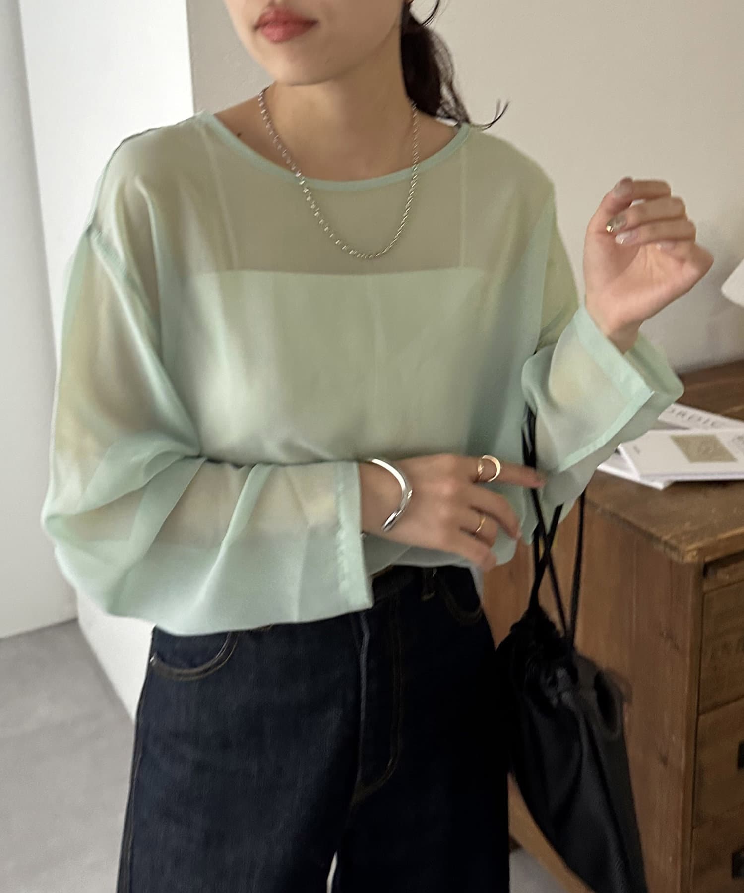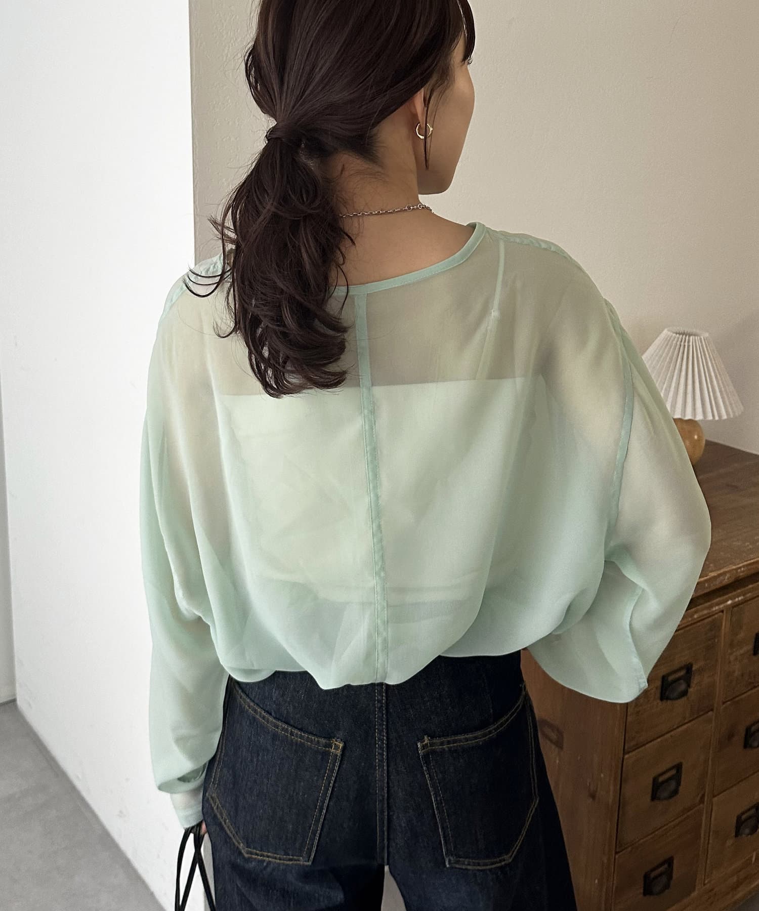 長袖でシアーのデザインが涼し気な雰囲気なので、ロングシーズン着て頂けます。