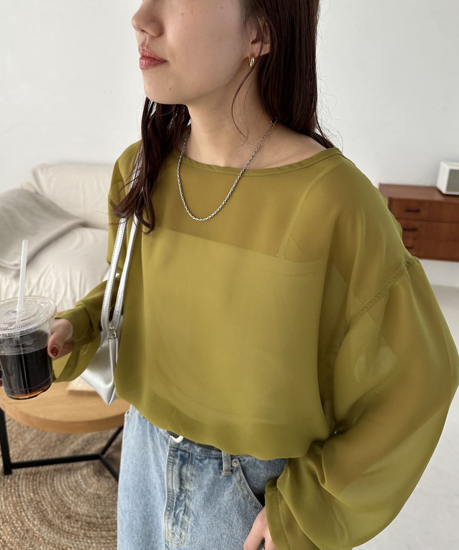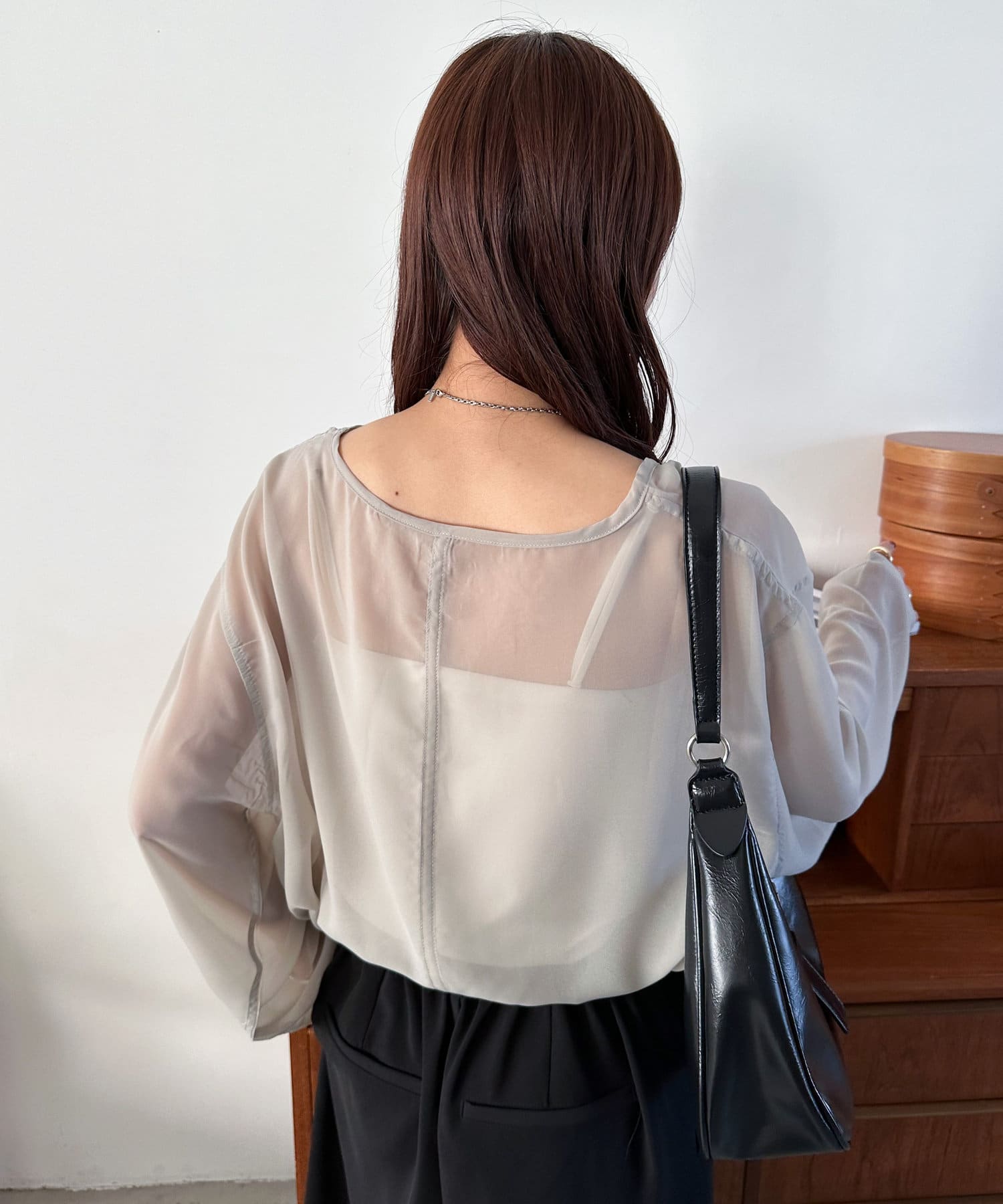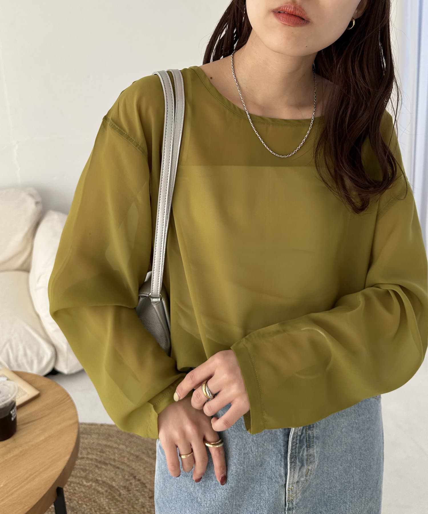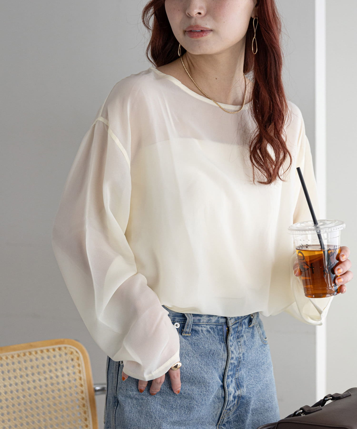 長袖でシアーのデザインが涼し気な雰囲気なので、ロングシーズン着て頂けます。