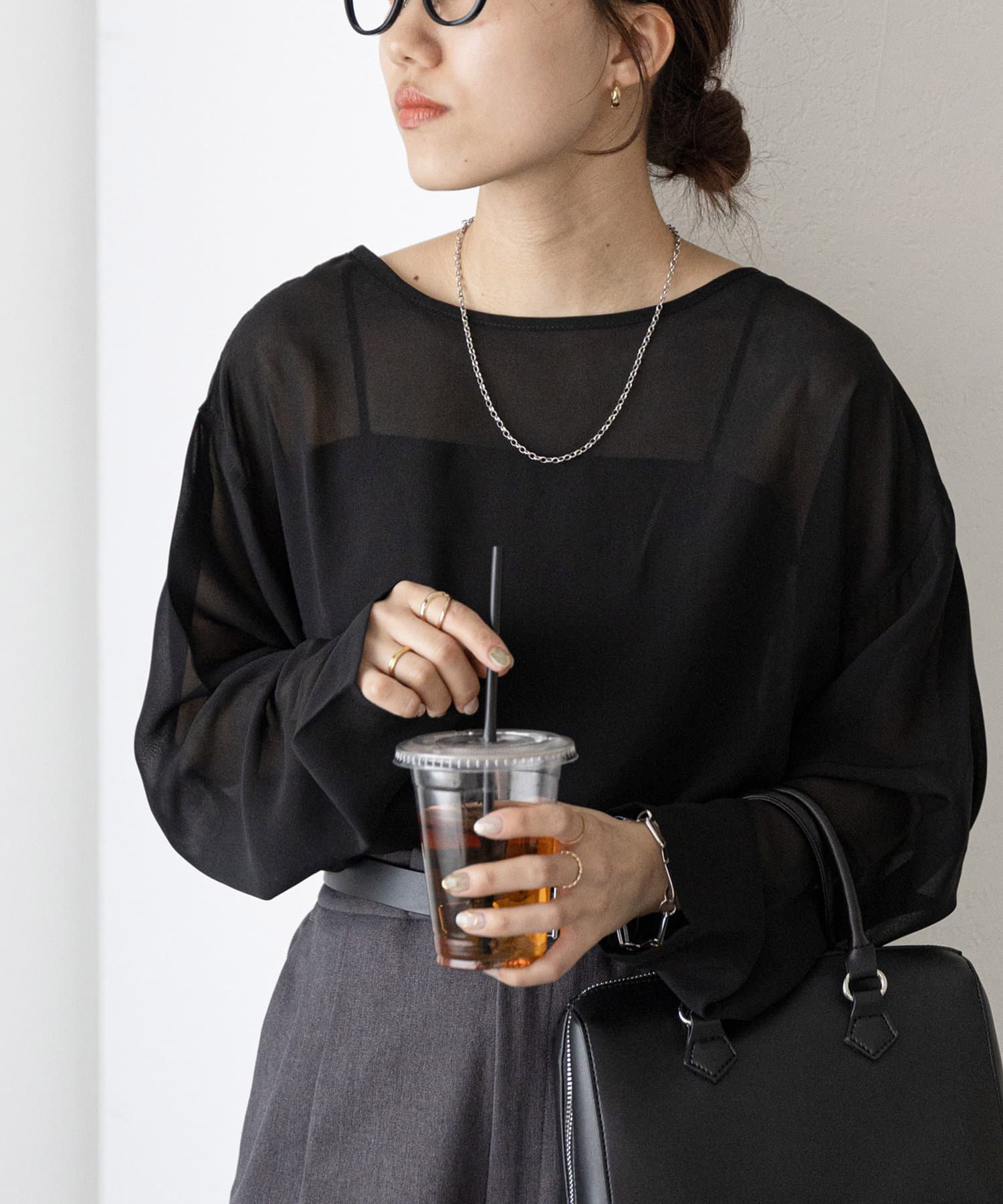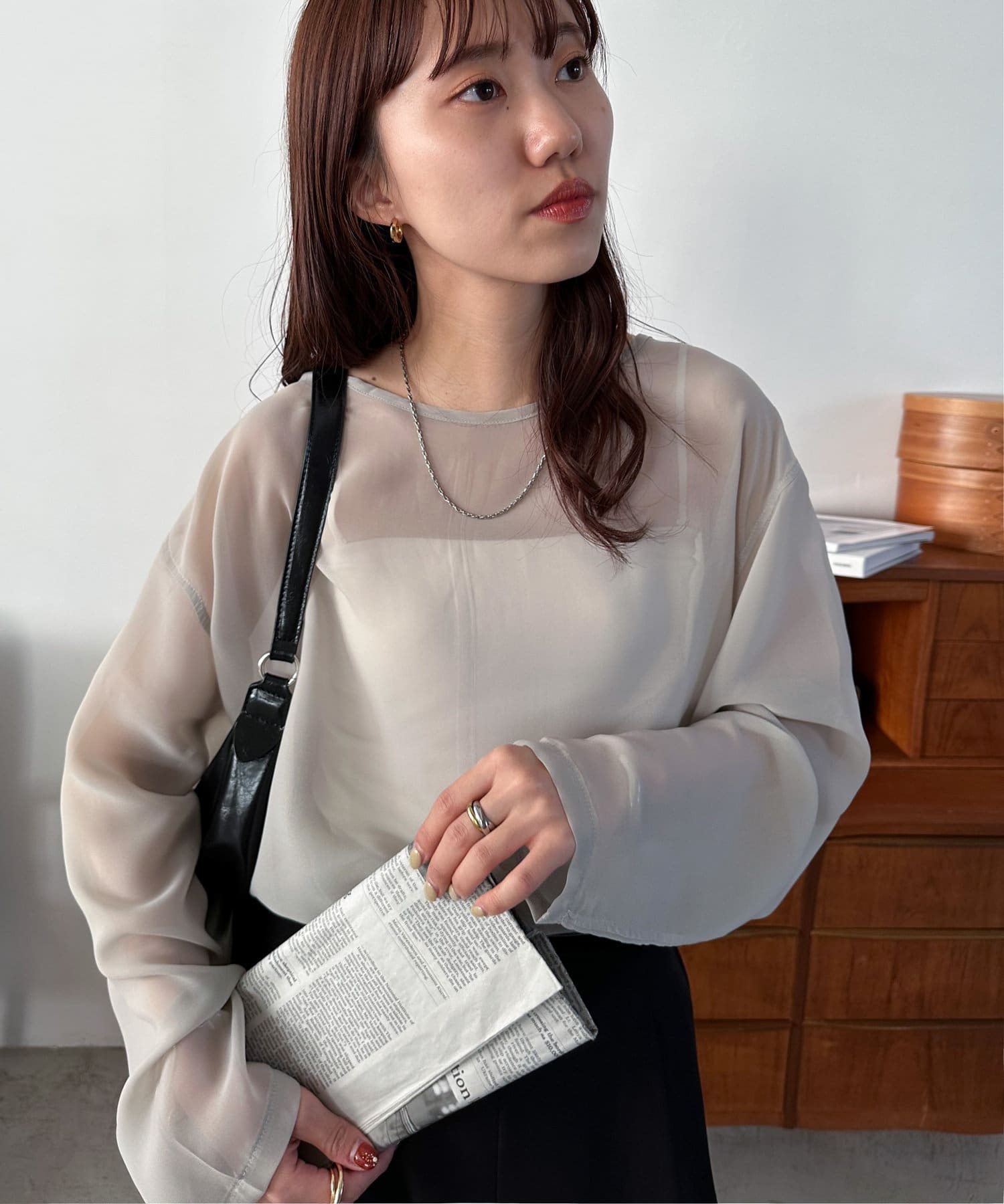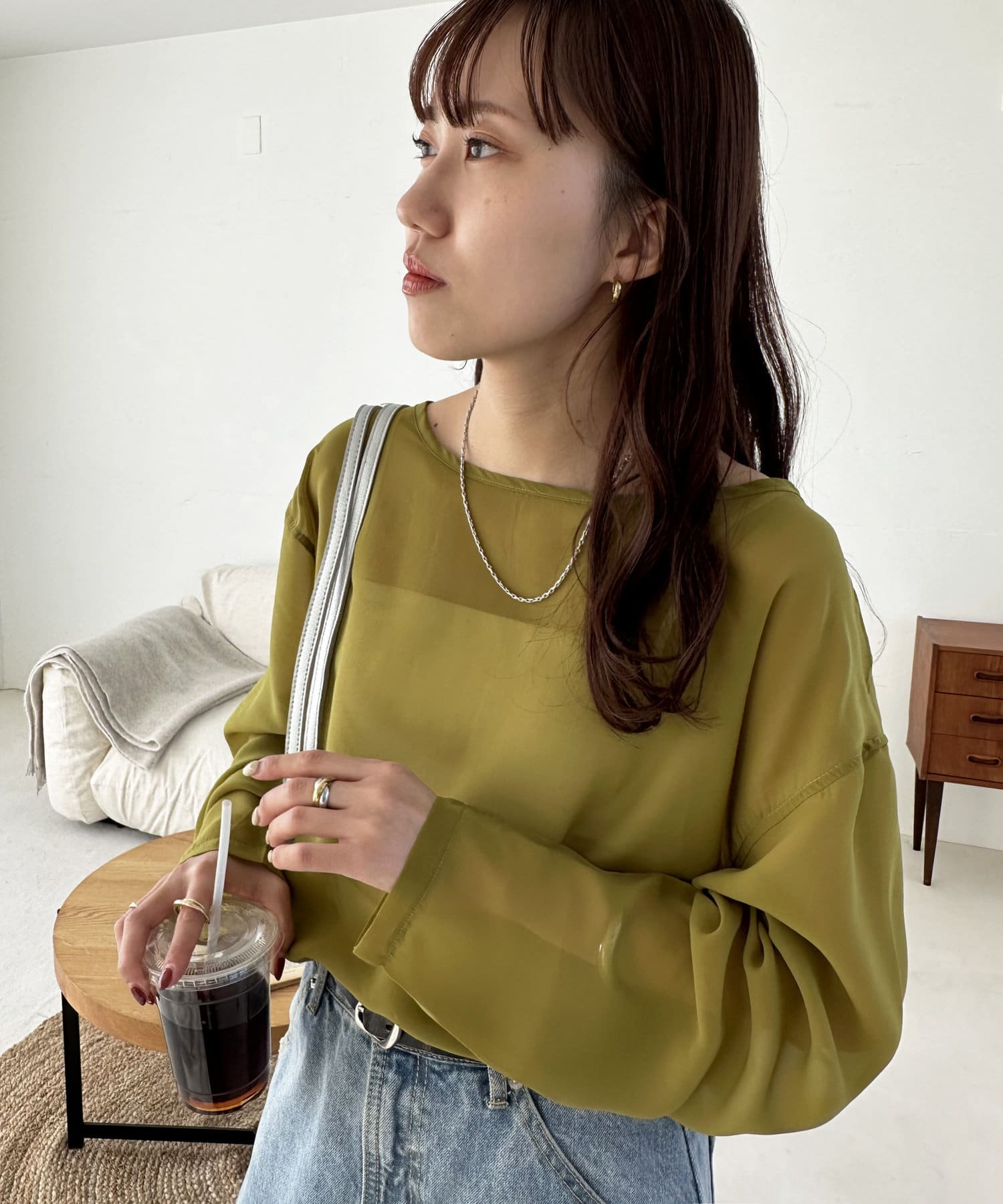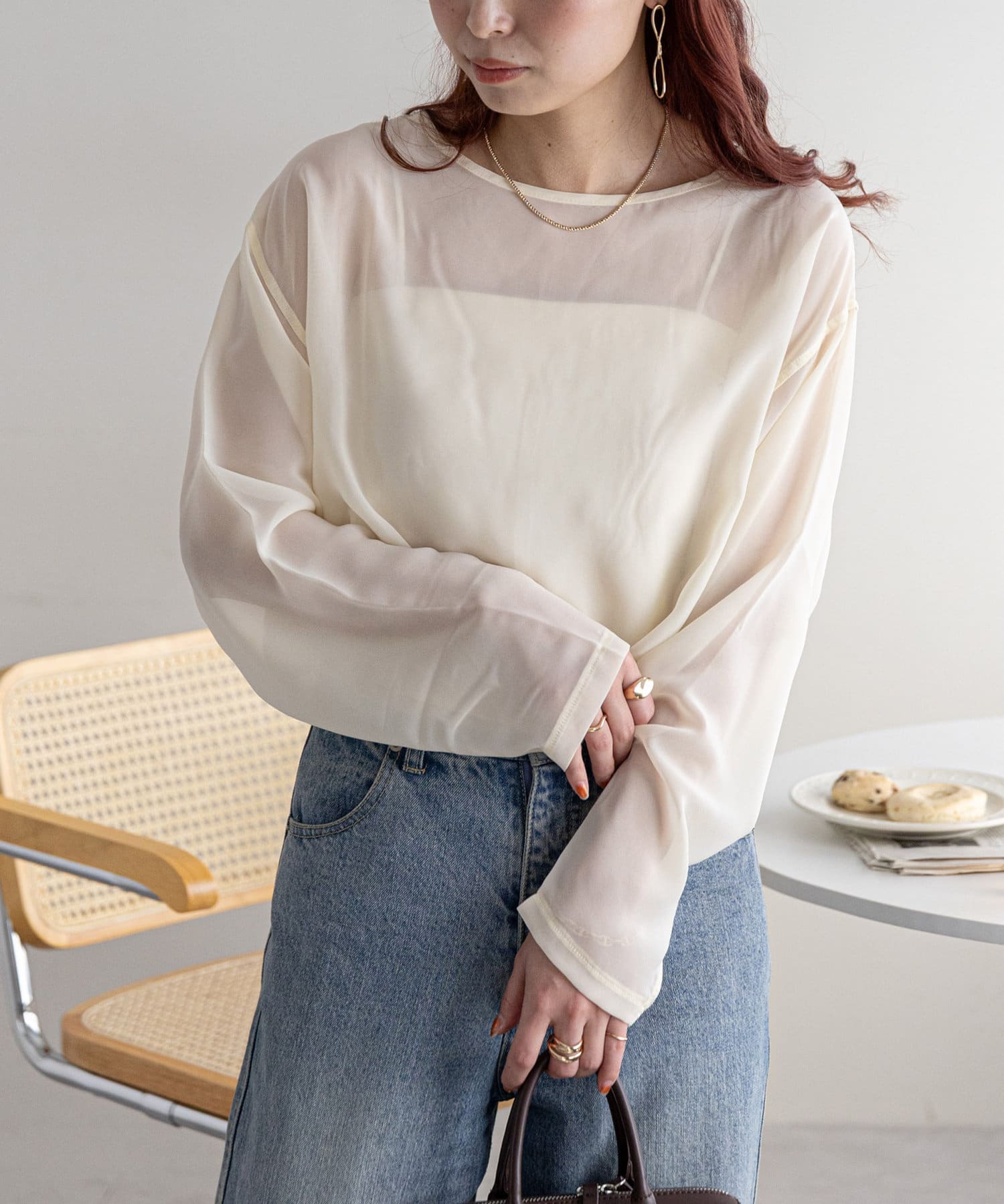 長袖でシアーのデザインが涼し気な雰囲気なので、ロングシーズン着て頂けます。