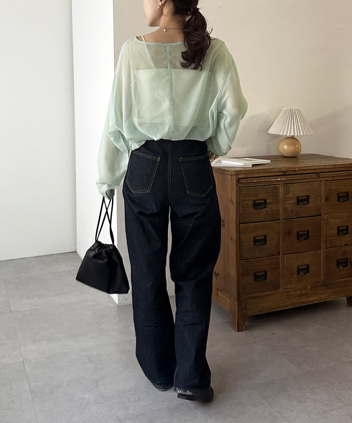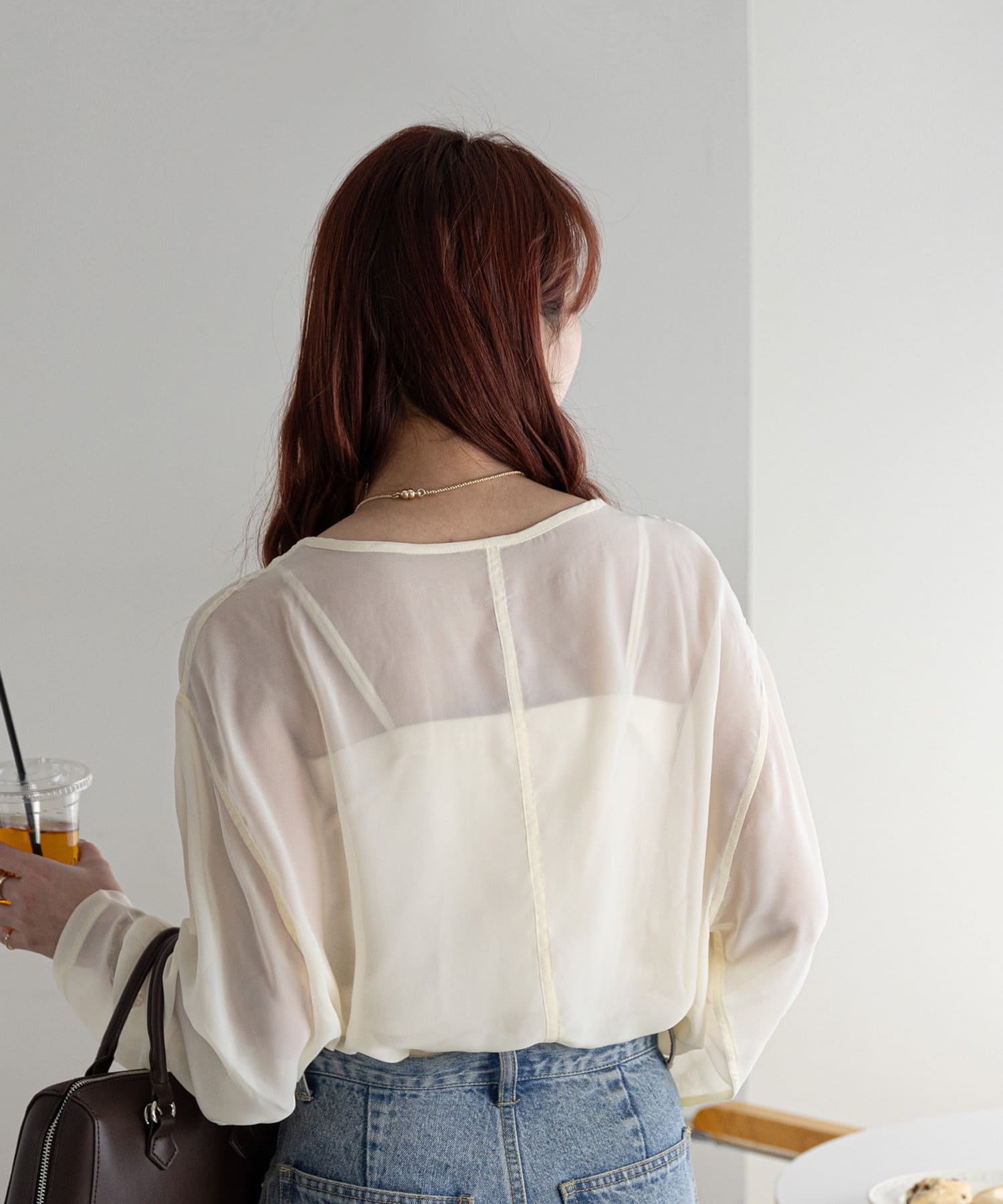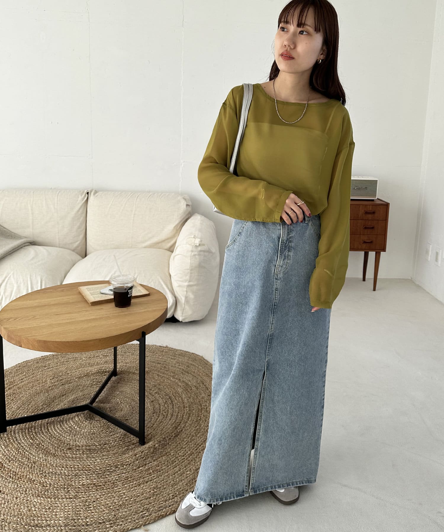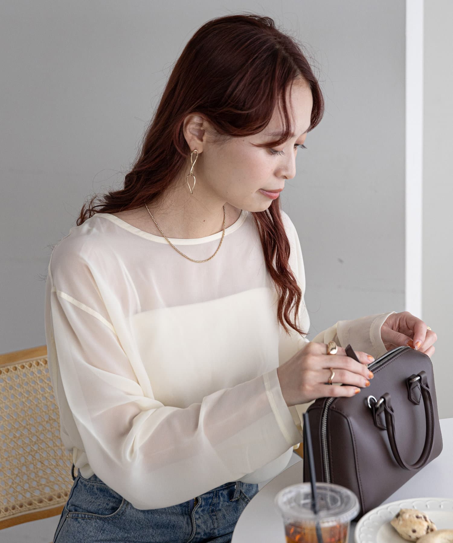 長袖でシアーのデザインが涼し気な雰囲気なので、ロングシーズン着て頂けます。