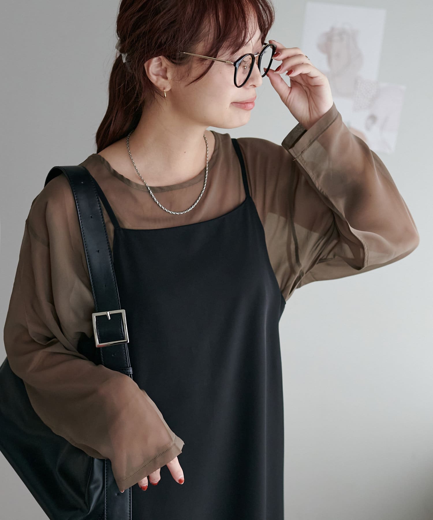 キャミワンピースやサロペットのインナーでアクセントをプラス〇