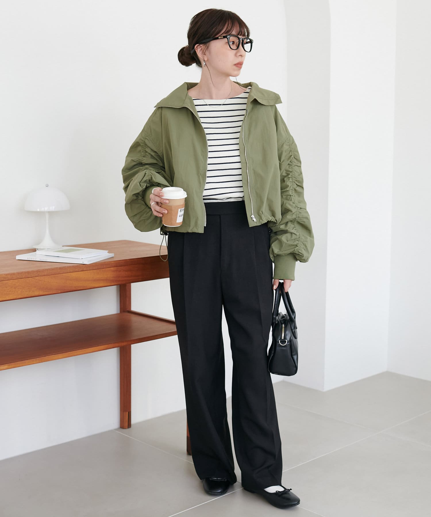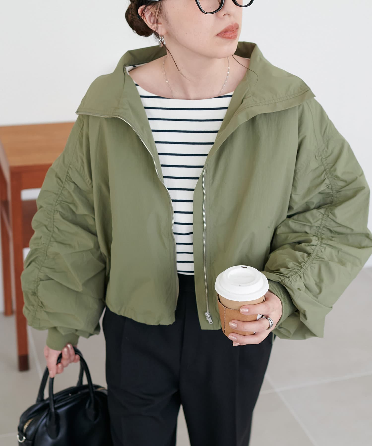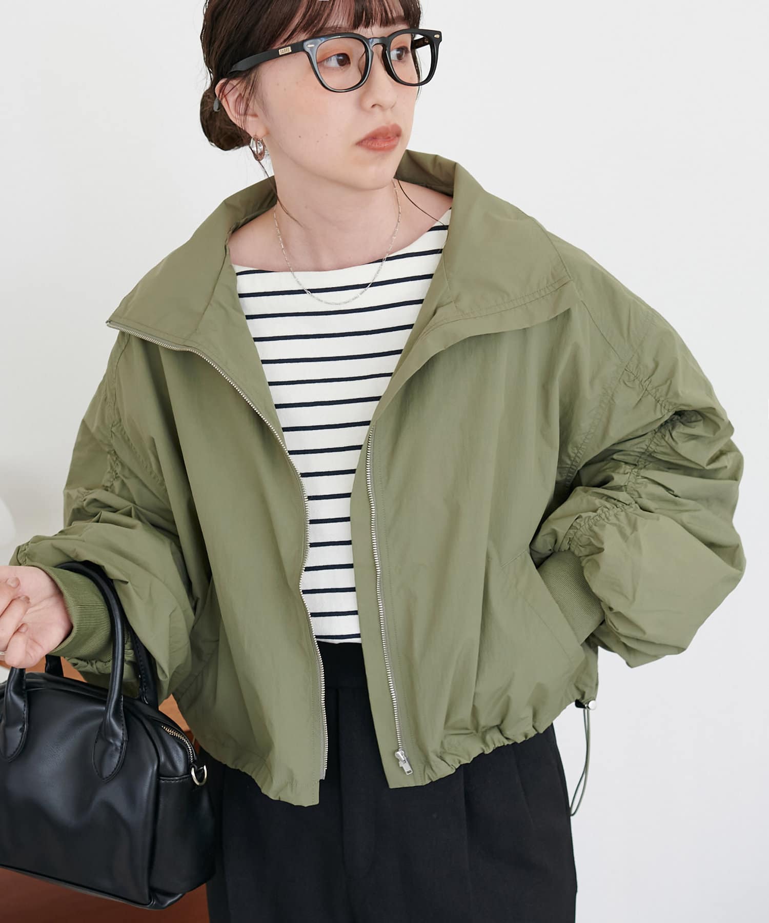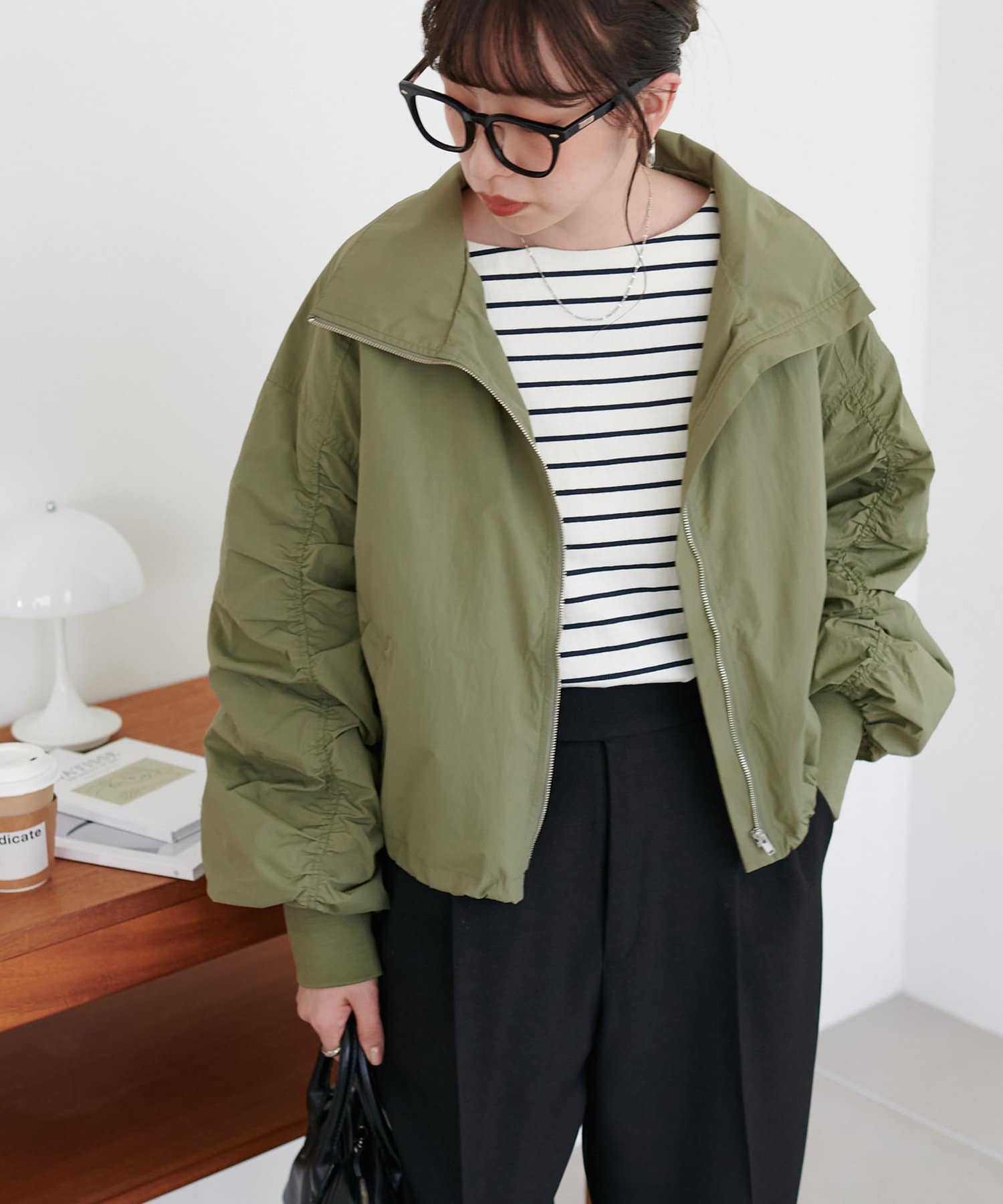 ショート丈や袖のギャザーデザインでカジュアル過ぎずに着て頂けるアイテムです!