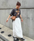 シンプルなトップスを合わせるだけでコーディネートが完成します。インして着こなすと、ウエストの位置が強調されて脚長効果もアップ。すっきり見えするIラインシルエットなのでオーバーサイズのトップスと合わせるとバランスの良いコーデになりおすすめです☆