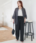 裾にスリットが入っているので、ワイドパンツや広がり感のあるスカートと合わせても形が崩れにくいのもポイント♪