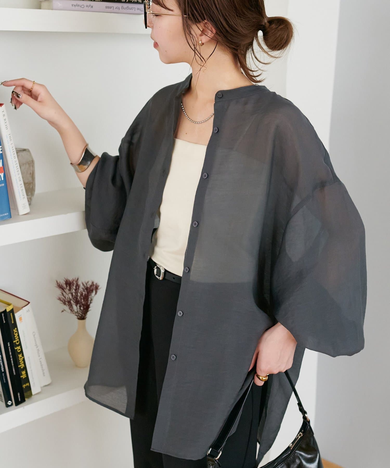 【お気に入り2万突破/新サイズ追加/9色展開】シアーバンドカラーシャツ《WEB限定カラーあり》