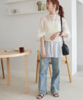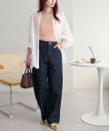 裾にスリットが入っているので、ワイドパンツや広がり感のあるスカートと合わせても形が崩れにくいのもポイント♪
