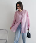 ボタンを閉めてシャツとして着るのも可愛いですが前を開けてキャミソールやキャミワンピ、Tシャツにさらっと羽織ると抜け感がでるのでおすすめです◎