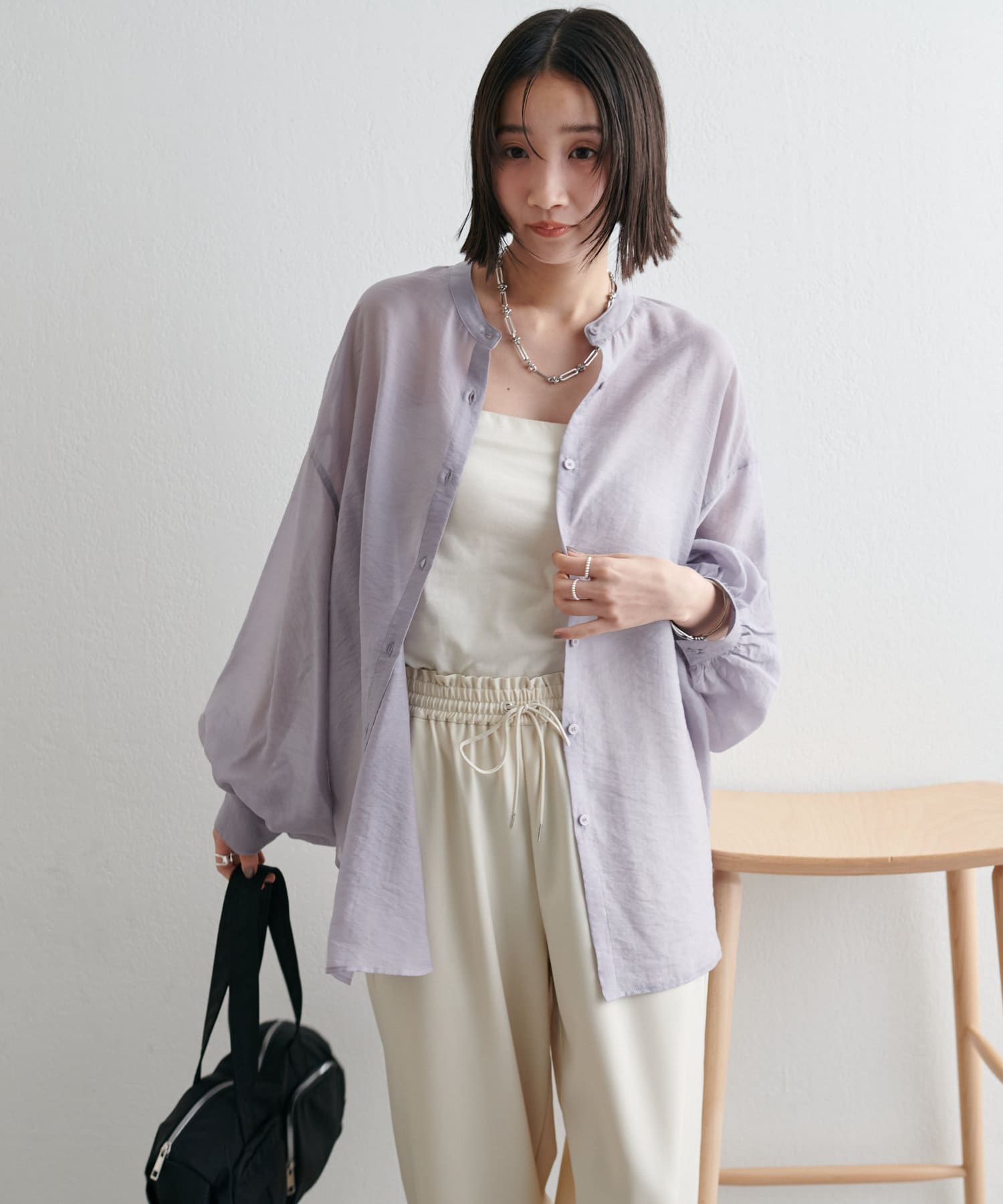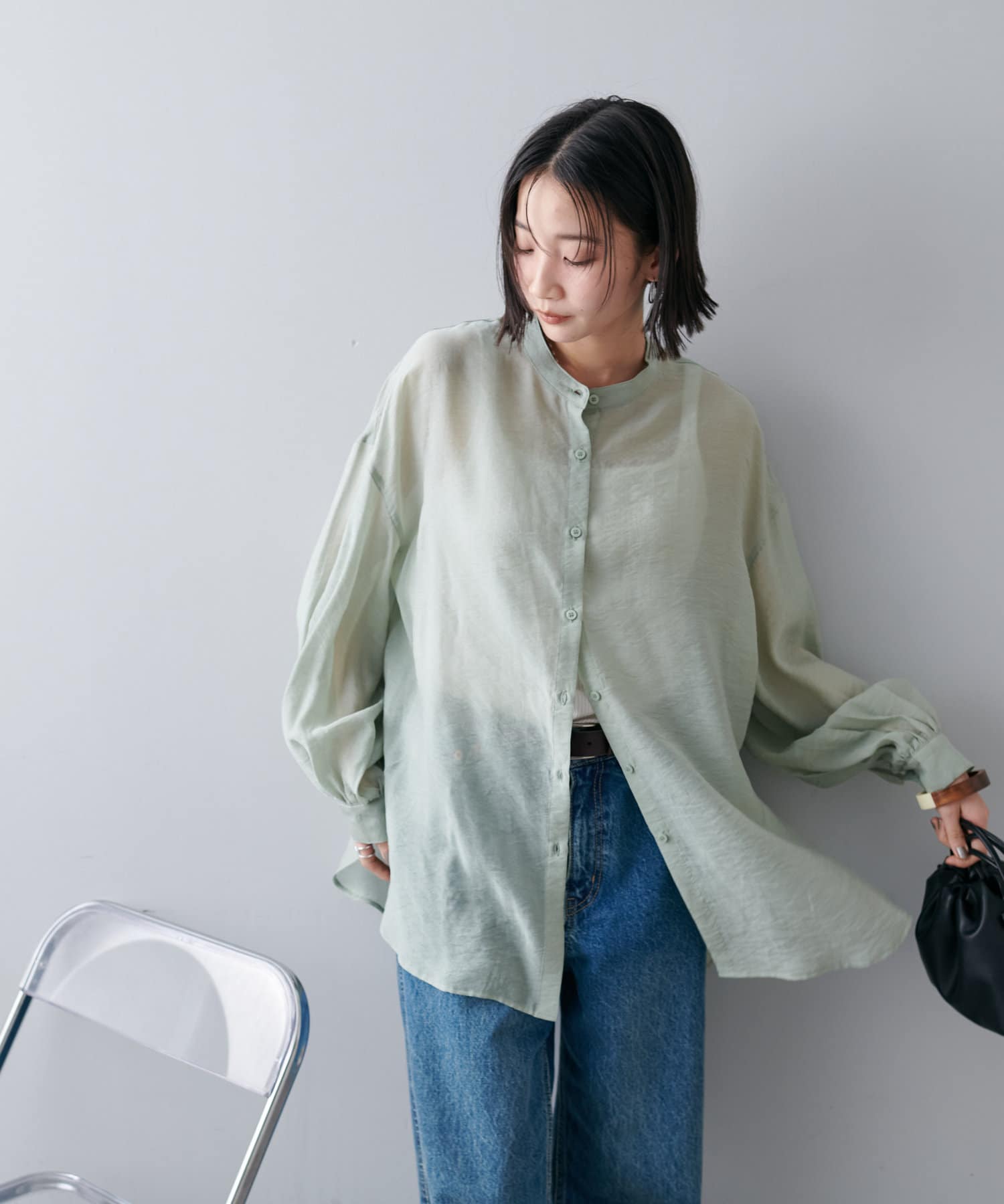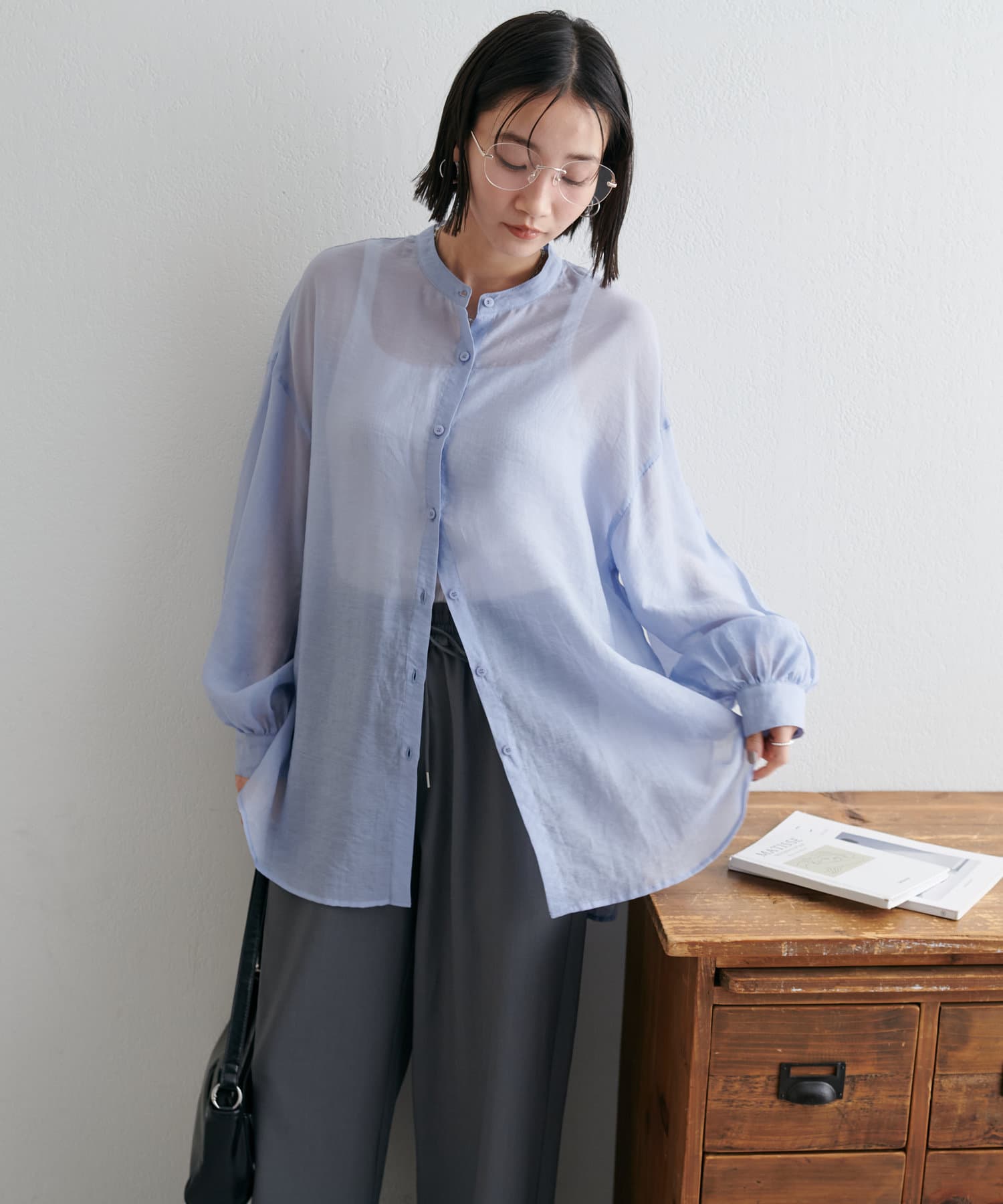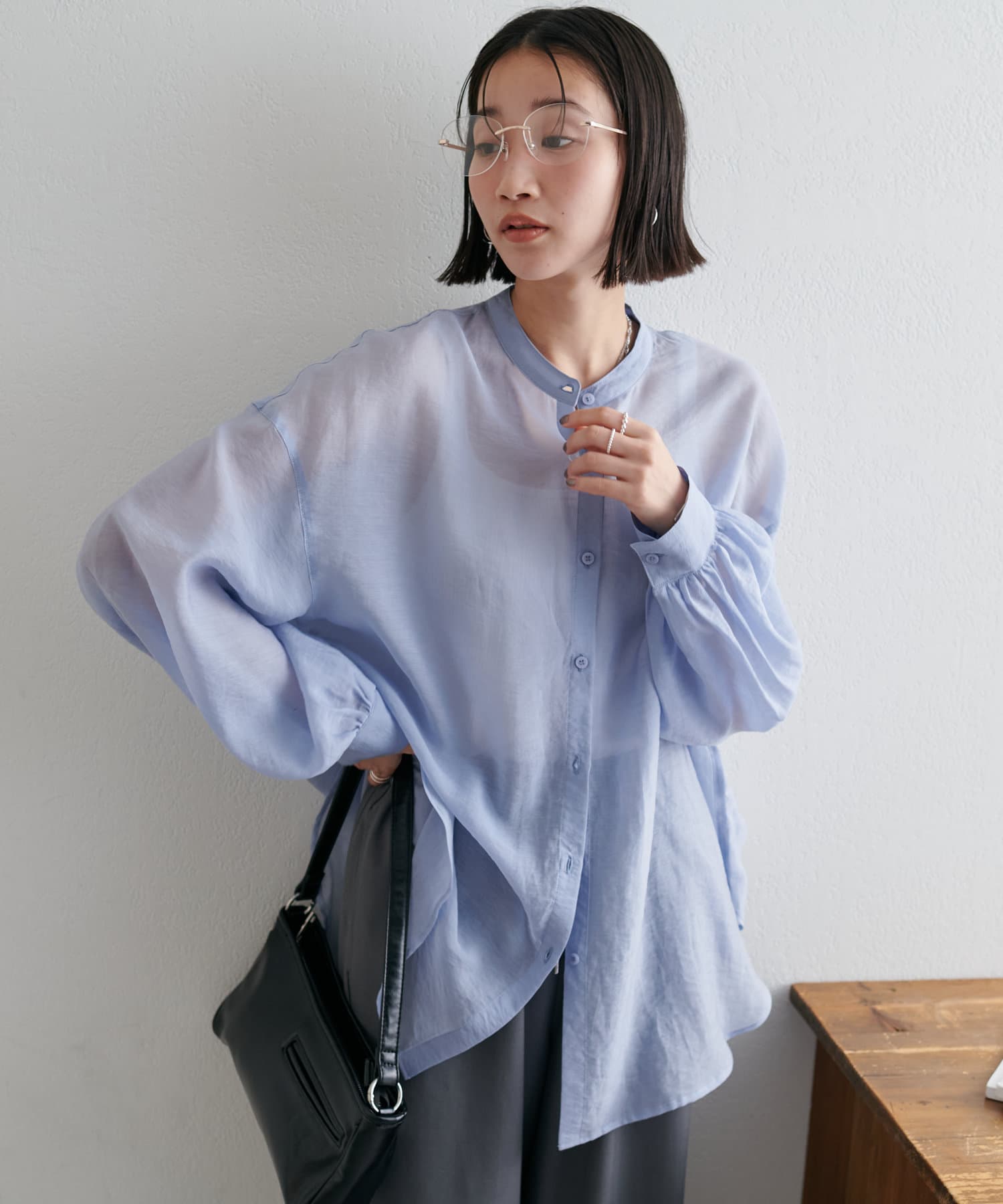 【お気に入り数2万突破/9色展開】シアーバンドカラーシャツ《WEB限定カラーあり》