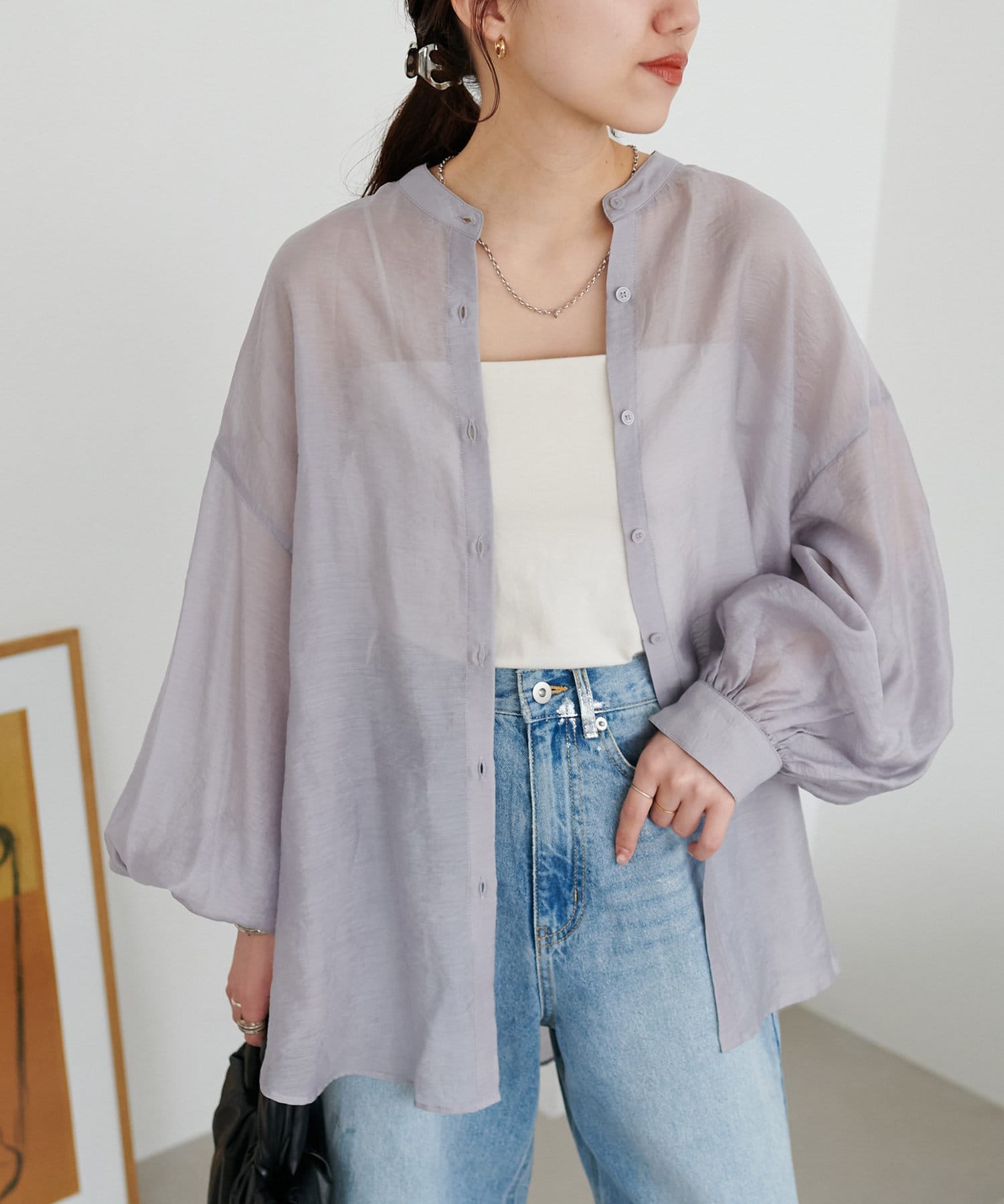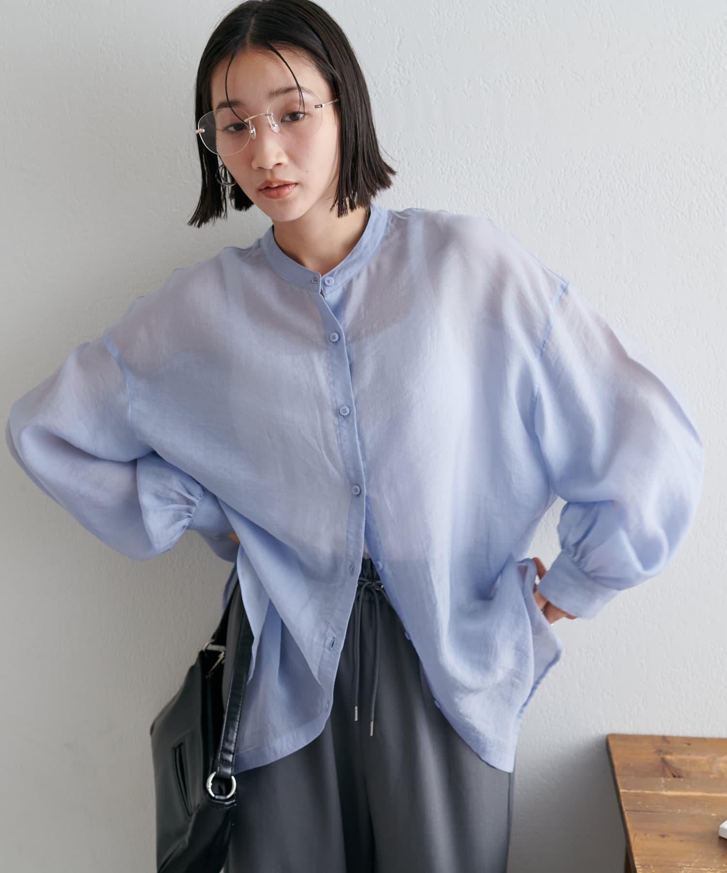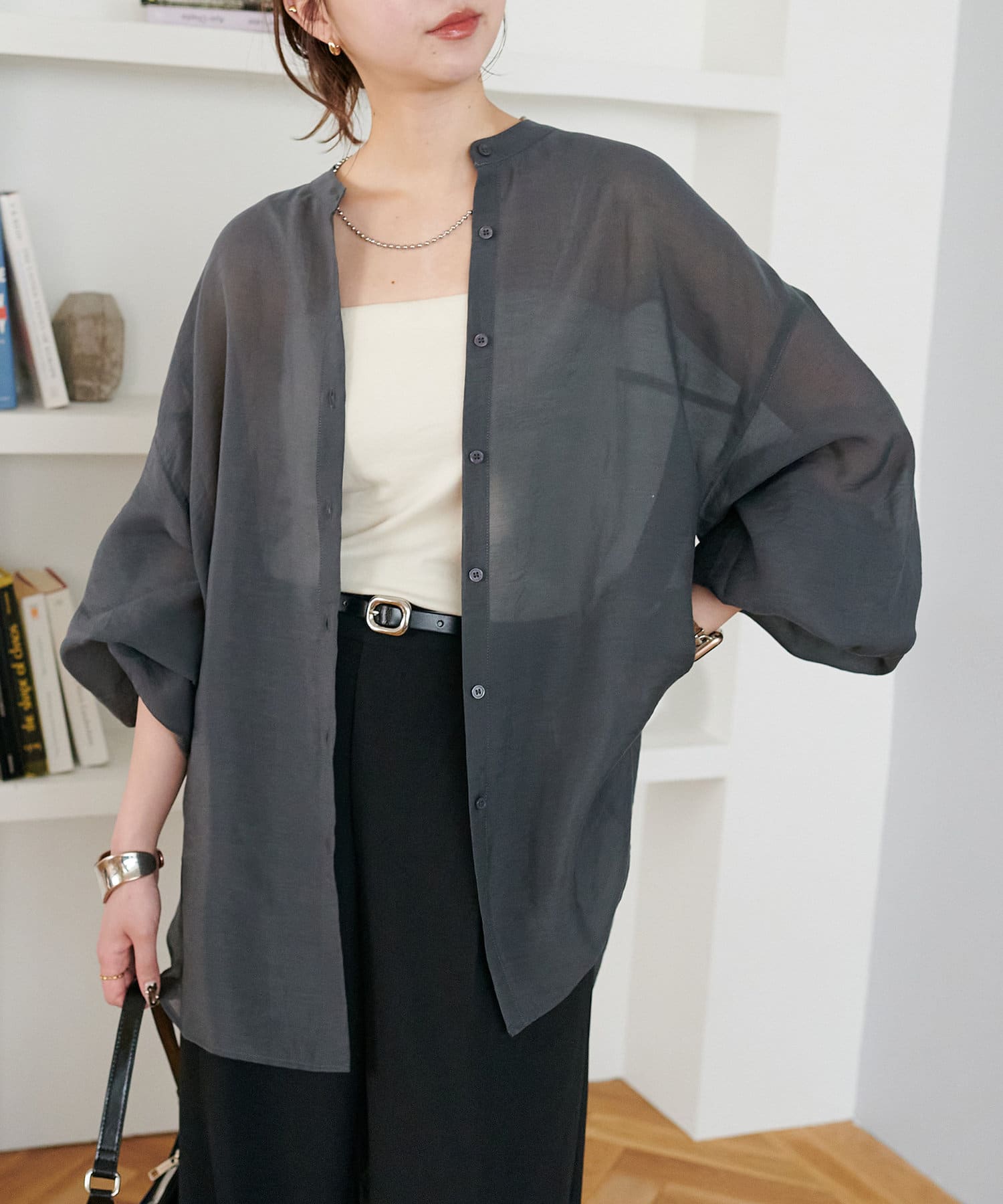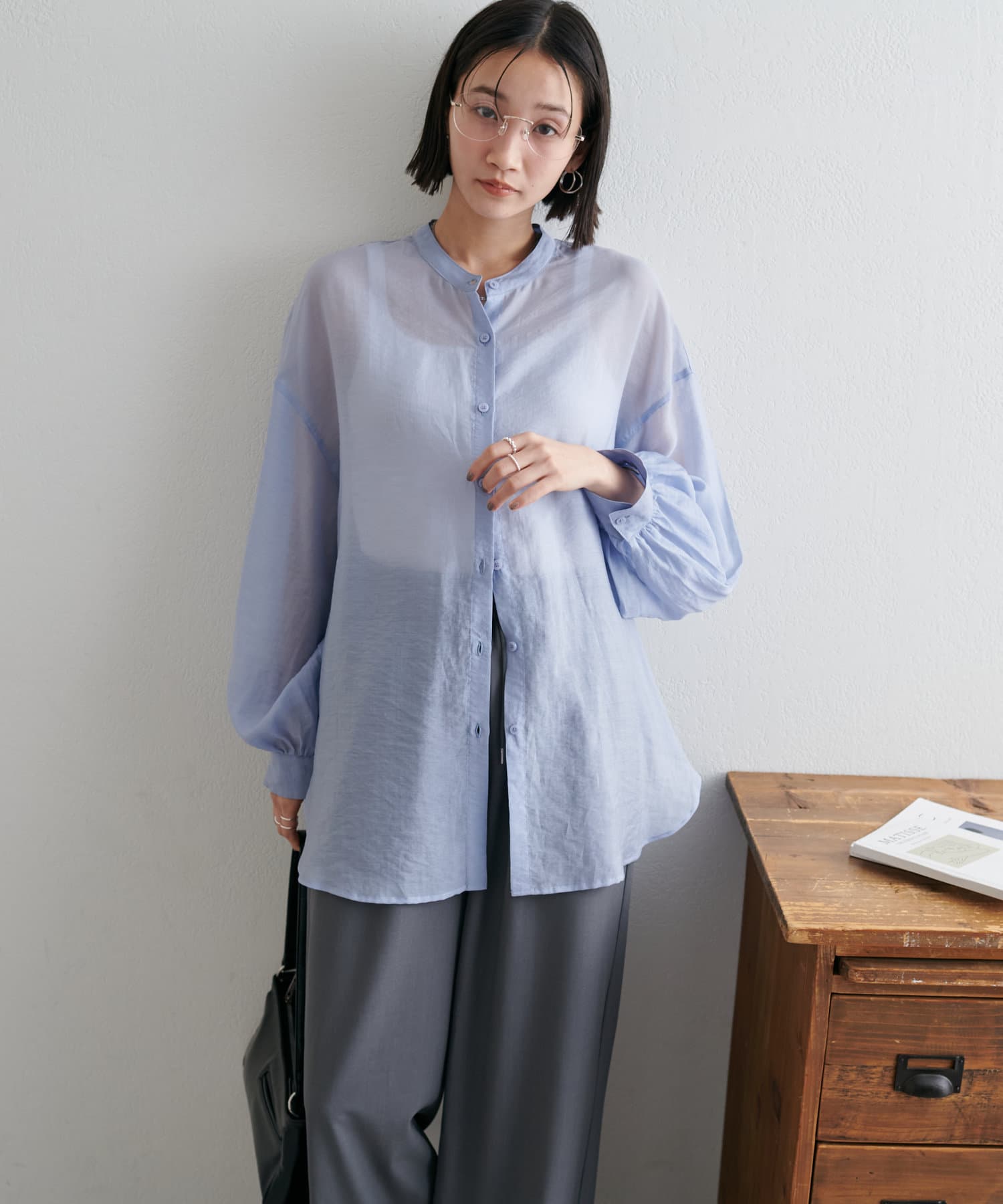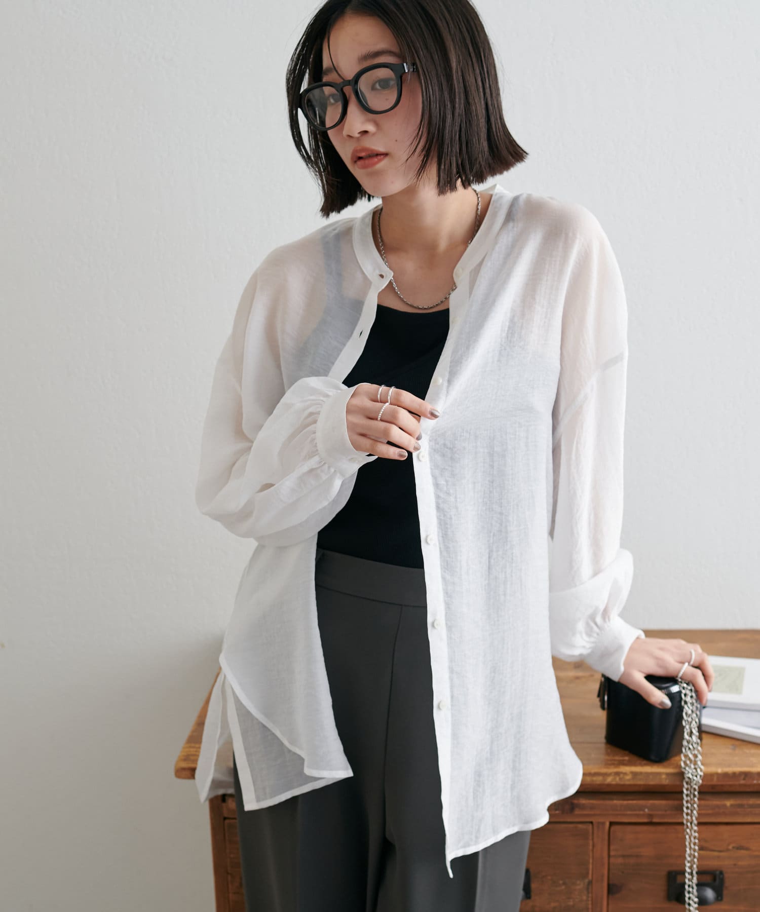 【お気に入り数2万突破/9色展開】シアーバンドカラーシャツ《WEB限定カラーあり》