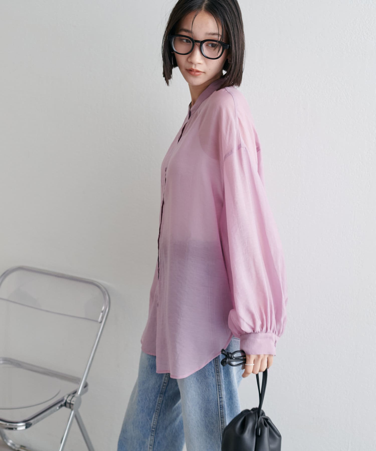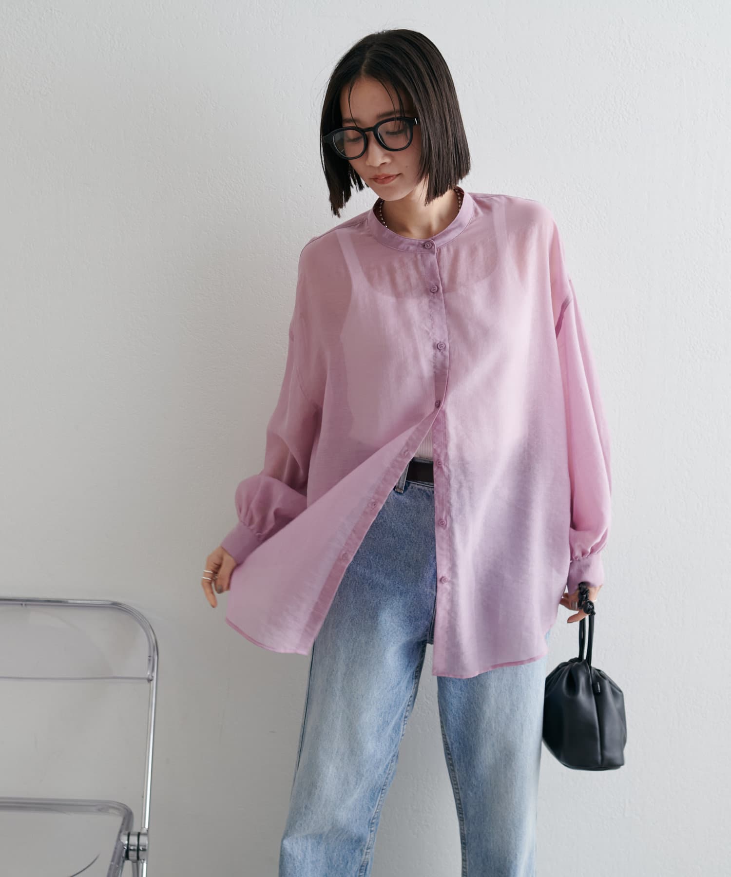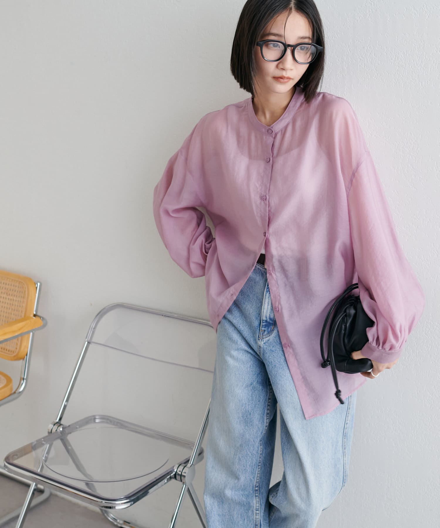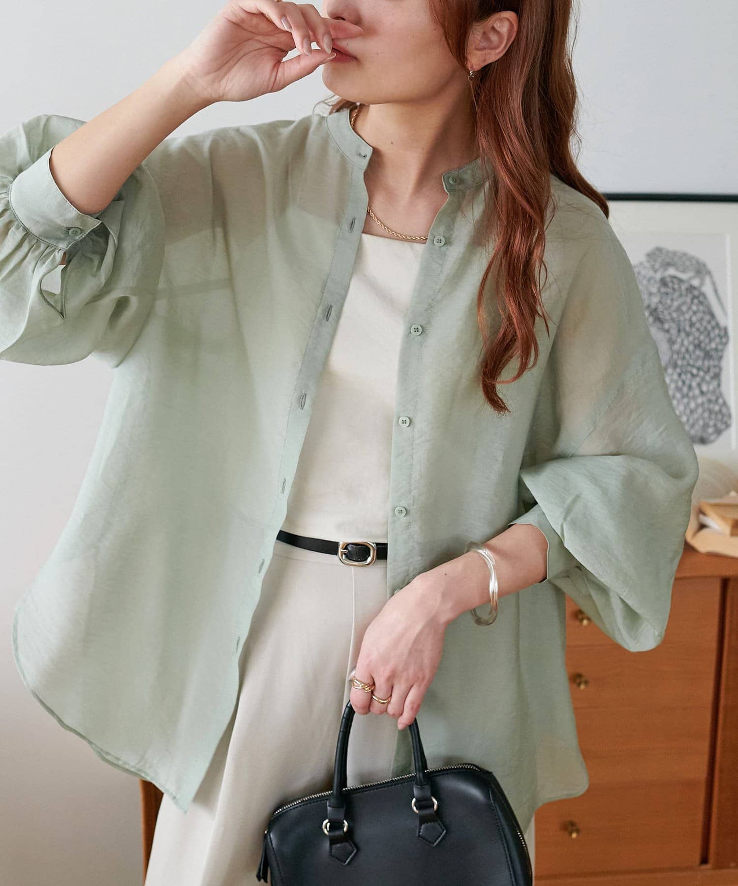 【お気に入り数2万突破/9色展開】シアーバンドカラーシャツ《WEB限定カラーあり》