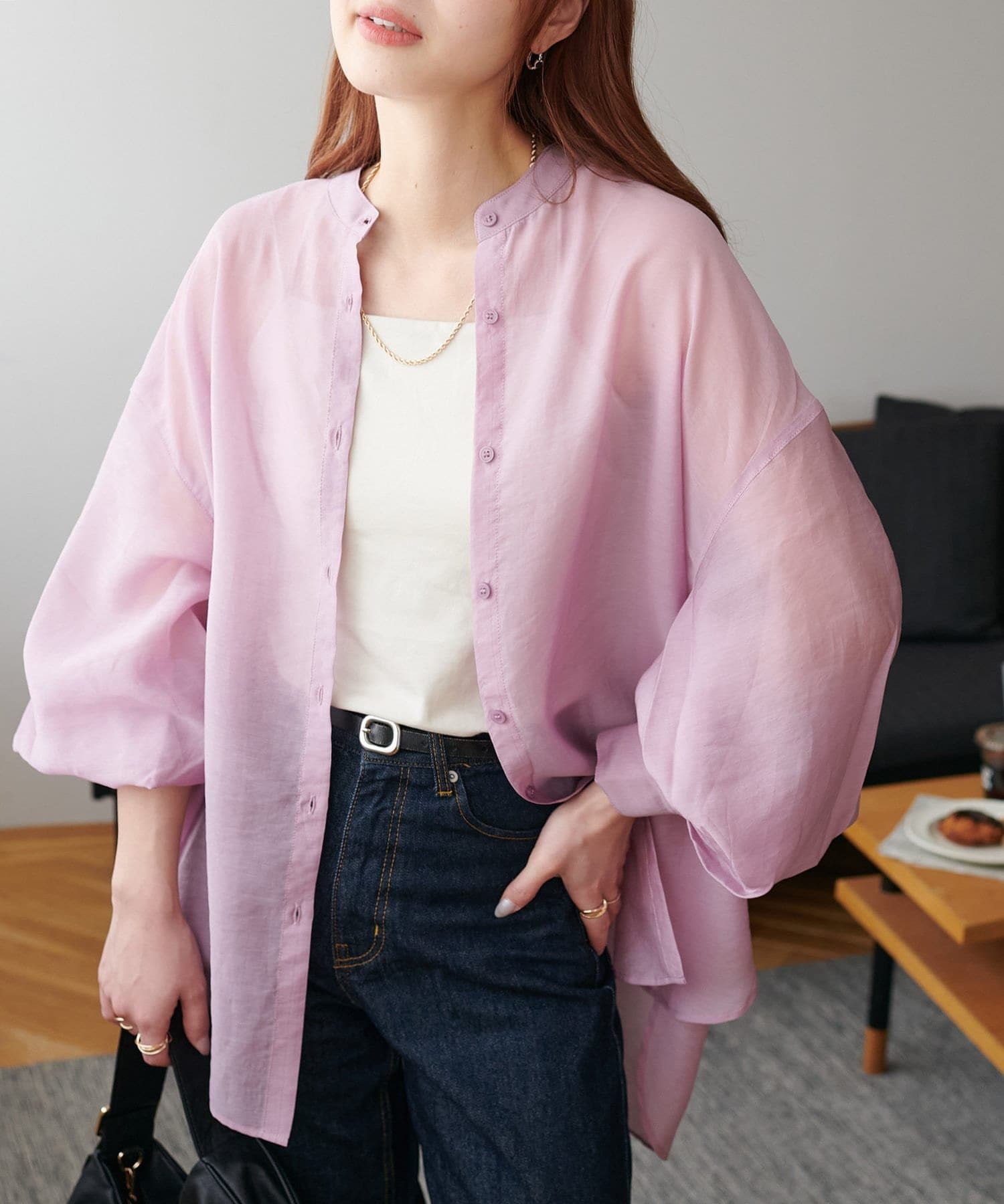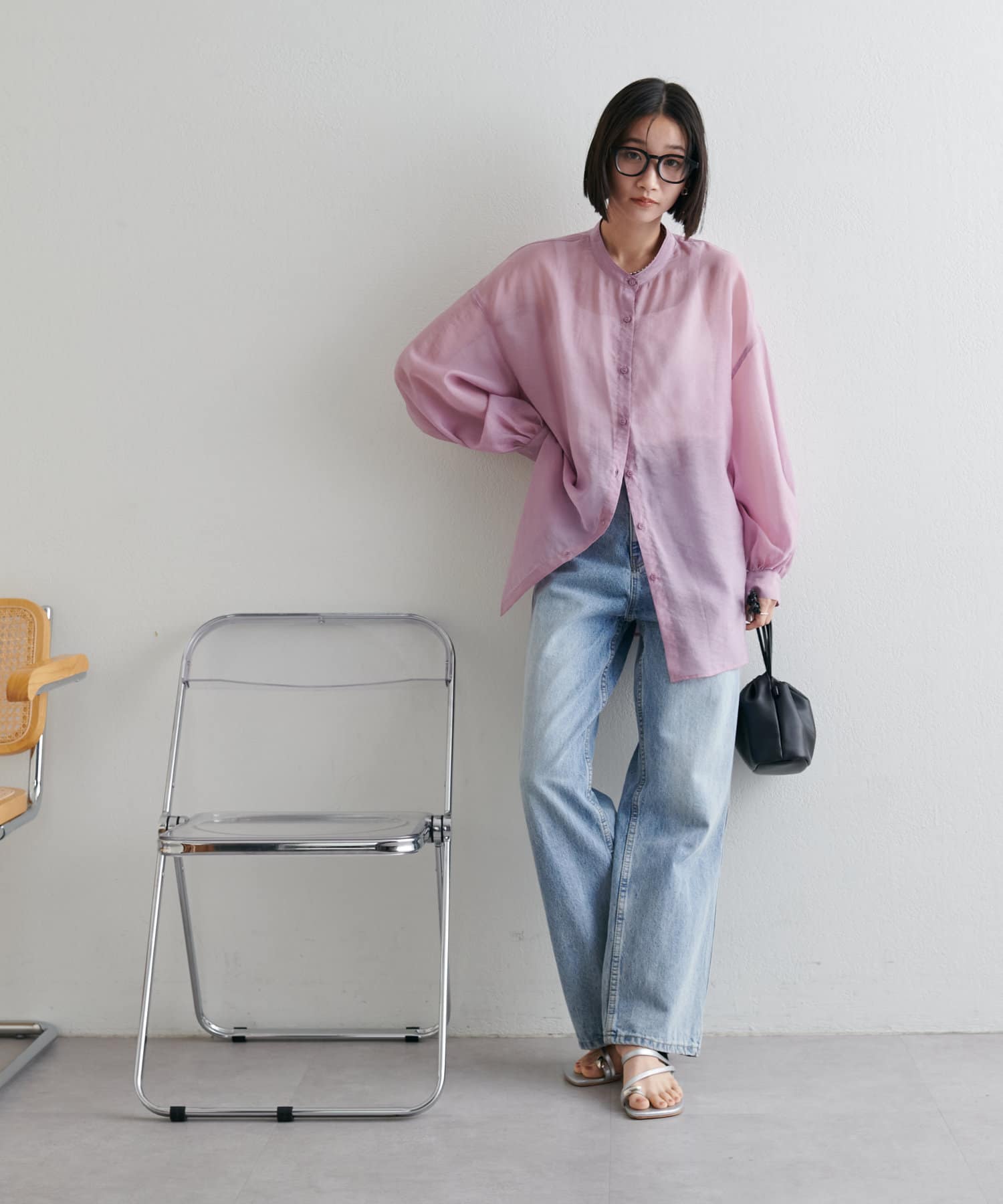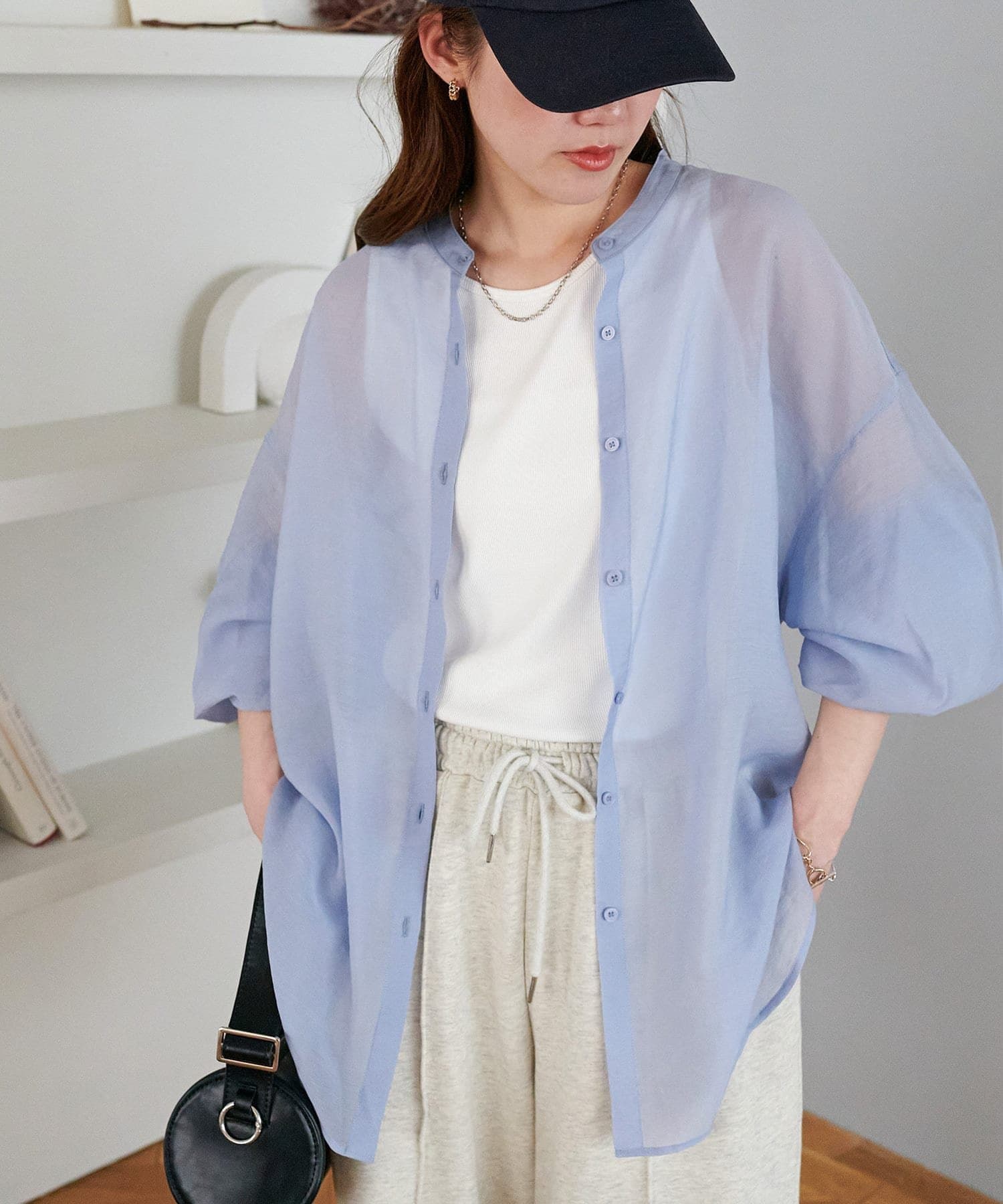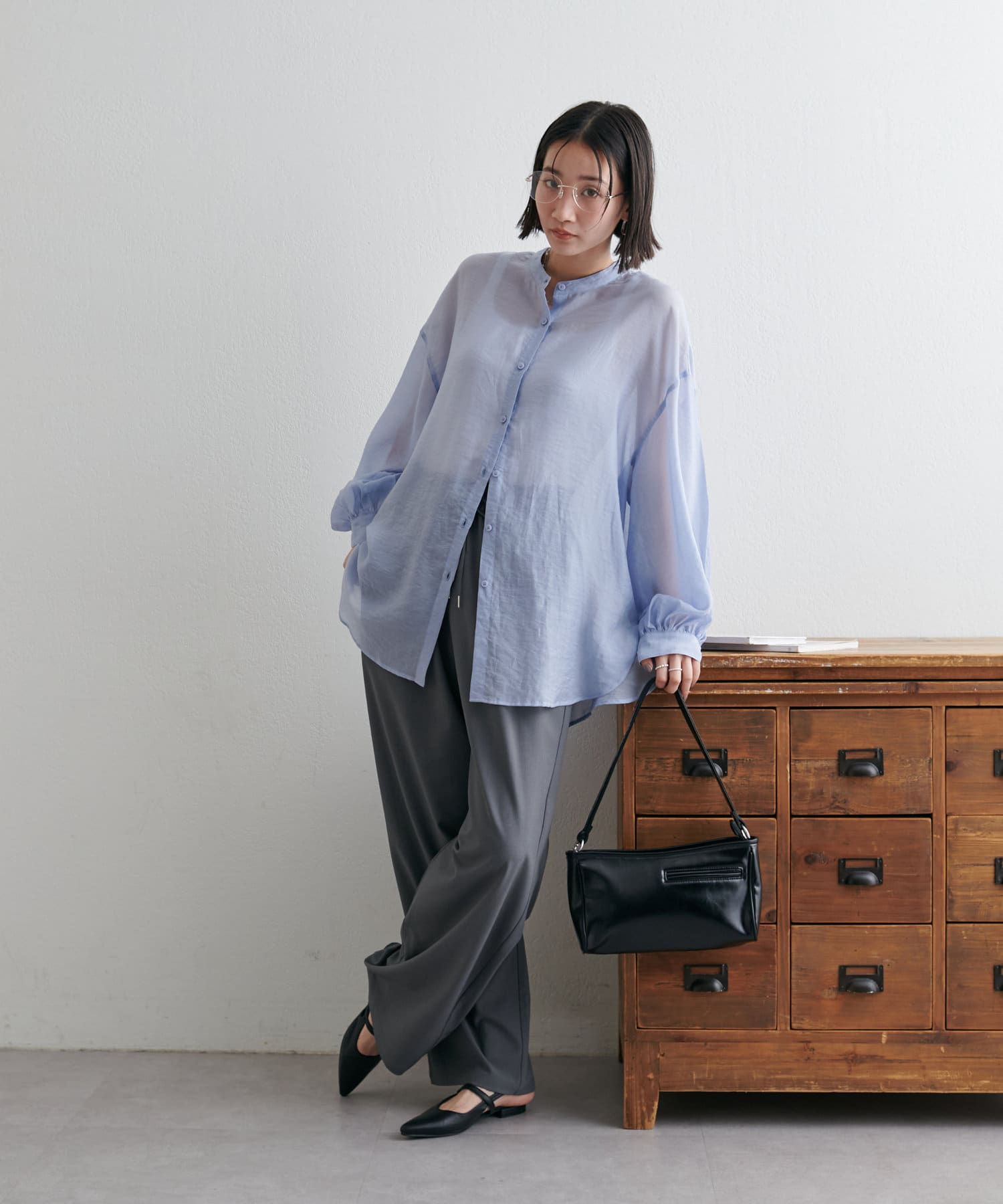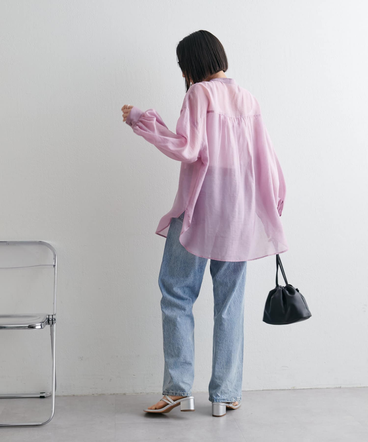 【お気に入り数2万突破/9色展開】シアーバンドカラーシャツ《WEB限定カラーあり》