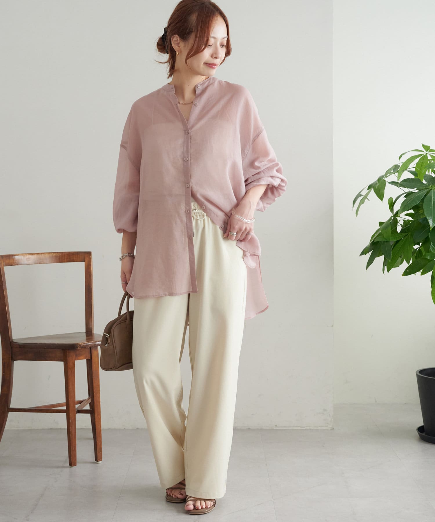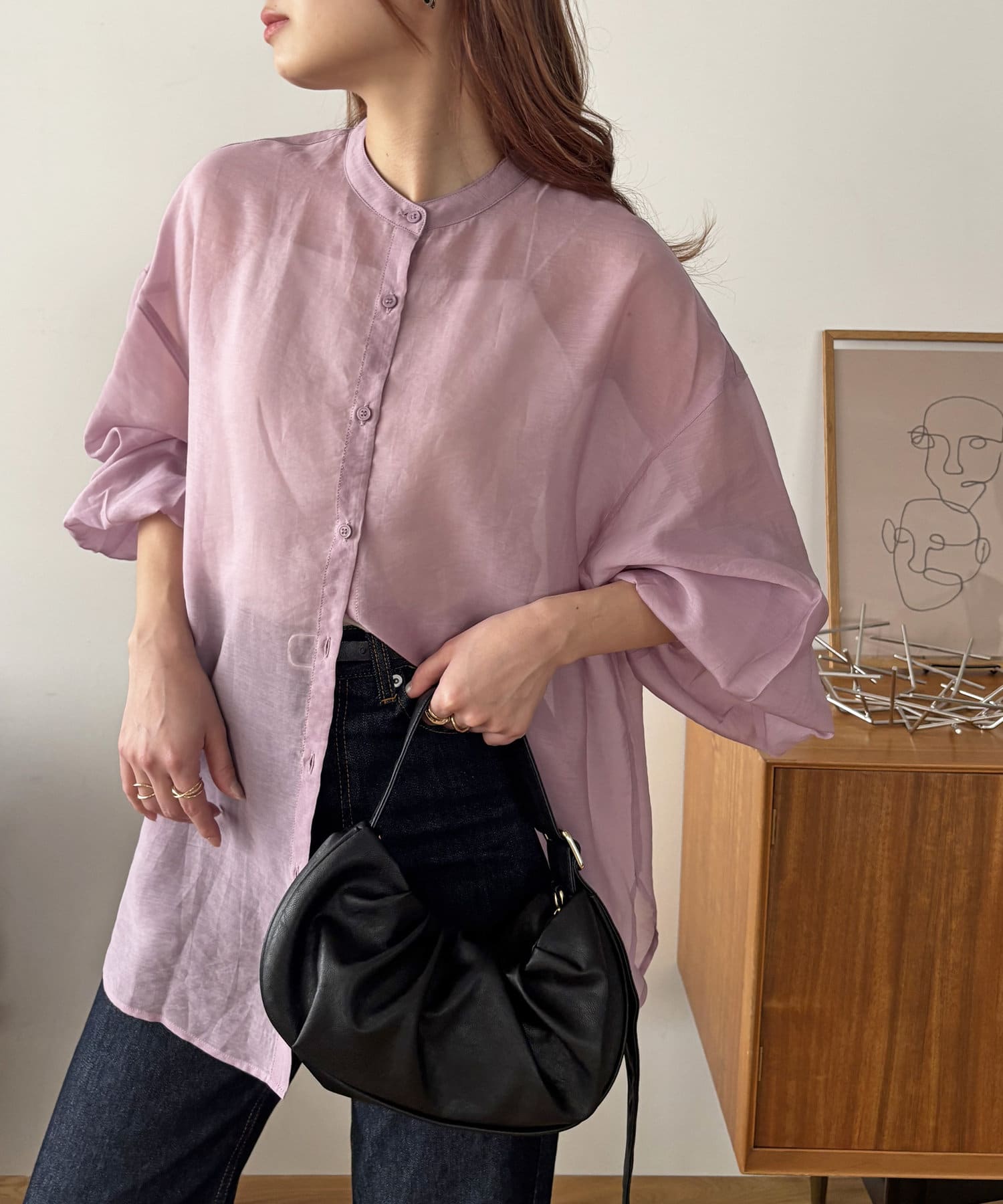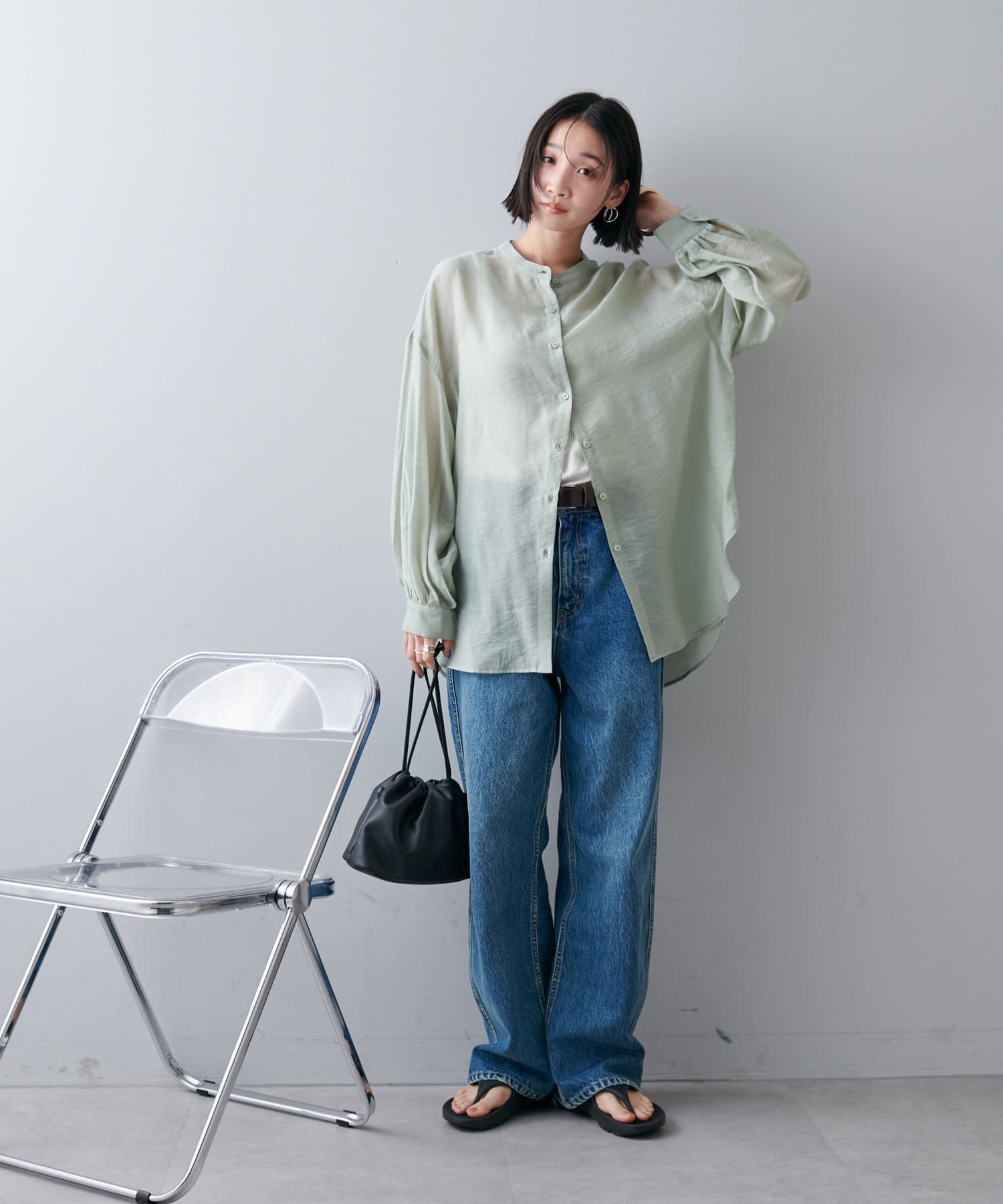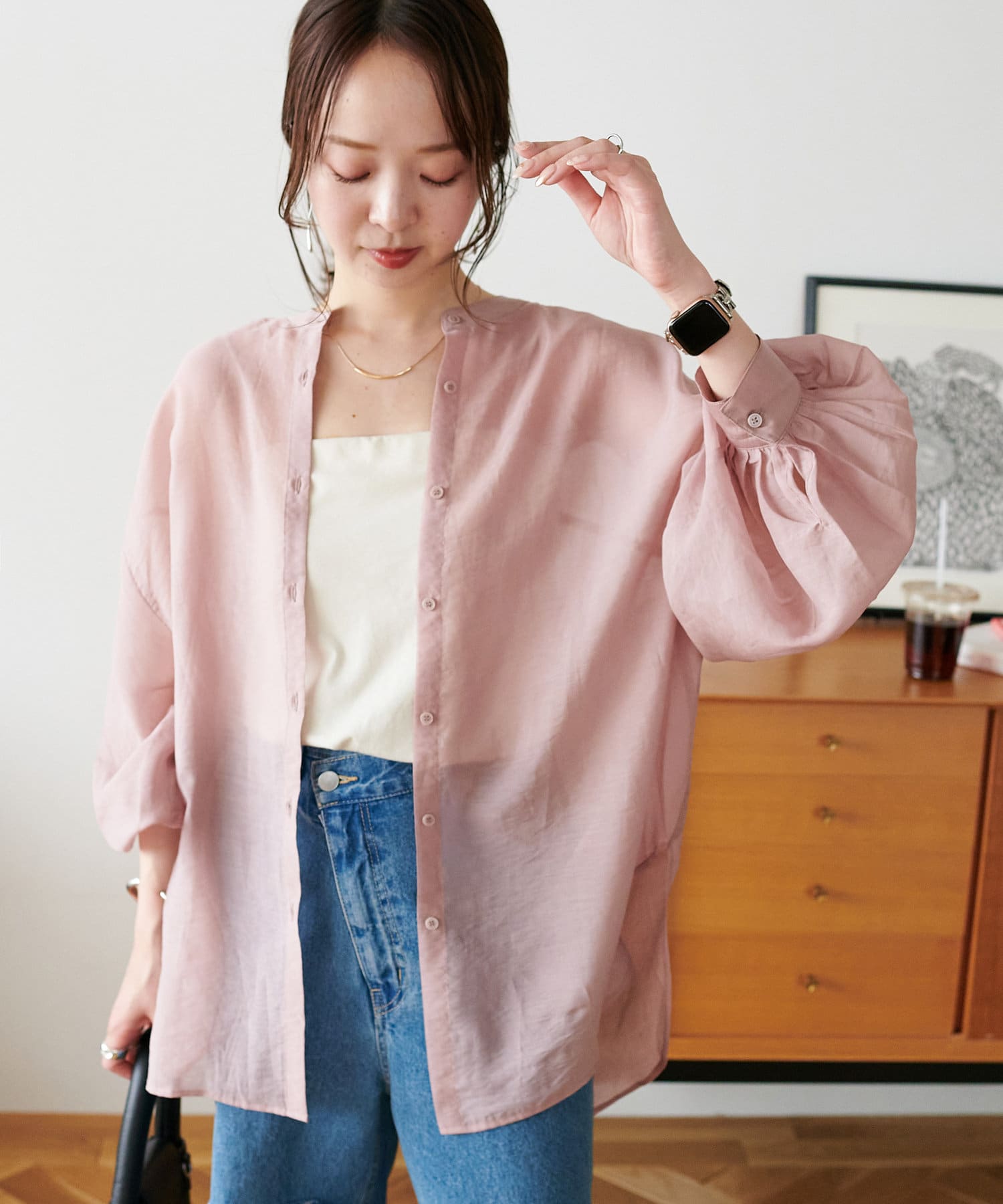 【お気に入り数2万突破/9色展開】シアーバンドカラーシャツ《WEB限定カラーあり》