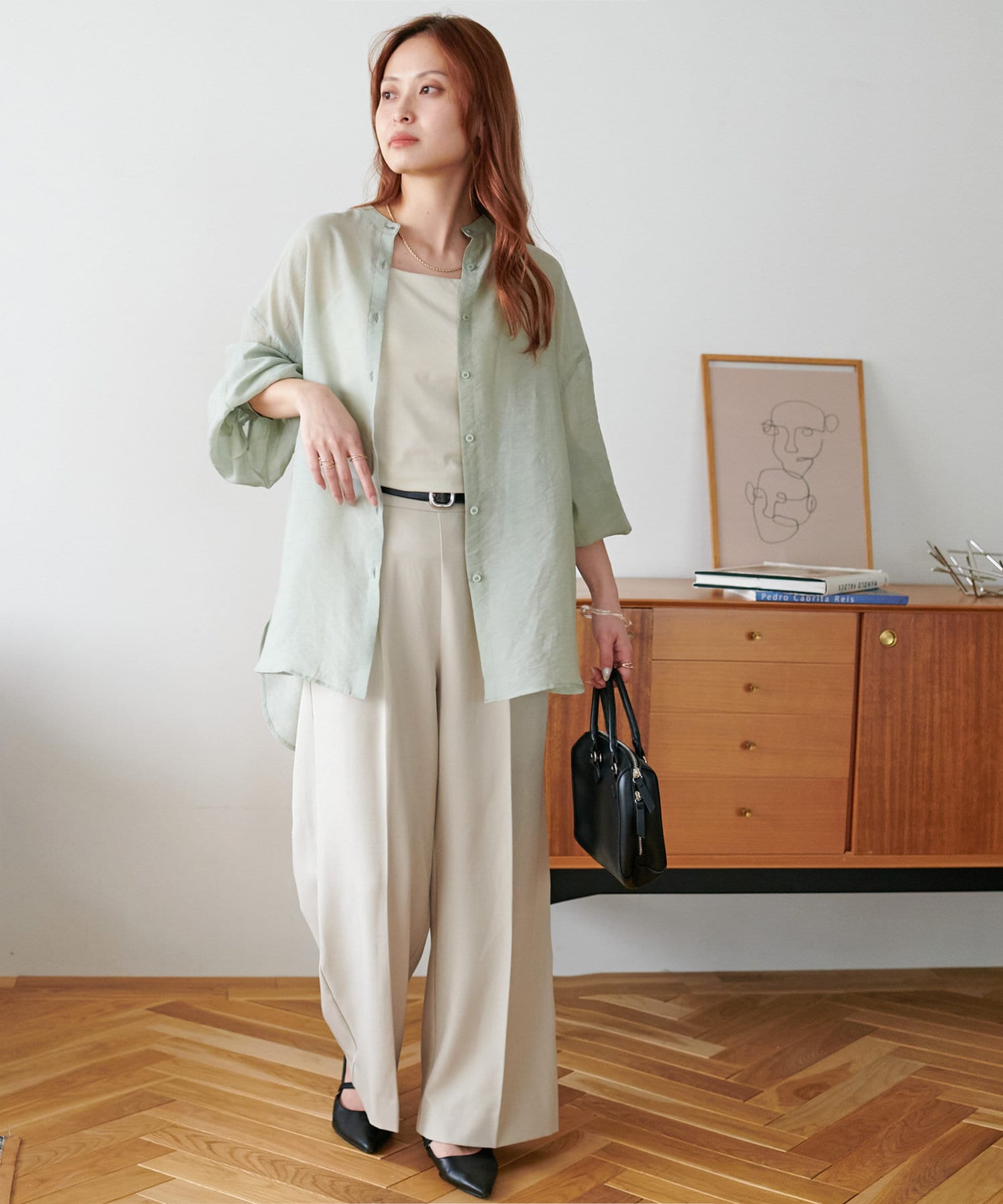 普段使いからお出掛けまで幅広いシーンで気軽に取り入れやすい、しわになりにくい素材もポイント〇