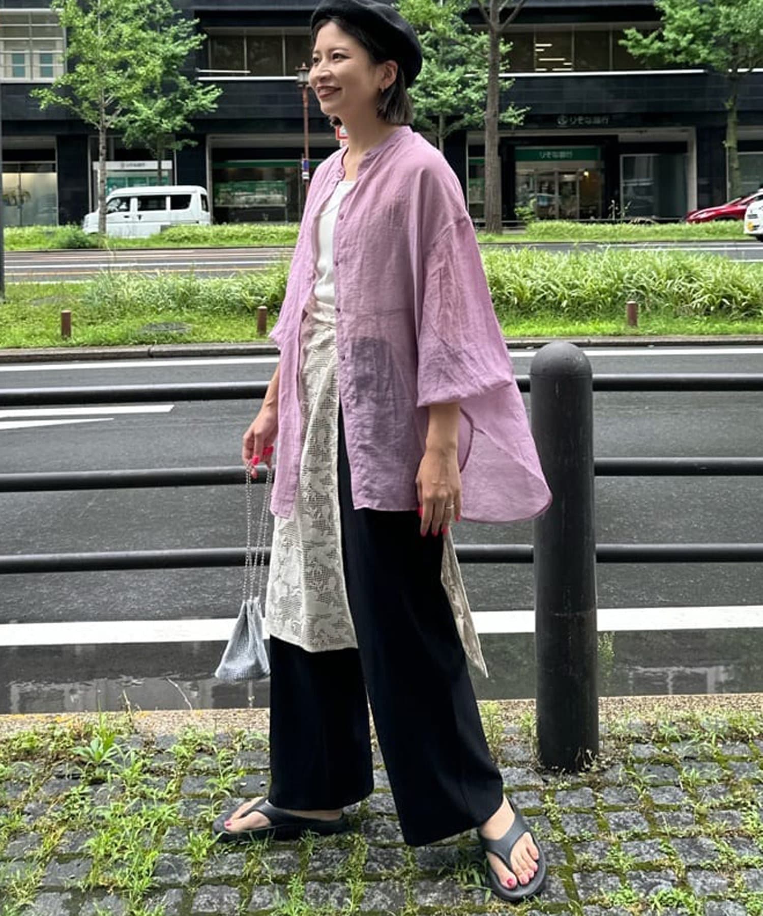 155cmスタッフ:薄手のシャツなので、夏の羽織にぴったり◎